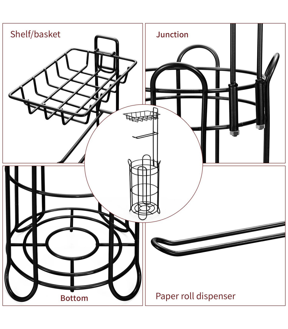 SPACE SAVING: Holds up to 4 toilet rolls (1 in use and 3 in storage) EASY INSTALLATION: No drilling, no mess, no glue, no damage to walls. ELEGANT DESIGN: This free standing toilet paper holder doesn’t require any mounting and can serve as both decoration and additional storage in your bathroom DIMENSIONS: The toilet roll stand measures 18.5 cm x 18.5 cm x 61 cm making it an ideal fit for all bathroom, small or big. QUALITY FINISH: Stylish Chrome finish works well with any bathroom design. Available in 3 colours