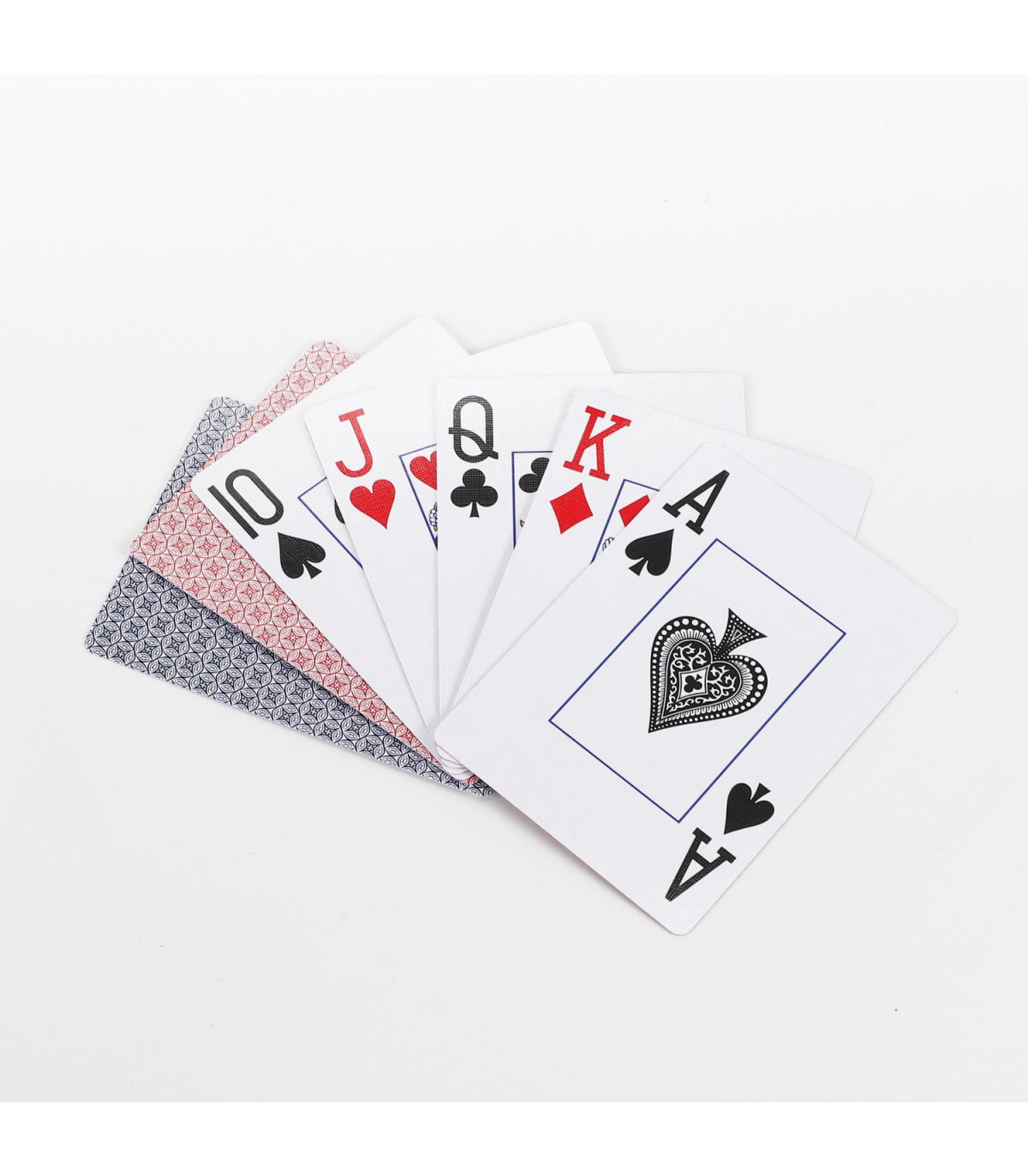 DESIGN: All cards have a check design backing with standard card faces and come in red and blue decks. QUALITY: Essential for rainy afternoons, long journeys and family holidays these high-quality Plastic-coated decks of cards for a smooth feel and extra durability, made from paper stock which makes them easy to shuffle and long lasting. PLAY: Perfect for all of your favourite card games - from snap to solitaire and trumps to rummy - the hours will fly by. DIMENSIONS: Poker size with standard index, cards measure 6.3 x 8.8 cm. MULTI- PACK: Each pack contains 2 Decks (1 x Red and 1 x Blue) . 2 Decks - 1 x Red and 1 x Blue 4 Decks - 2 x Red and 2 x Blue 6 Decks - 3 x Red and 3 x Blue 12 Decks - 6 x Red and 6 x Blue