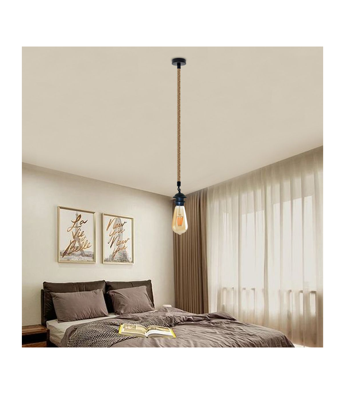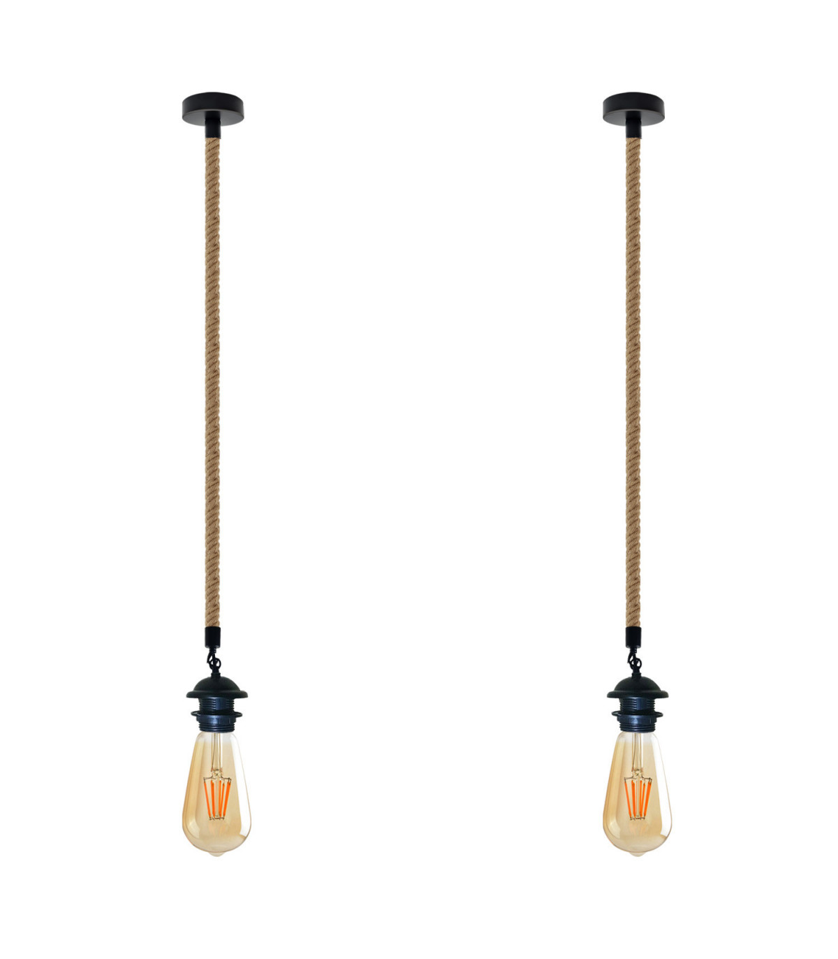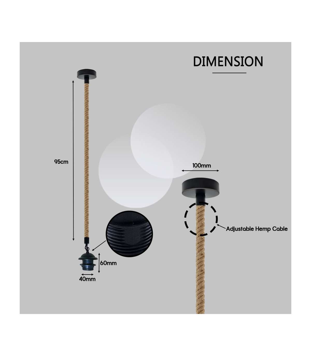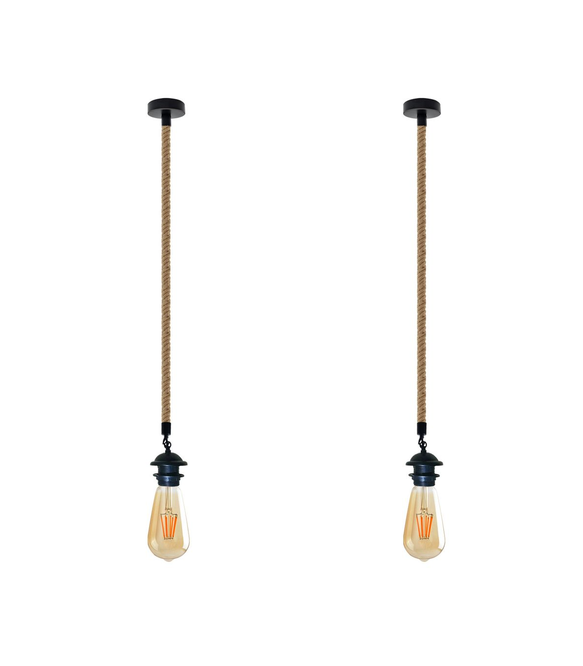 Features: The pendant light kit is designed with contemporary style. Ideally, the filament retro bulbs will be a good choice to bring out the character of this fitting. All the parts comply with the British standard. Perfect for adding lampshades. It can be dimmable when used with a matching dimmer switch and dimmable bulb. Item Specifications / Technical Details: Item Type: Pendant light holder Style: Vintage/Retro Voltage: AC110V-240V Material: Metal/ Hemp Bulb Requirements: Requires E27 max 60W Bulb Type: Compatible with all kinds of E27 bulbs Installation Area: Indoor Power Source: Hardwired Cable length: 95cm Adjustable cable Rope Type: Double Heads. Dimmable: Yes (required a dimmable bulb and dimmer switch) Energy consumption: A+ with LED bulb Package included: 2 x Pendant holder with 95cm hemp cable. 2 x Ceiling rose and all the necessary fittings.