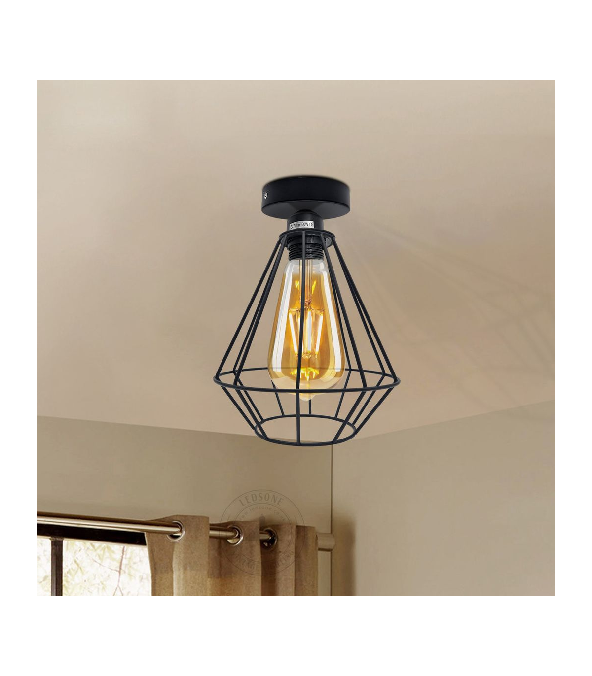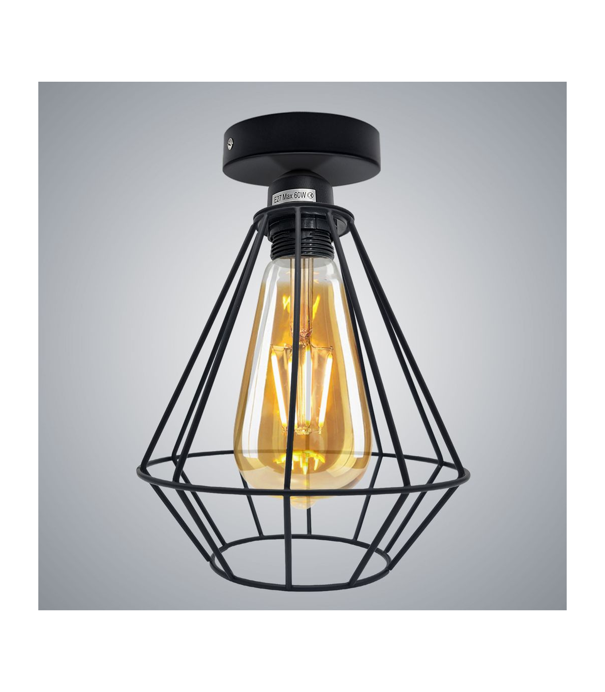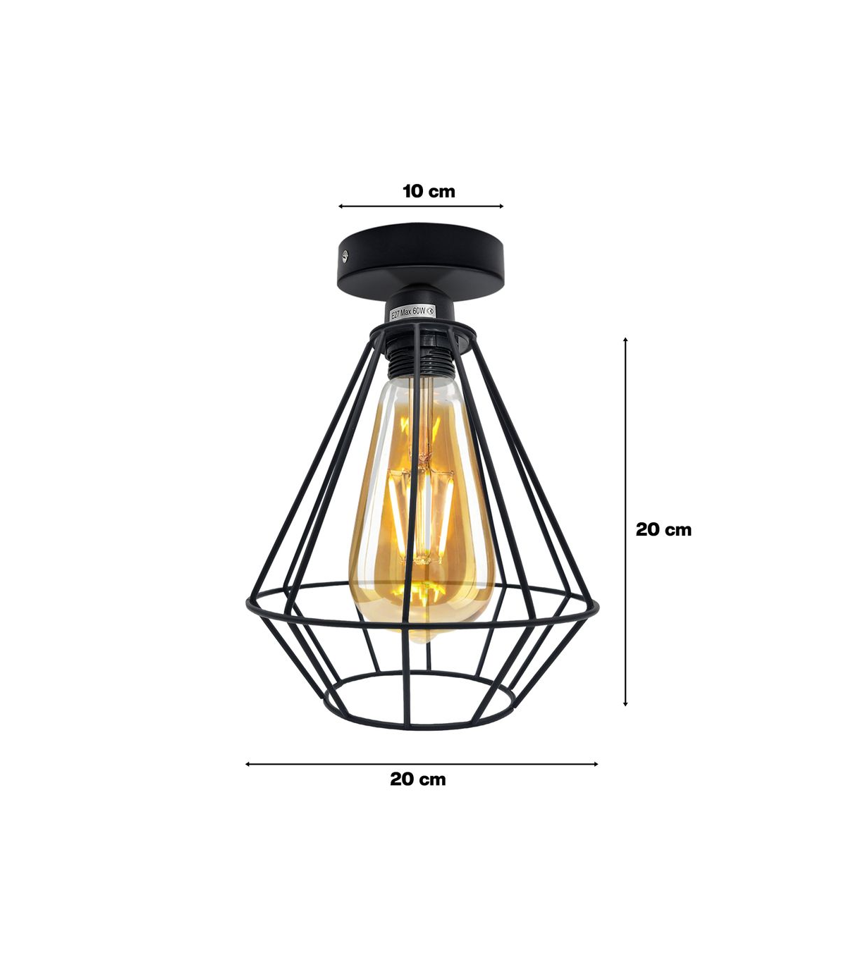 "Features: This wire cage ceiling light features a vintage industrial design that brings a nostalgic charm to any space. The geometric-shaped wire cage adds an artistic touch, combining retro aesthetics with modern functionality for a unique lighting fixture. Equipped with a metal round ceiling rose, this ceiling light ensures stability and durability. The round shape adds a sleek and polished look, complementing the overall design. It serves as a secure base for attaching the light fixture to the ceiling, providing a reliable installation. Material: Metal Shape: geometric Style: Vintage/Retro Power source: AC110V-240V Bulb Requirements: max. 60W Installation Area: Indoor Installation Type: Ceiling Mount Package Includes: 1 x Metal Ceiling Rose with Accessories 1 X E27 Holder 1 x lamp cage