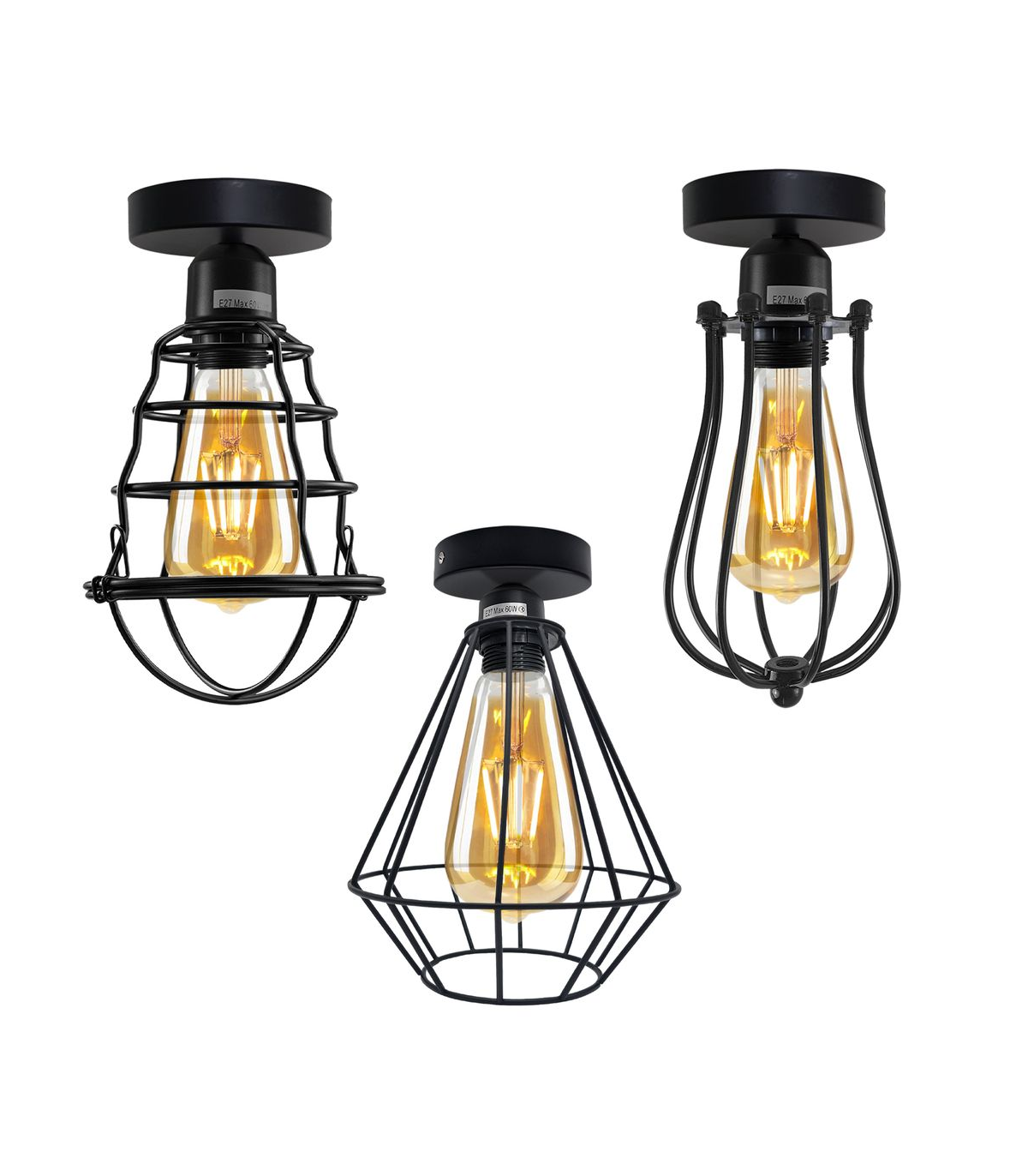 Vintage Wire Cage Ceiling Light Metal Round Ceiling Rose E27 Light Fitting 60W Lighting Bulb Holder