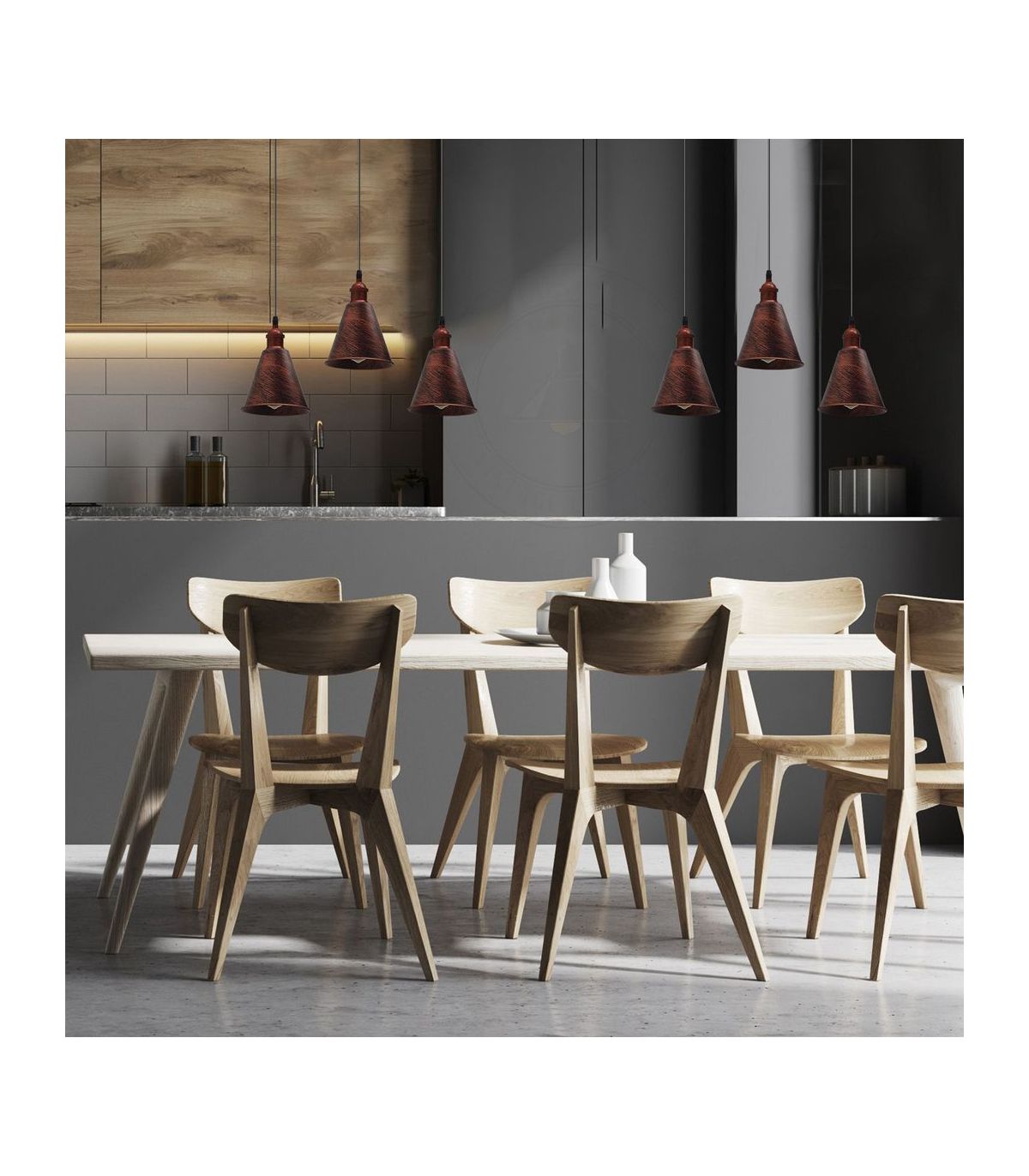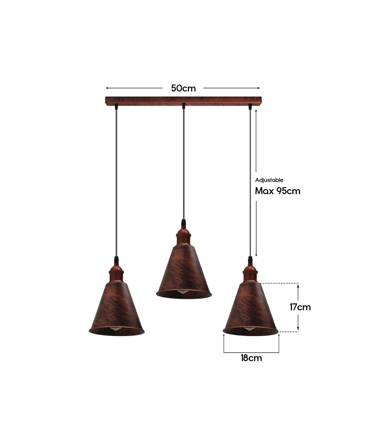 Vintage Rustic Red 3 Head Reactangle Base Pendant Cord E27 Base Metal Brushed Light Fitting Long Cone Shape Lamp Shade