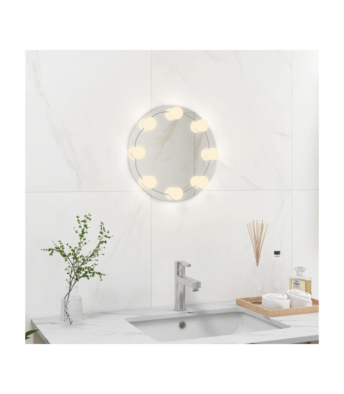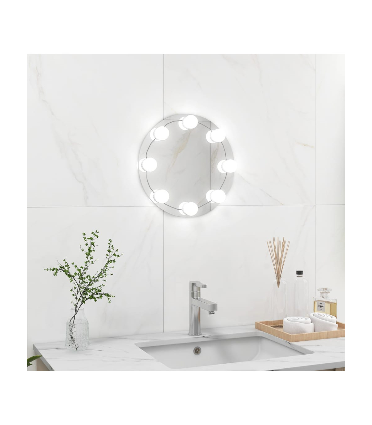 vidaXL Wall Frameless Mirror with LED Lights Round Glass