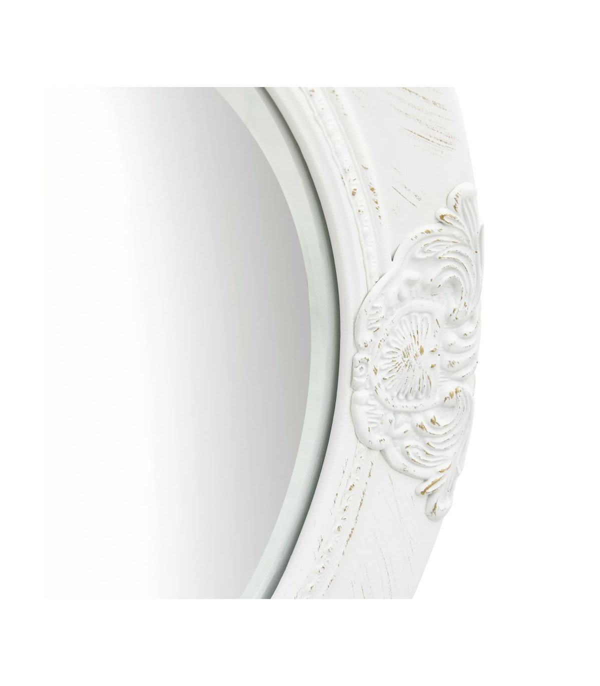 This beautifully designed wall mirror with an ornate frame creates a classic atmosphere in your dressing room. The antique-look mirror features a sturdy wooden frame that is meticulously crafted in a decorative Baroque pattern. Additionally, the bevelled edge gives this mirror a unique look. The mirror is ready to be wall-mounted thanks to the already installed hook on the backboard.
