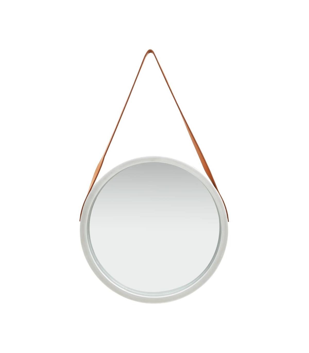 This handy wall mirror featuring a classic design is meant to enhance any room decor. Wall-mounted design: The mirror is designed with a strap for hanging on the wall, which makes it especially suitable for rooms with limited space.Durable material: The makeup mirror is framed from paulownia wood. It is known for its good durability. And the soft-touch faux leather belt is resistant to stain, making it easy to clean with a damp cloth.Clear image: The glass mirror face provides a clear image. So, you can enjoy a beautiful and natural reflection when standing in front of the vanity mirror.Multiple uses: You can use the wall-mounted mirror to decorate your bedroom, wardrobe, hallway, living room, and any other place you need to add brilliance. Note:Each product comes with an assembly manual in the box for easy assembly.Screw(s) and plug(s) for inside the wall are not included. Seek and use screw(s) and plug(s) suitable for your walls. If you are uncertain, seek professional advice. Read and follow each step of the instruction carefully.