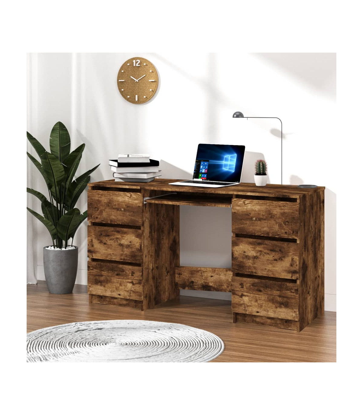 This writing desk with drawers is meant to be a practical and decorative addition to your living space! Practical material: The engineered wood is of exceptional quality with smooth surface and also features strength, stability and resistance to moisture. Made of engineered wood, this study desk is easy to clean.Ample storage space: The storage space of the computer desk makes it easy to keep things organised.Timeless look: The minimalist design makes the office desk easily blend into your decor.
