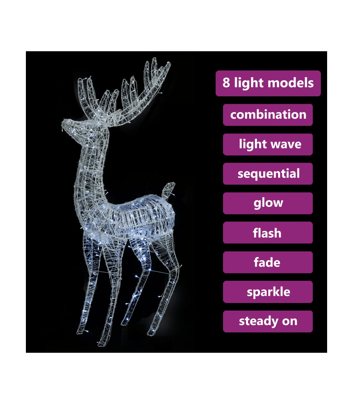 Decorate your garden, house or apartment with this unique collection of Christmas decorations. This standing reindeer decoration paired with warm white lighting brings out the true beauty in the Christmas festival! This reindeer decoration is crafted from acrylic, making it weather-resistant over the holiday season. It is pre-lit with 90 LED lights, which are energy-saving, long-lasting and durable. Note: The included USB connector is not waterproof so this part has to avoid water, but thanks to the extension cable the Christmas decoration can be used outdoors as the cable and product are waterproof. The product has a USB connector, but the certified 5V USB power source is not included.