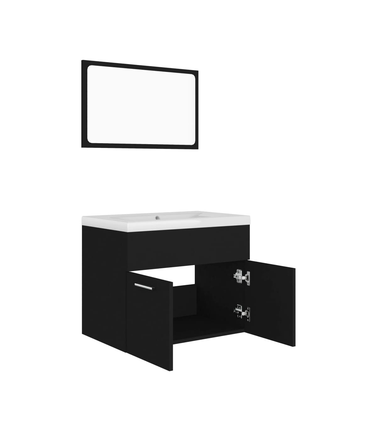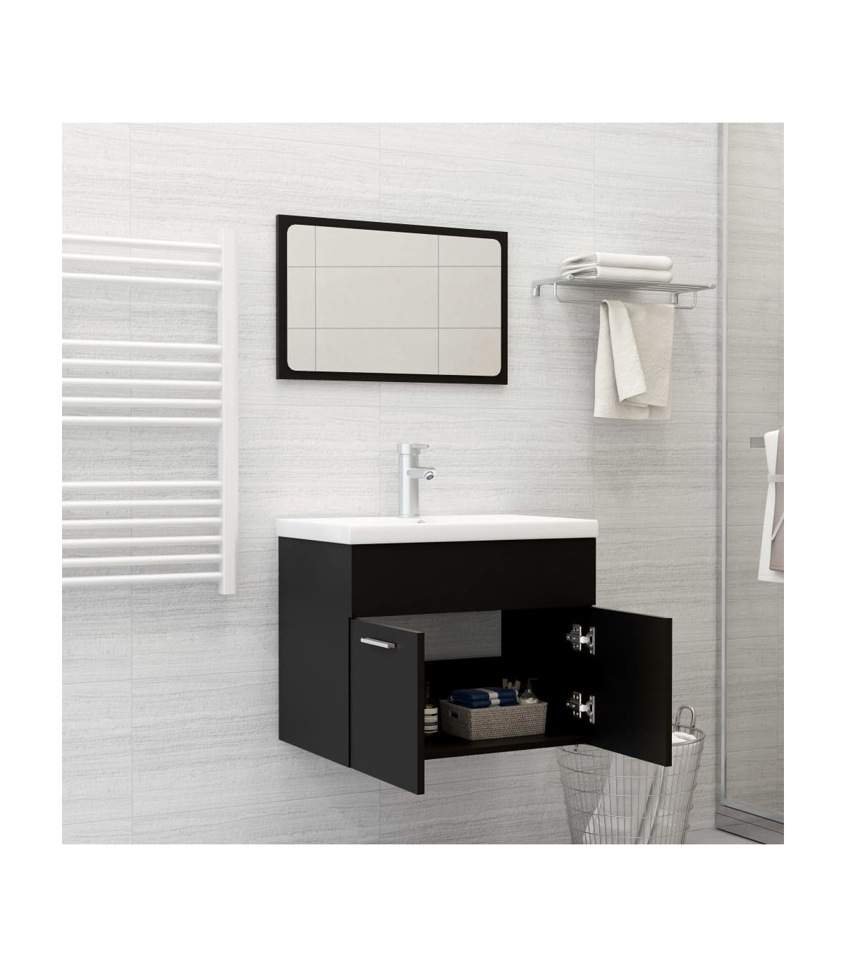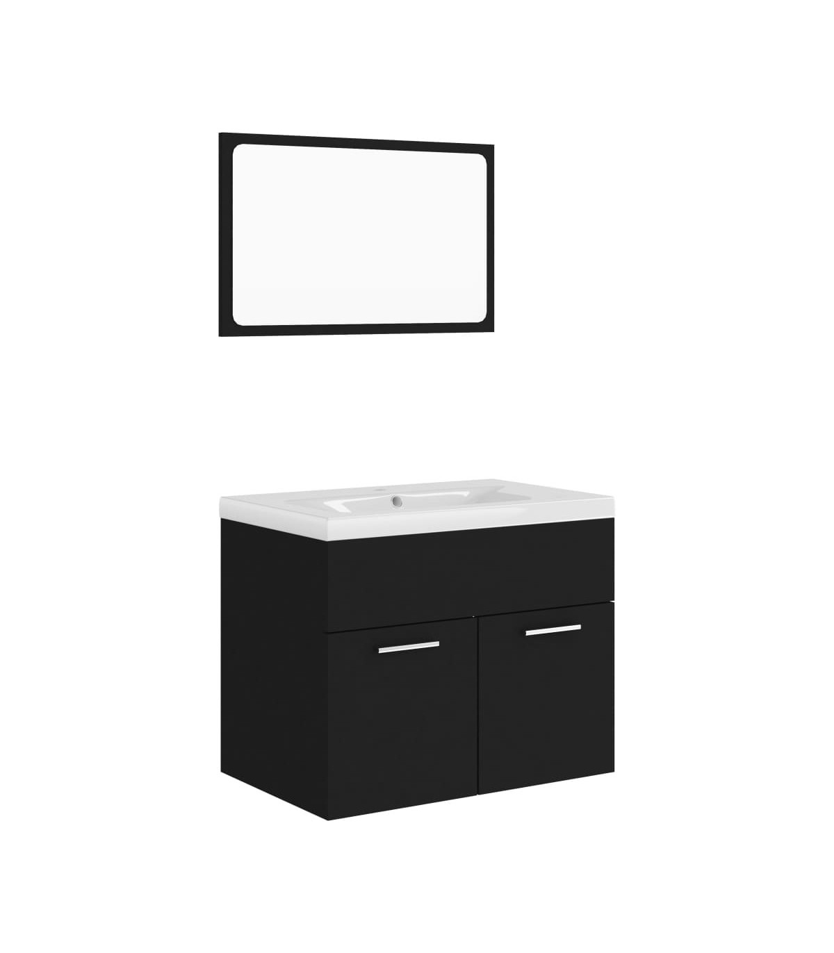 This stylish bathroom furniture set, which consists of a sink cabinet, a built-in basin, and a mirror, is a perfect match for your bathroom or washroom with a striking, tidy appearance. The sink cabinet is made of engineered wood, making it sturdy and stable. The cabinet has 1 compartment and 2 doors, offering ample space to store items. It fits perfectly under the sink and makes bathroom storage quite convenient. Made of ceramic, the basin can not only serve as a vessel for daily use but also as an adornment in your living space. Thanks to its trendsetting and contemporary design, this washbasin will definitely suit any decor. An overflow is also equipped to flow water out when it gets too full. Its glazed surface brings itself a modern yet elegant design. The mirror also adds an excellent appearance to your home decor. Additionally, this set is easy to clean with a damp cloth. Please note: The tap and the drain are not included in the delivery.