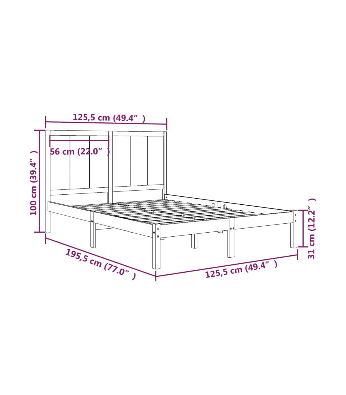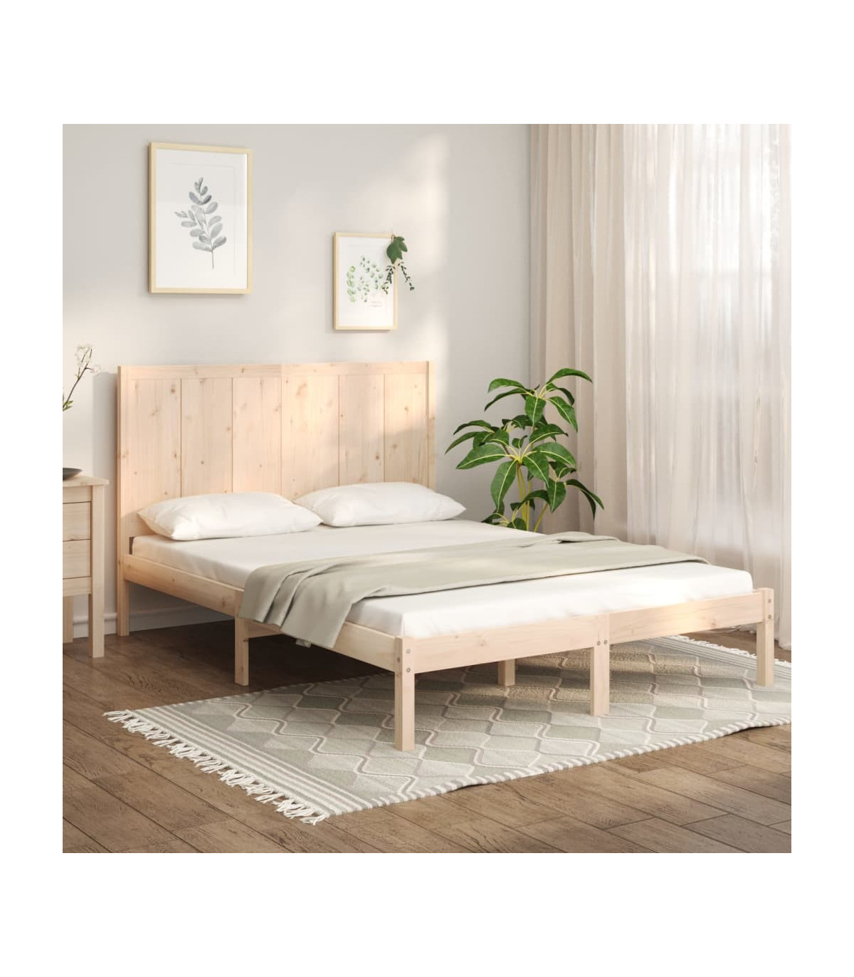 Take the modern route to your bedroom with this wooden bed frame! It makes a practical and decorative addition to your interior. Solid pine wood: Solid pine wood is a beautiful natural material. Pine wood has a straight grain, and the knots give the material its signature, rustic look.Sturdy and stable frame: The wooden frames ensure sturdiness and stability.Comfortable headboard: The classic headboard let you rest comfortably while reading or watching a movie.Eye-catching design: The headboard and footboard design is both decorative and practical. It adds a unique style and comfort. Good to know:The delivery includes a bed frame only. The mattress is not included. You can check our shop for the matching mattresses.Some headboard parts are packaged in the bed frame cartons due to space limitations.This bed frame is suitable for a mattress measuring 75x190 cm (2FT6 Small Single).