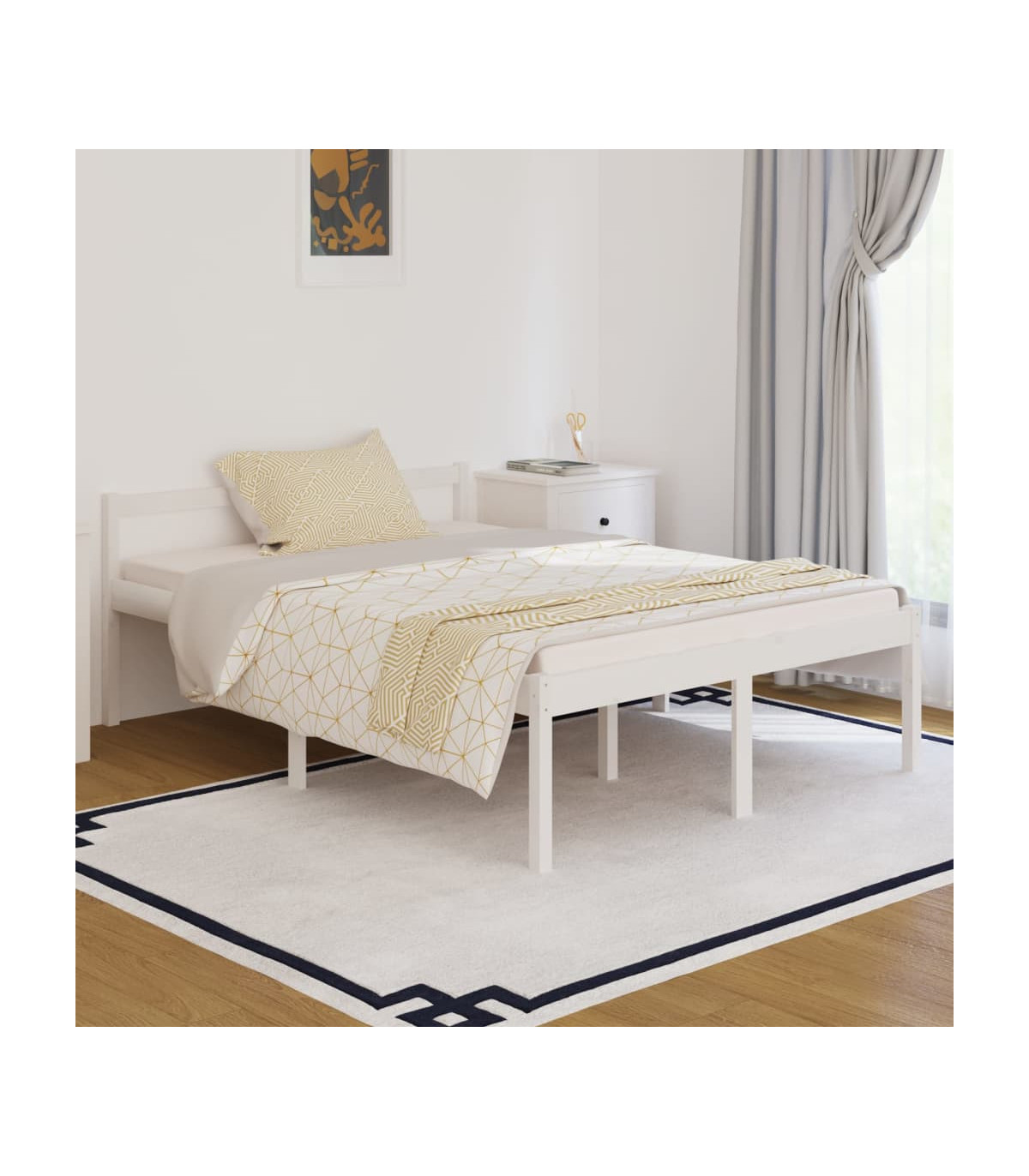 Bed Frame White Solid Wood Pine 140x190 cm