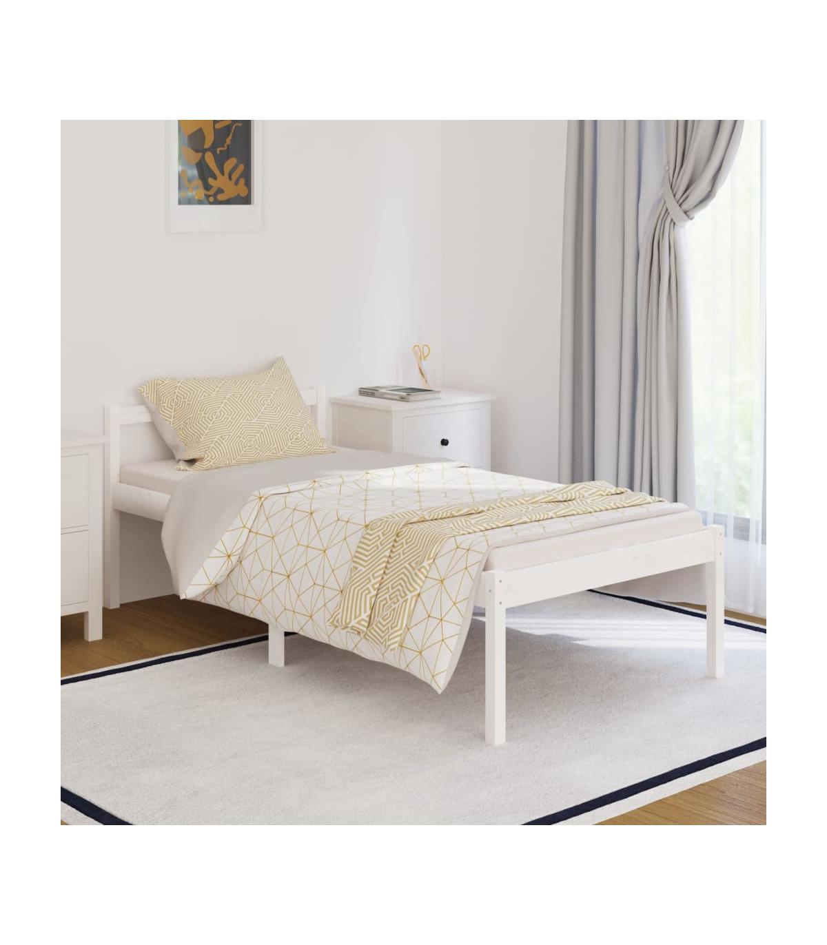 Take the modern route to your bedroom with this wooden senior bed! It makes a practical and decorative addition to your interior. Solid pine wood: Solid pine wood is a beautiful natural material. Treat the surface with oil, wax, lacquer, or a glazing finish for a stronger surface and easy cleaning. Pine wood has a straight grain, and the knots give the material its signature, rustic look.Suitable for the elderly: The bed frame is easy for seniors to get in and out of due to its 45 cm seat height.Extra storage space: The high bed has extra space underneath to store boxes for organising your clothes, toys, or quilts.Sturdy slats: The plywood slats provide good weight distribution, ensuring that the mattress stays in place with every twist and turn of your body during sleep.Comfortable headboard: The classic headboard let you rest comfortably while reading or watching a movie. Note:The delivery includes a bed frame only. The mattress is not included. You can check our shop for the matching mattresses.This bed frame is suitable for a mattress measuring 75 x 190 cm (2FT6 Small Single).