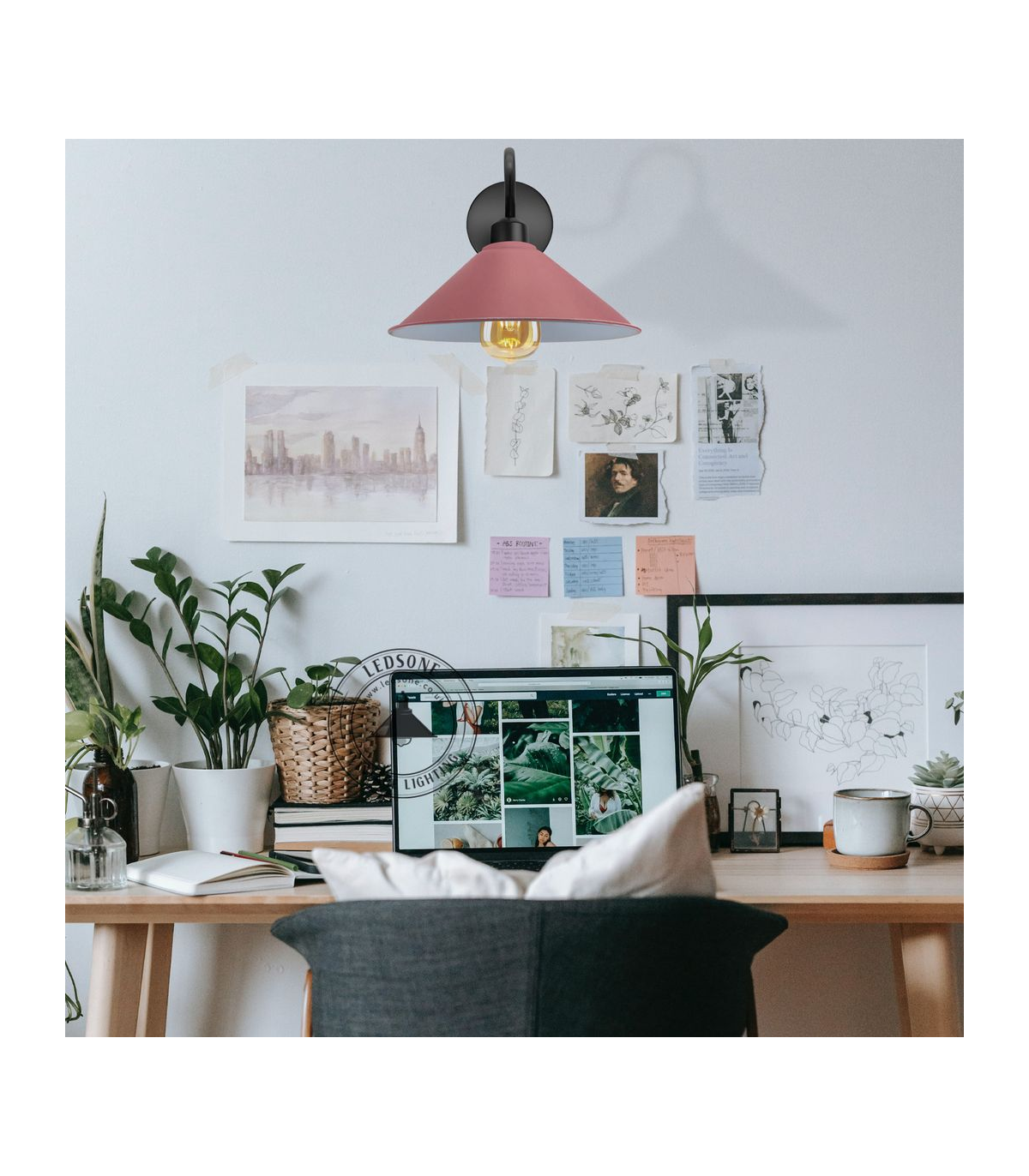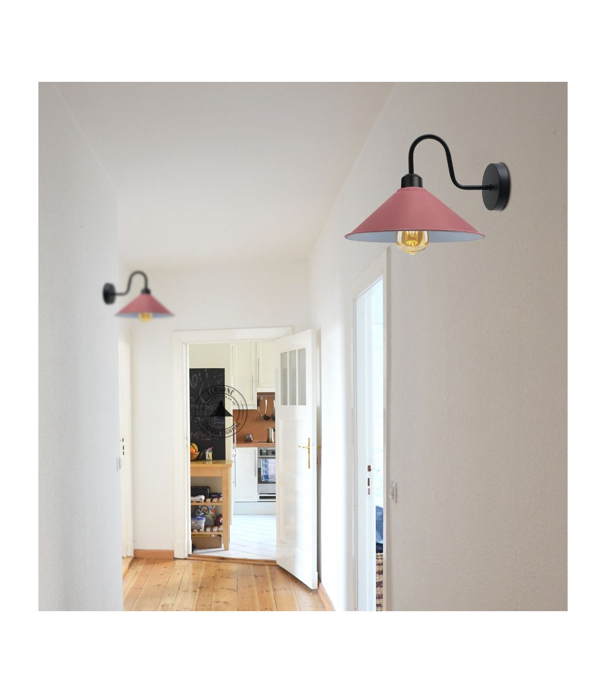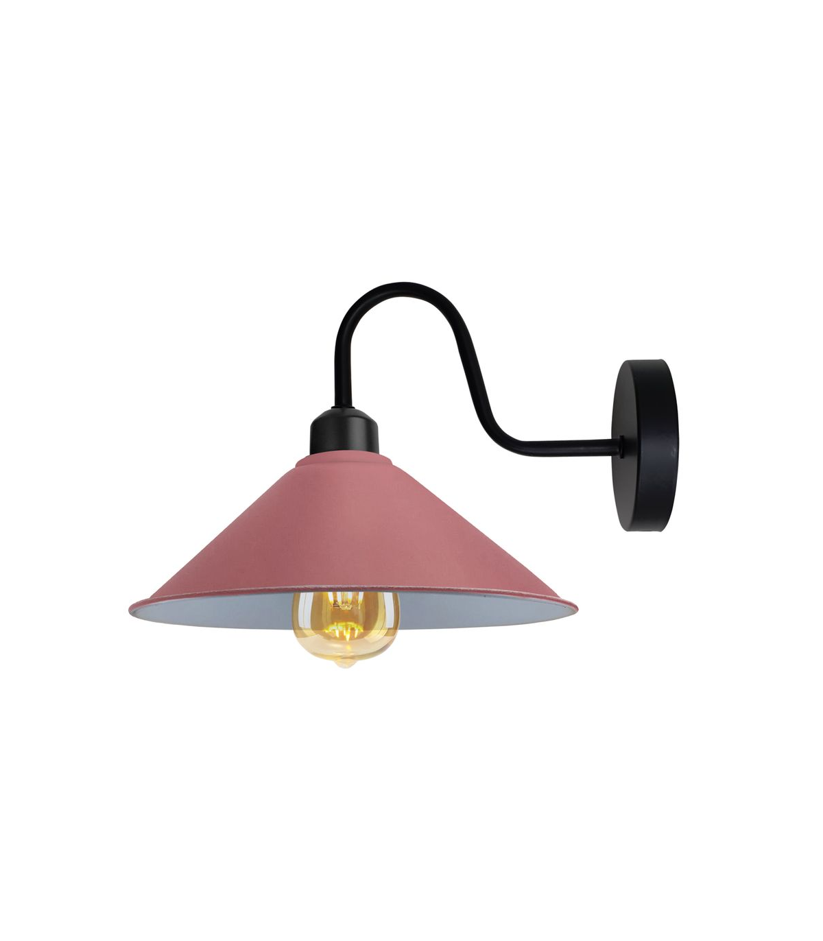 Pink Wall Light Fixture,Black Wall Sconce E27 Base Socket Screw Type Wall Mounted Swan Neck Cone Shape Shade