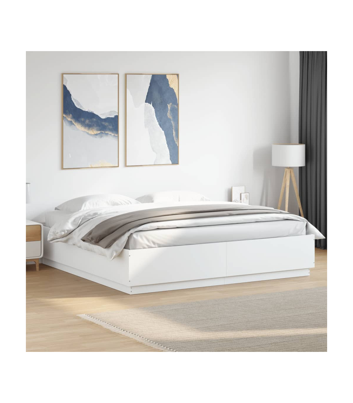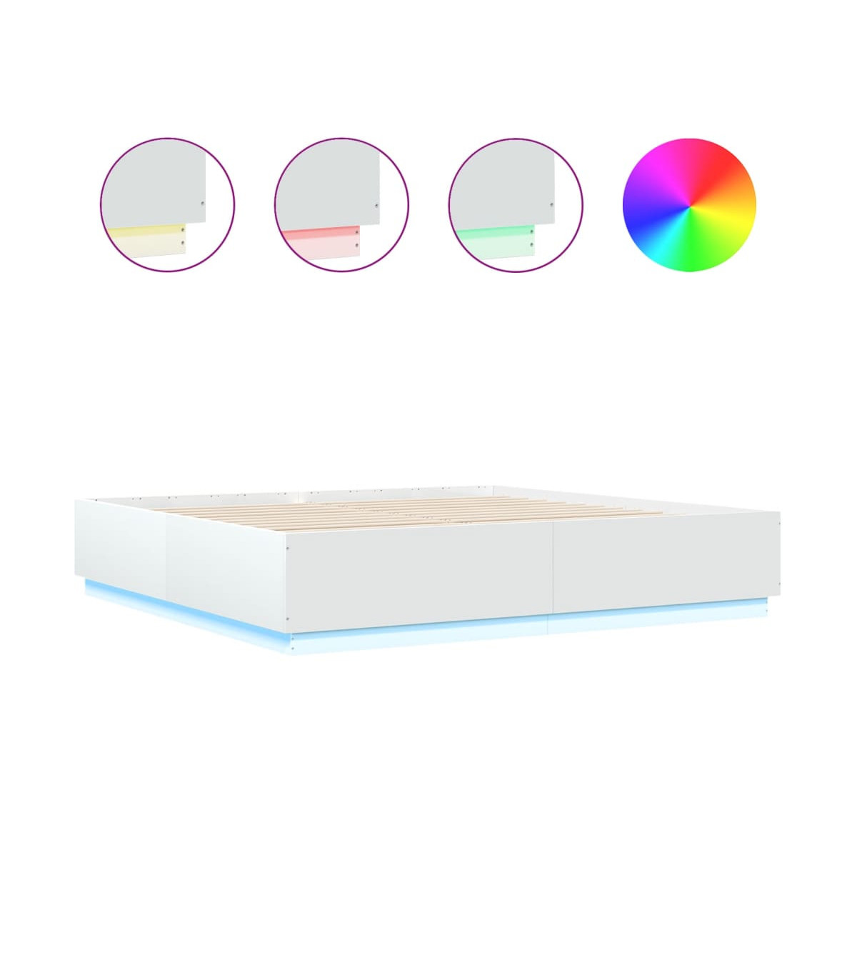 vidaXL Bed Frame with LED Lights White 200x200 cm Engineered Wood
