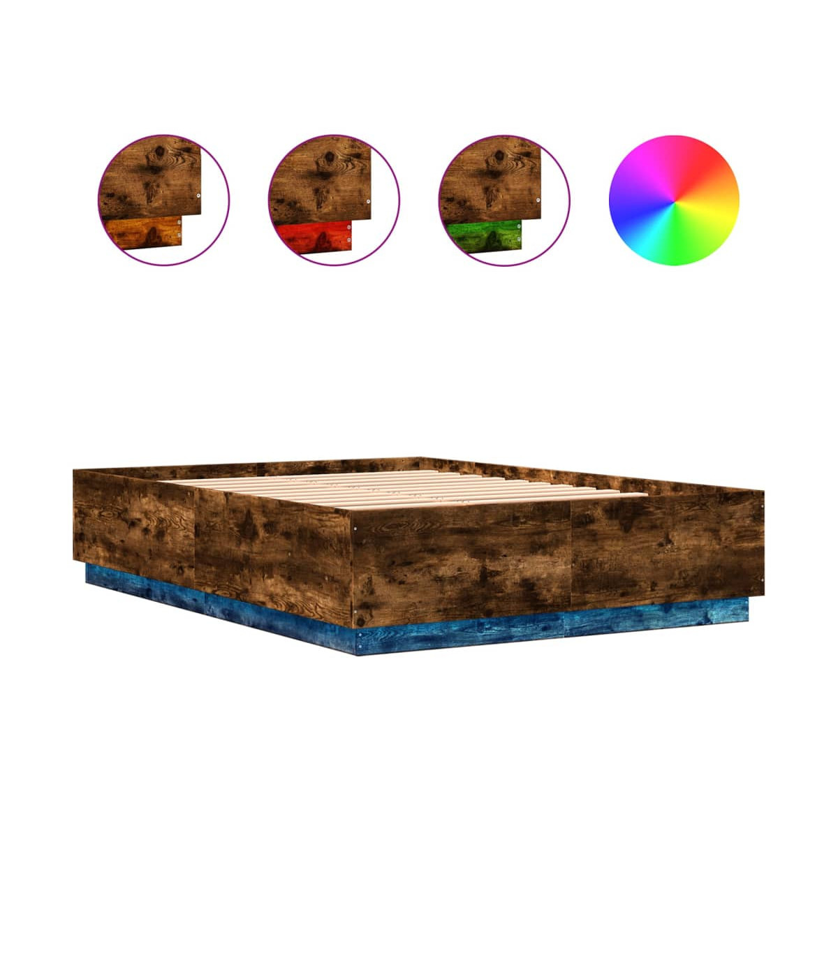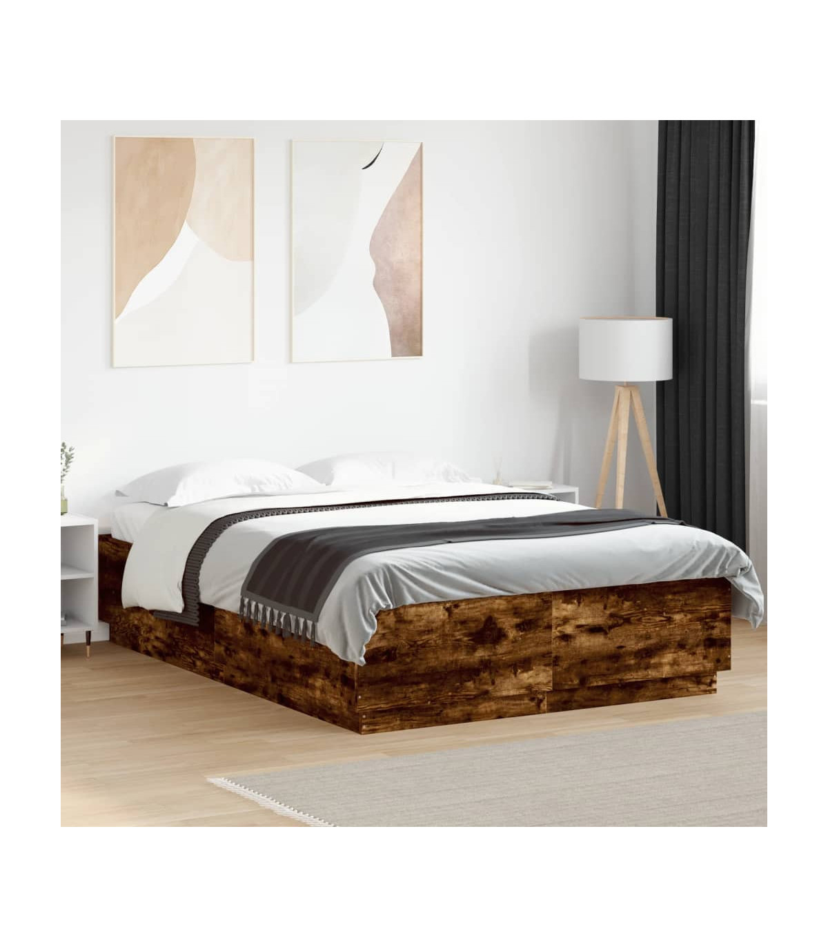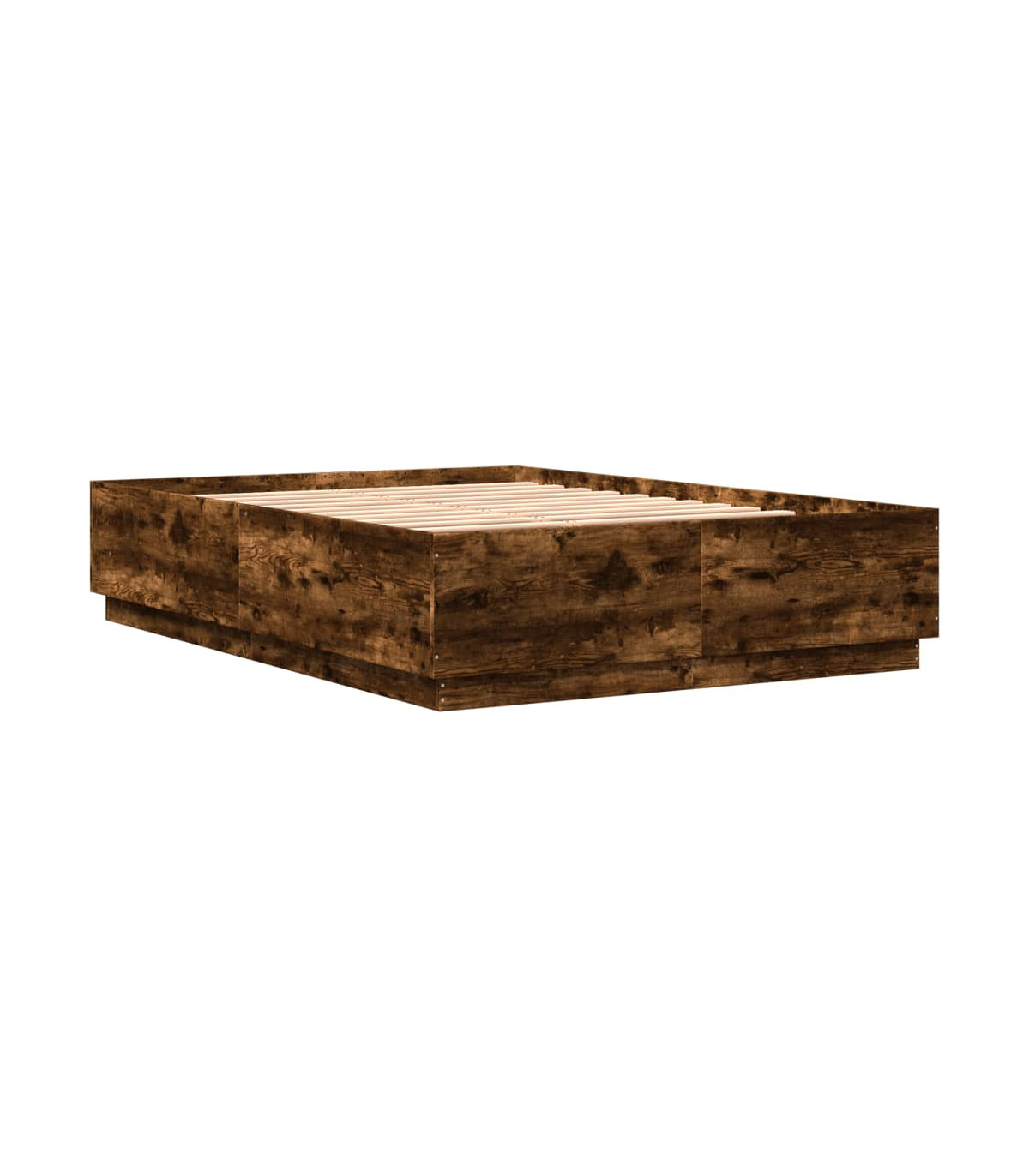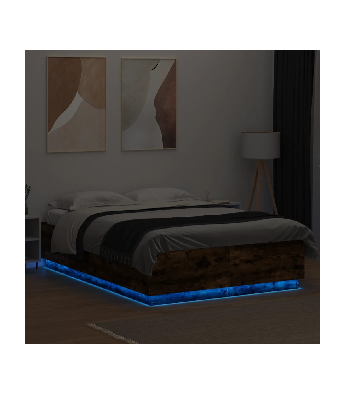 vidaXL Bed Frame with LED Lights Smoked Oak 150x200 cm King Size Engineered Wood