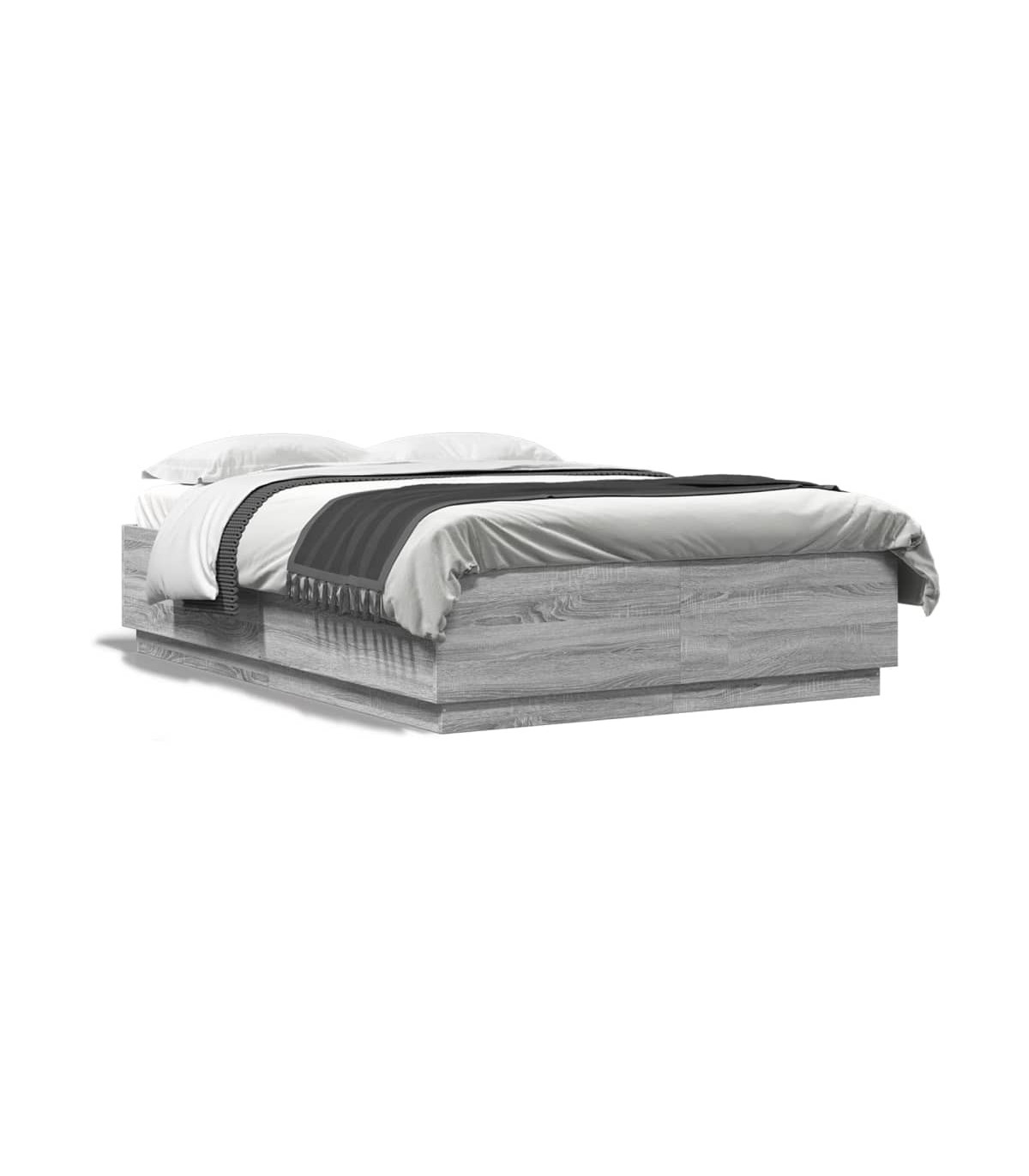 vidaXL Bed Frame with LED Lights Grey Sonoma 140x200 cm Engineered Wood
