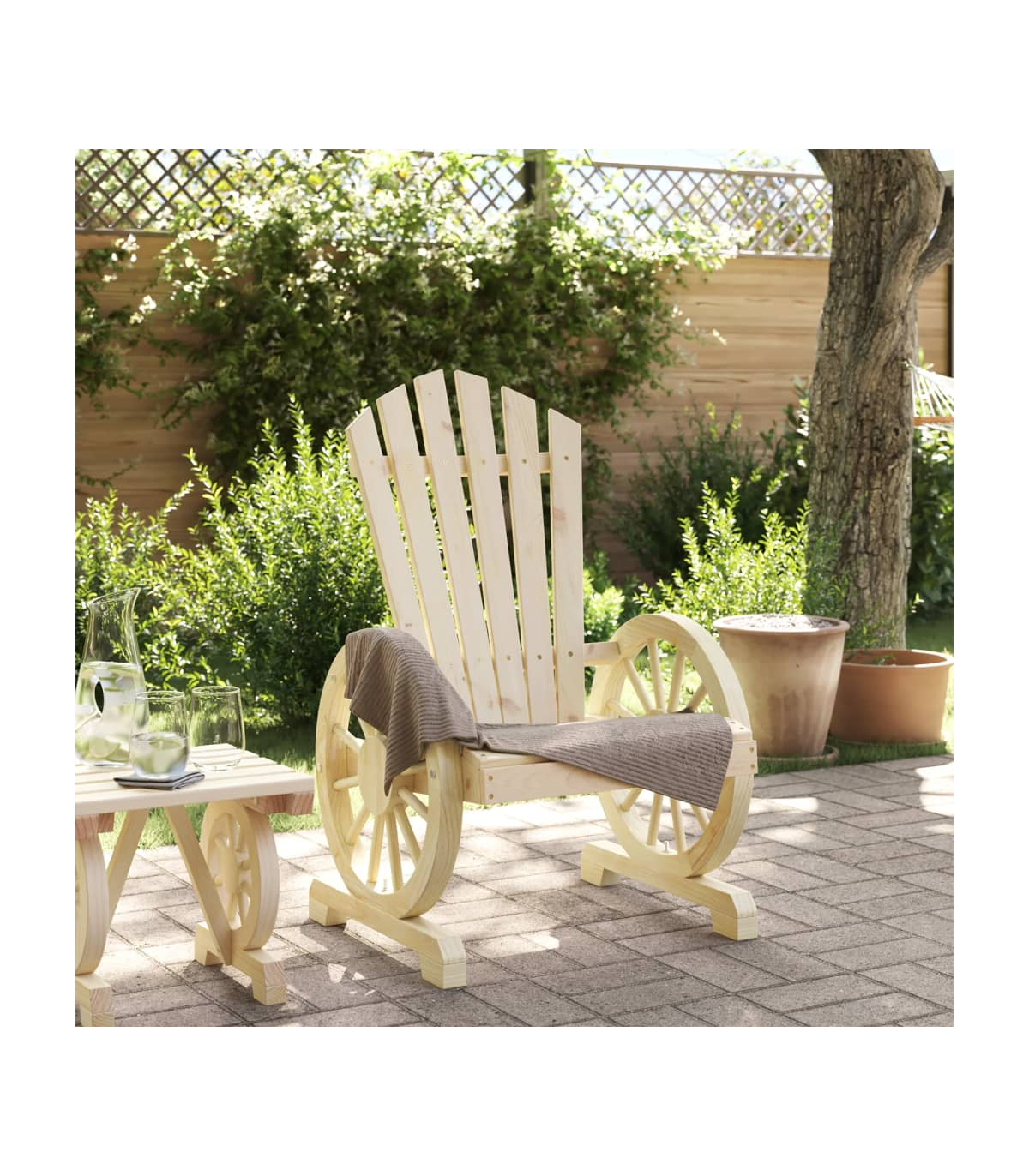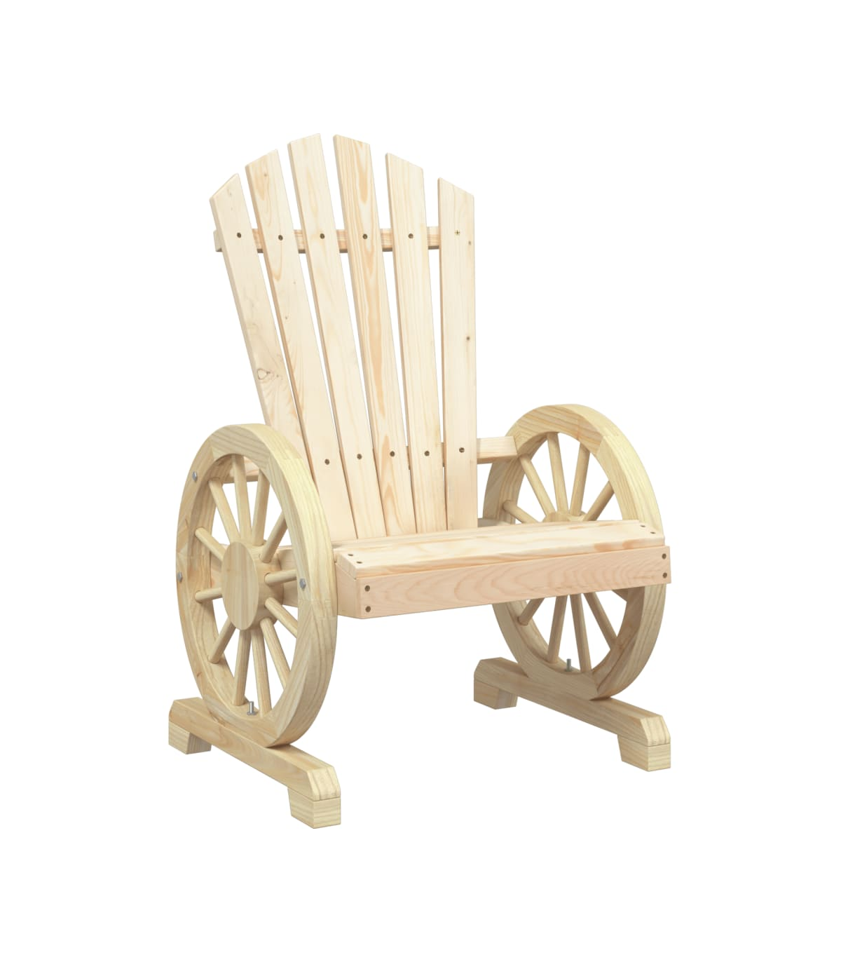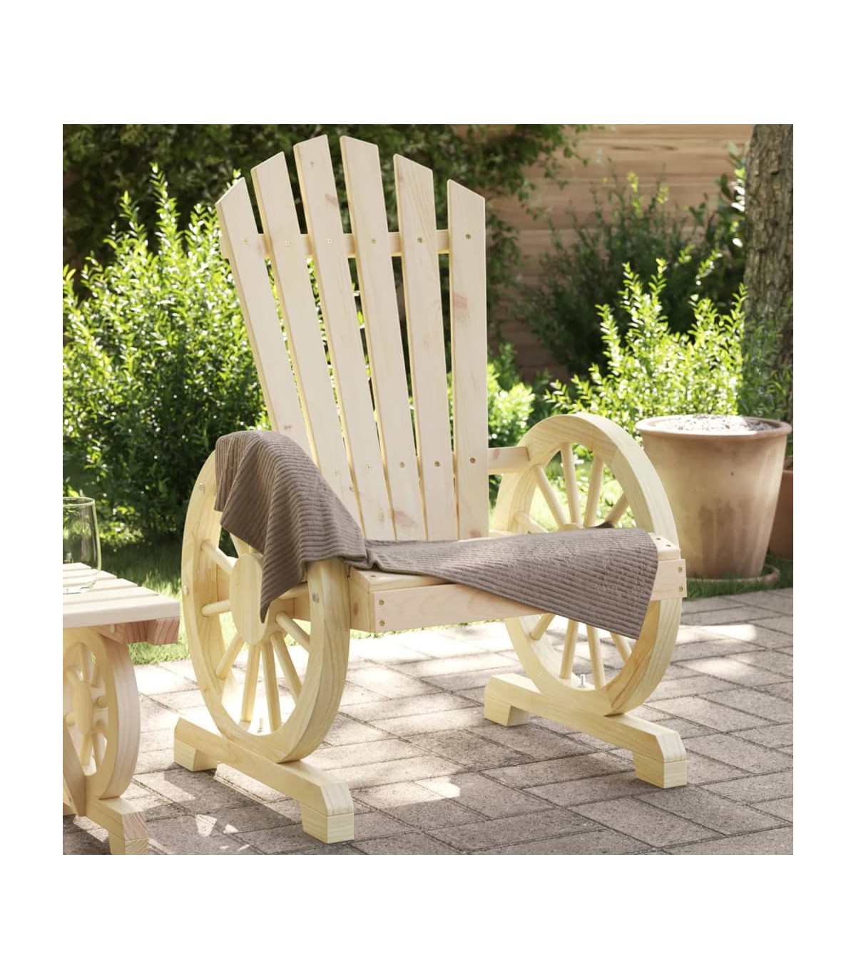 This garden Adirondack chair is perfect for those who want to enjoy the outdoors in style and comfort. Solid fir wood: Solid fir wood is a beautiful and durable material that maintains its integrity even when exposed to moisture. It does not dry out or warp, making it a reliable choice.Comfortable seating: The garden lounge chair features an ergonomic seat and angled backrest for optimal seating comfort. Additionally, the wagon-wheel shaped armrests provide comfortable space to rest your arms.Wide applications: The outdoor chair is a perfect seating solution in your gardens, backyards, lawns, decks, pool sides, balconies, and other outdoor living spaces. Good to know:To make sure your outdoor furniture stays beautiful, we recommend protecting it with a waterproof cover.