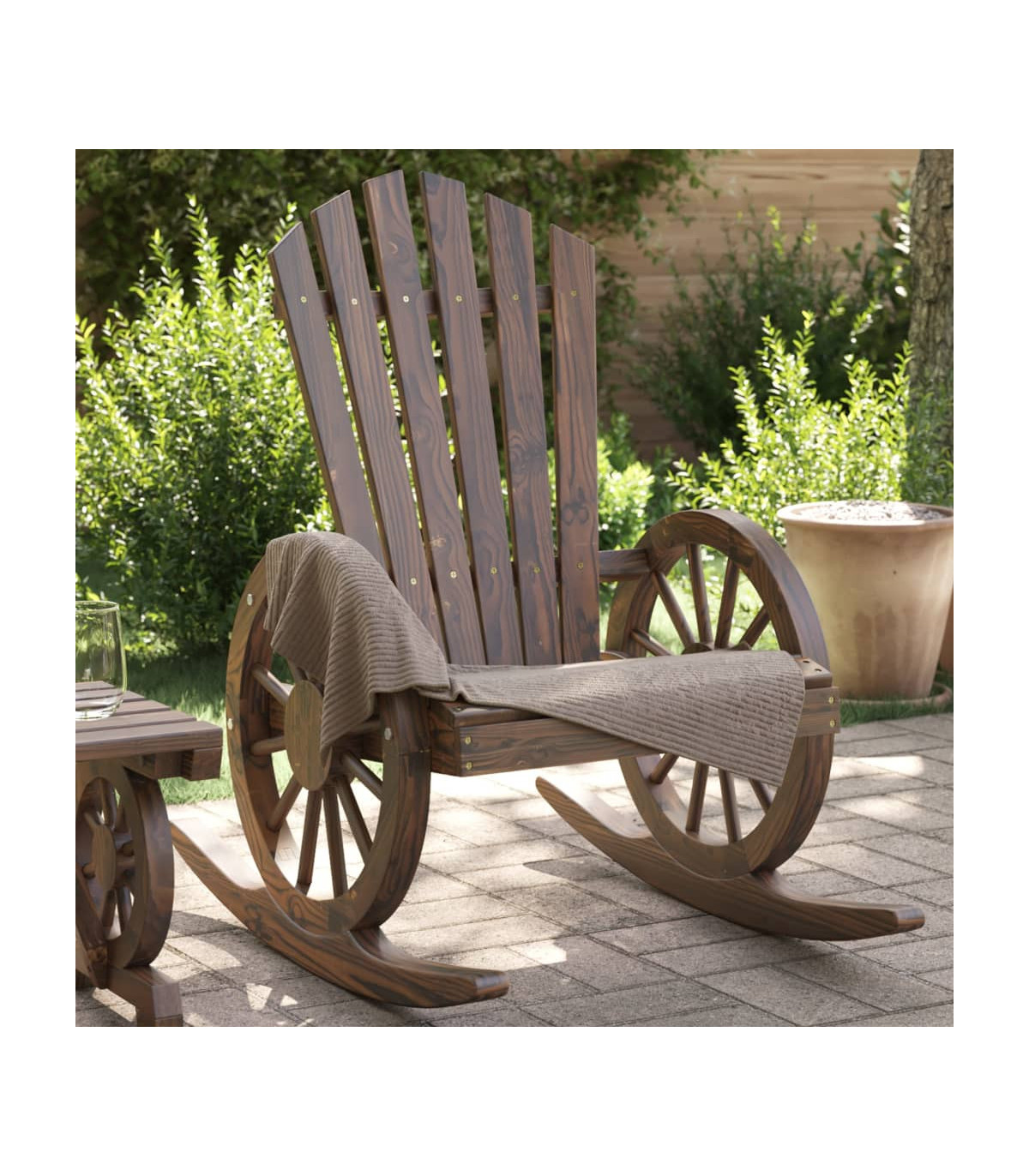 This rocking Adirondack chair is perfect for those who want to enjoy the outdoors in style and comfort. Solid fir wood: Solid fir wood is a beautiful and durable material that maintains its integrity even when exposed to moisture. It does not dry out or warp, making it a reliable choice.Comfortable seating: The garden lounge chair features an ergonomic seat and angled backrest for optimal seating comfort. Additionally, the wagon-wheel shaped armrests provide comfortable space to rest your arms.Rocking design: Relax by sitting comfortably on this Adirondack rocking chair while enjoying a calming, gentle rocking motion.Wide applications: The outdoor chair is a perfect seating solution in your gardens, backyards, lawns, decks, pool sides, balconies, and other outdoor living spaces. Good to know:To make sure your outdoor furniture stays beautiful, we recommend protecting it with a waterproof cover.