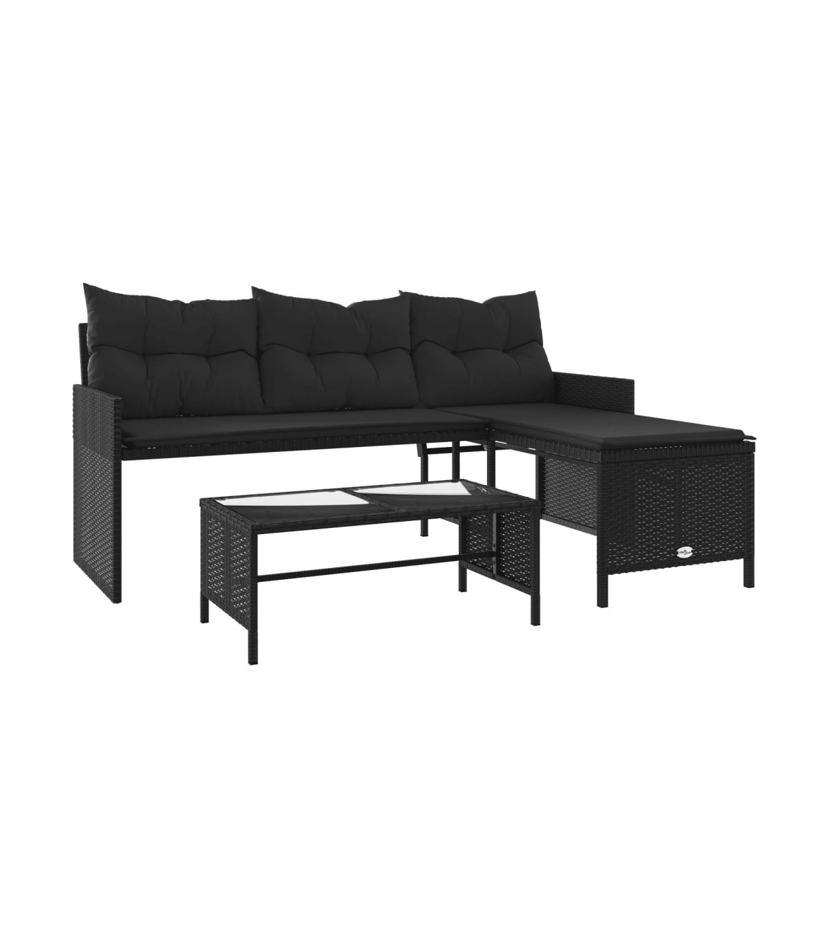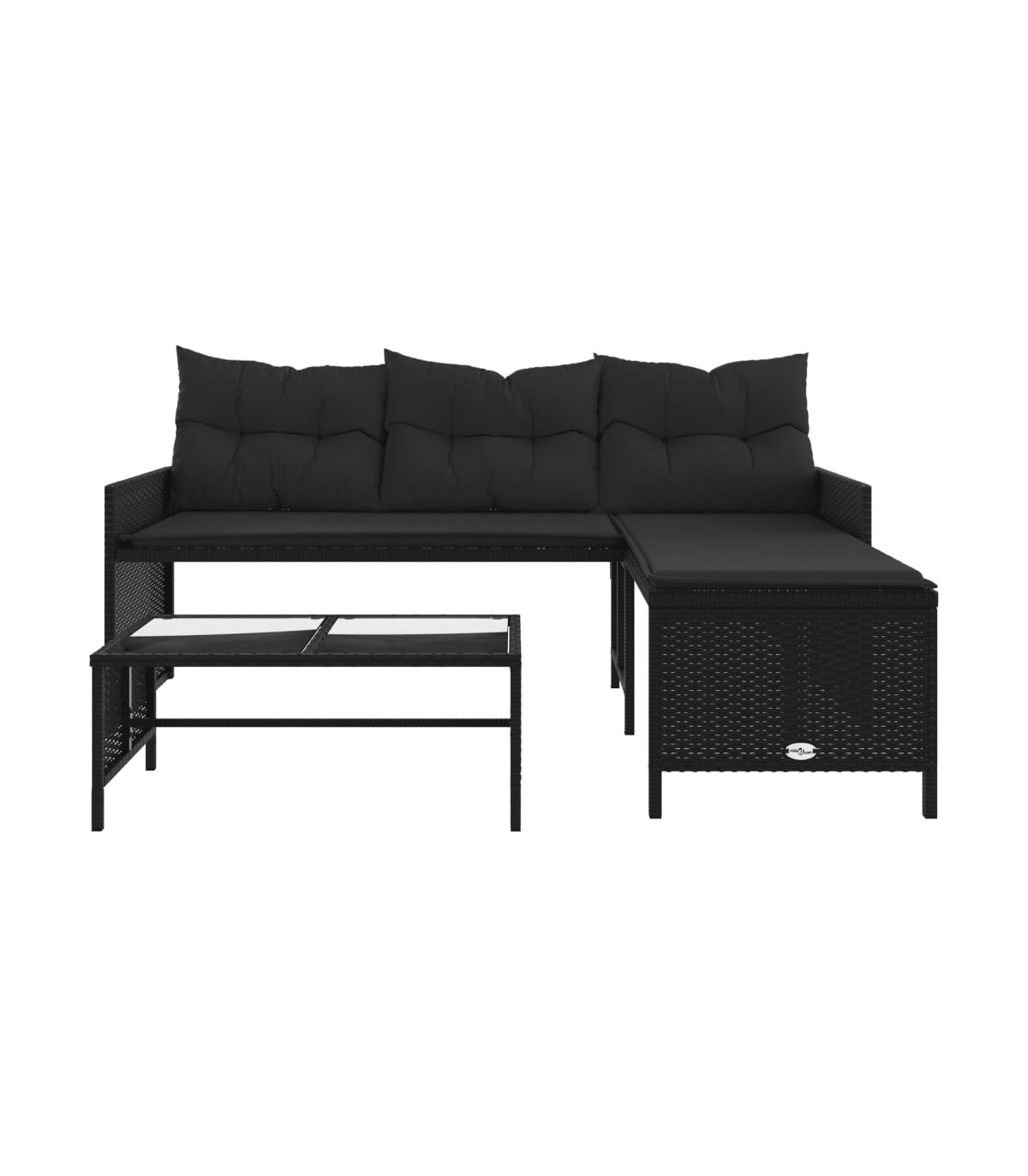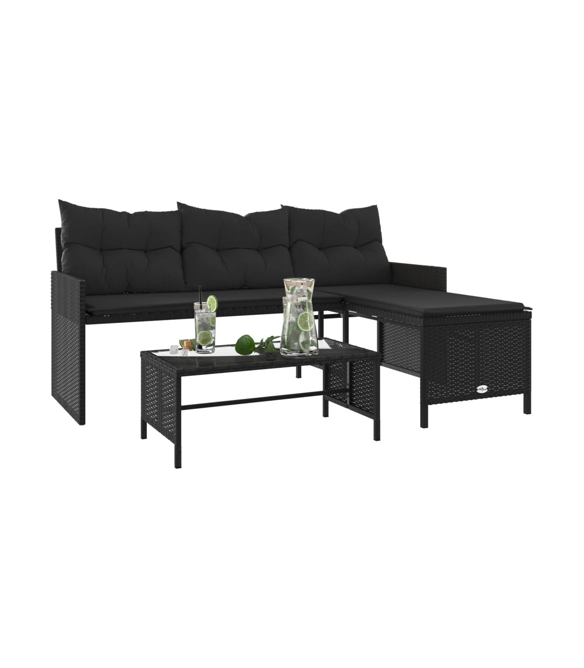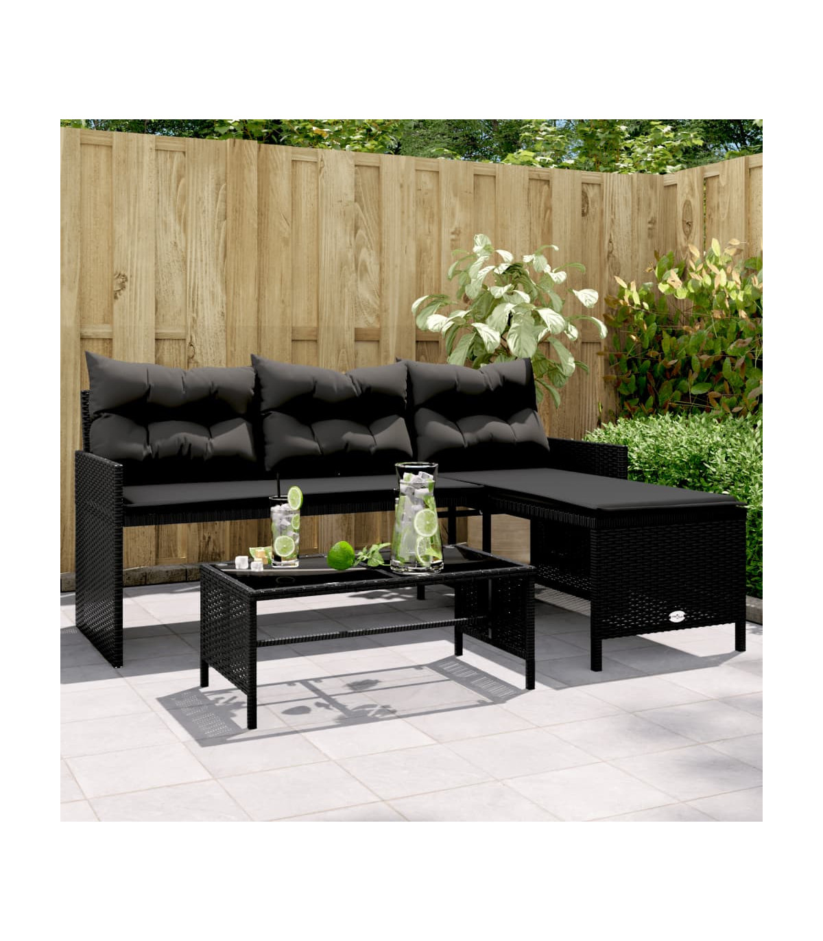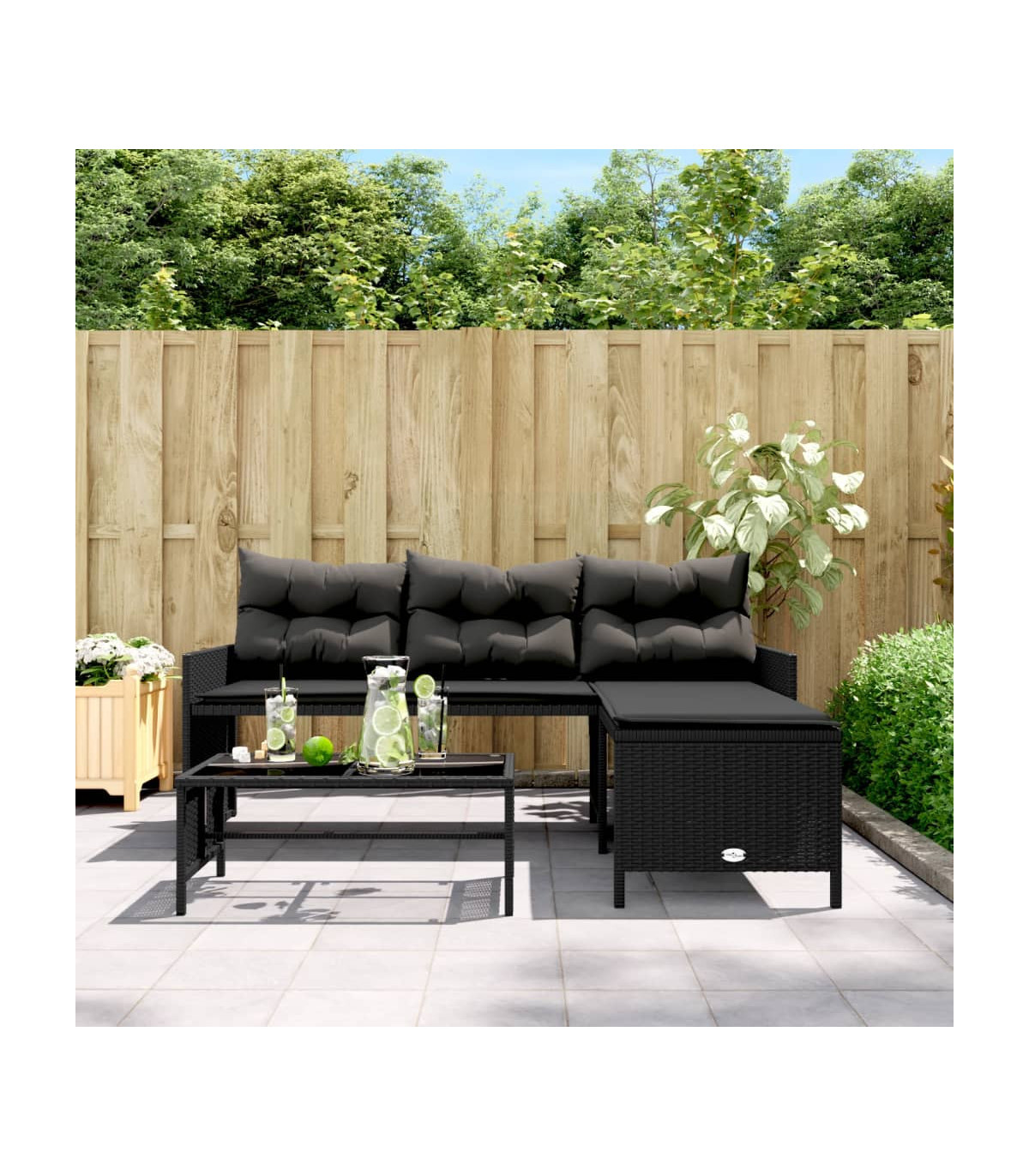 This L-shaped garden sofa is the perfect addition to your garden, terrace, or patio, providing a comfortable and inviting space for chatting with family and friends or simply relaxing and enjoying the outdoors. Durable material: PE rattan, also known as poly rattan, is a strong, low-maintenance synthetic material that looks like natural rattan. It's lightweight, easy to clean, and commonly used for outdoor furniture due to its durability and weather-resistant properties.Comfortable seat experience: This outdoor furniture, complete with thickly padded cushions, offers a comfortable seating experience.Removable and washable cover: These seat cushions feature removable covers for easy washing and maintenance. Robust and stable frame: The powder-coated steel frame ensures the garden furniture is strong and stable for daily outdoor use.Glass tabletop: The outdoor table's top is made from strong and durable tempered glass, making it easy to clean with a damp cloth and adding a touch of elegance to your outdoor space. Good to know:To make sure your outdoor furniture stays beautiful, we recommend protecting it with a waterproof cover.