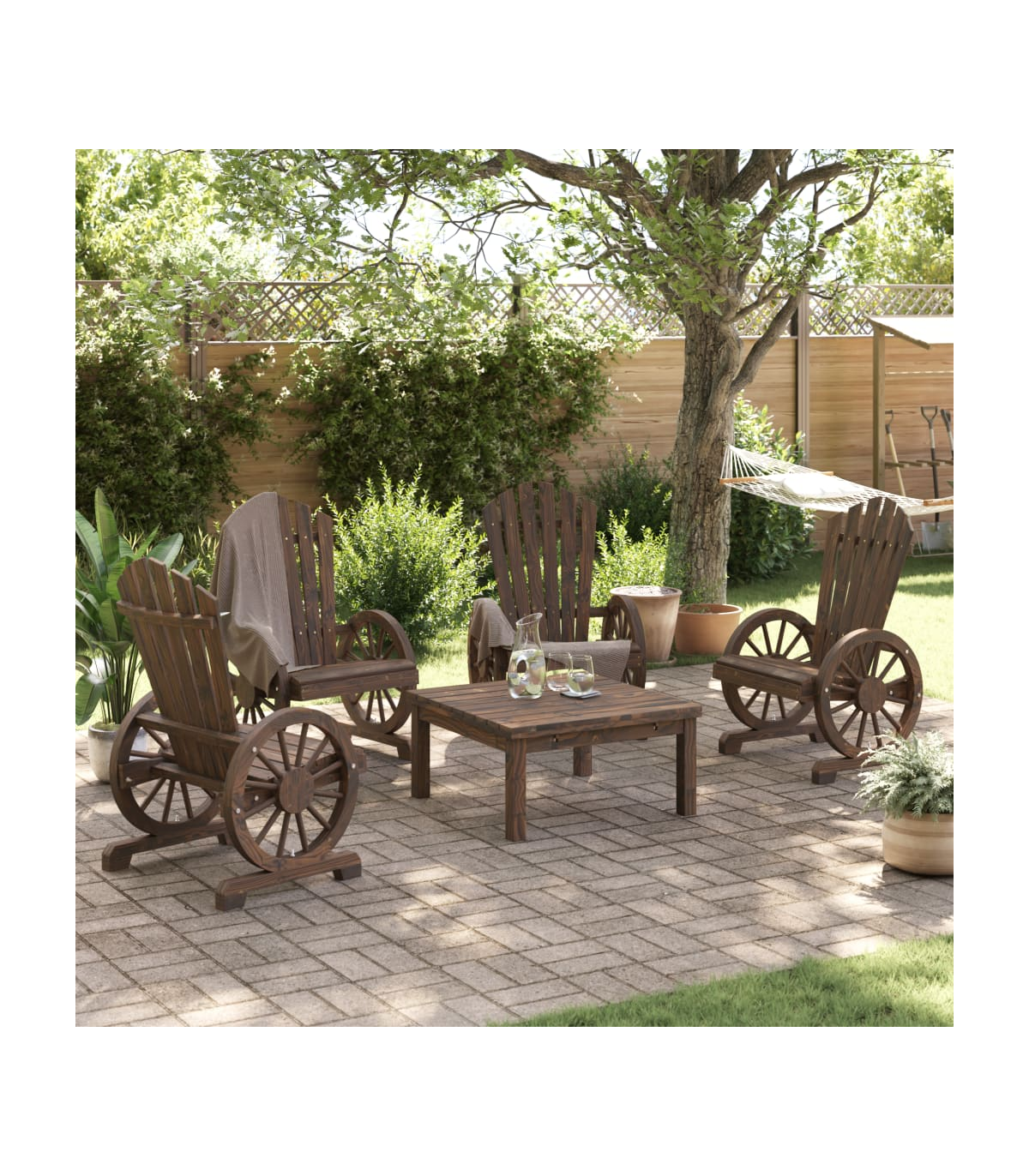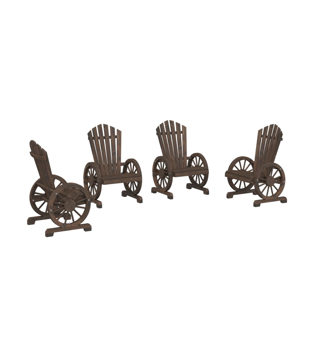 This garden Adirondack chair is perfect for those who want to enjoy the outdoors in style and comfort. Solid fir wood: Solid fir wood is a beautiful and durable material that maintains its integrity even when exposed to moisture. It does not dry out or warp, making it a reliable choice.Comfortable seating: The garden lounge chair features an ergonomic seat and angled backrest for optimal seating comfort. Additionally, the wagon-wheel shaped armrests provide comfortable space to rest your arms.Wide applications: The outdoor chair is a perfect seating solution in your gardens, backyards, lawns, decks, pool sides, balconies, and other outdoor living spaces. Good to know:To make sure your outdoor furniture stays beautiful, we recommend protecting it with a waterproof cover.