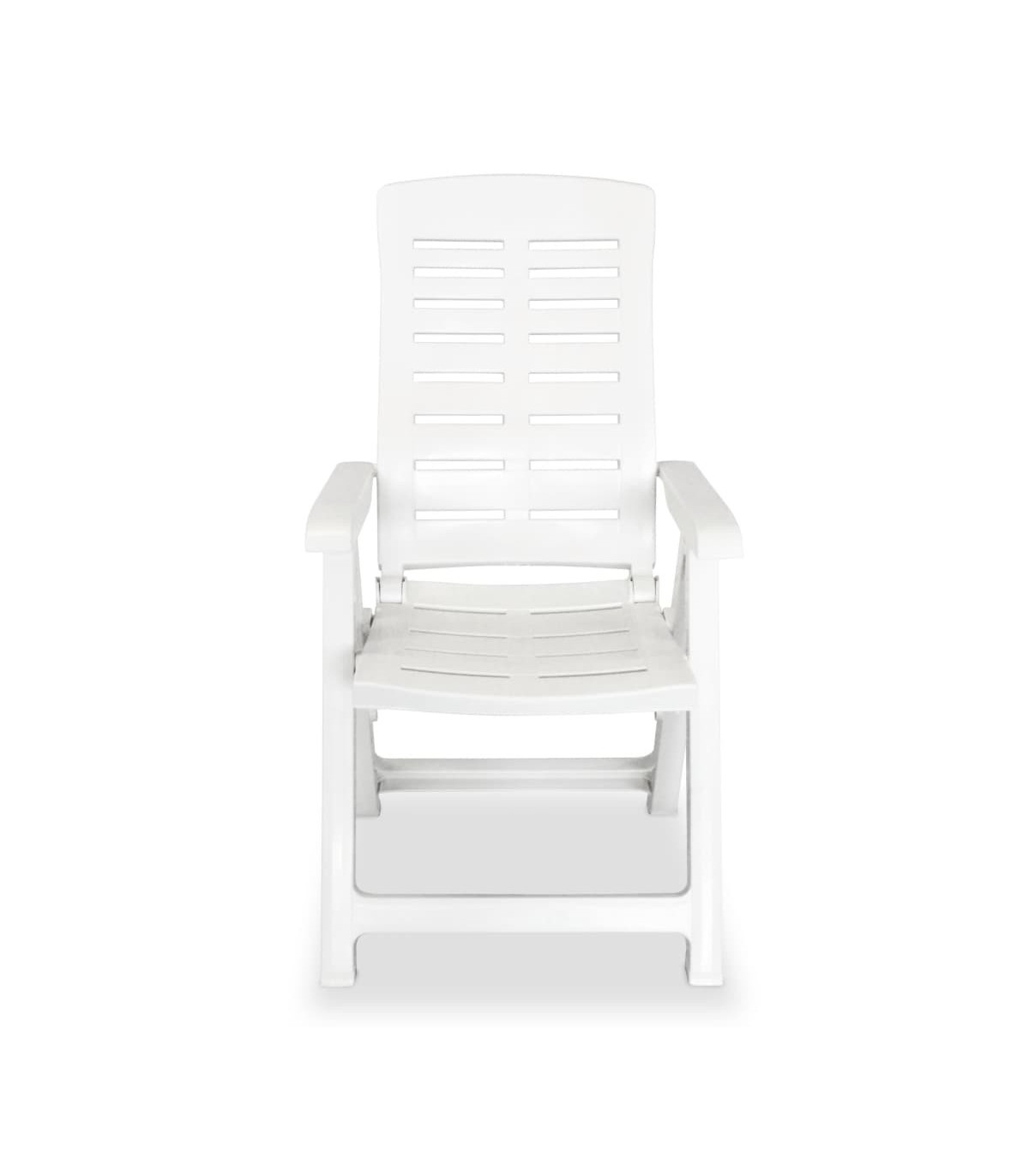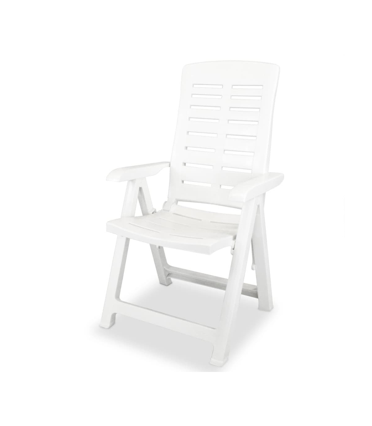 These weather-resistant garden chairs will make a great addition to your garden or patio. They are ideal for chatting with family and friends or just enjoying the weather. The reclining chairs are made of durable plastic, which makes them weather resistant and easy to clean. The chairs' backrests have 4 reclining settings, so you can always find the most comfortable position. They are also lightweight, which makes them easy to move around. The chairs can be folded to save space when not in use. Delivery includes 2 chairs.