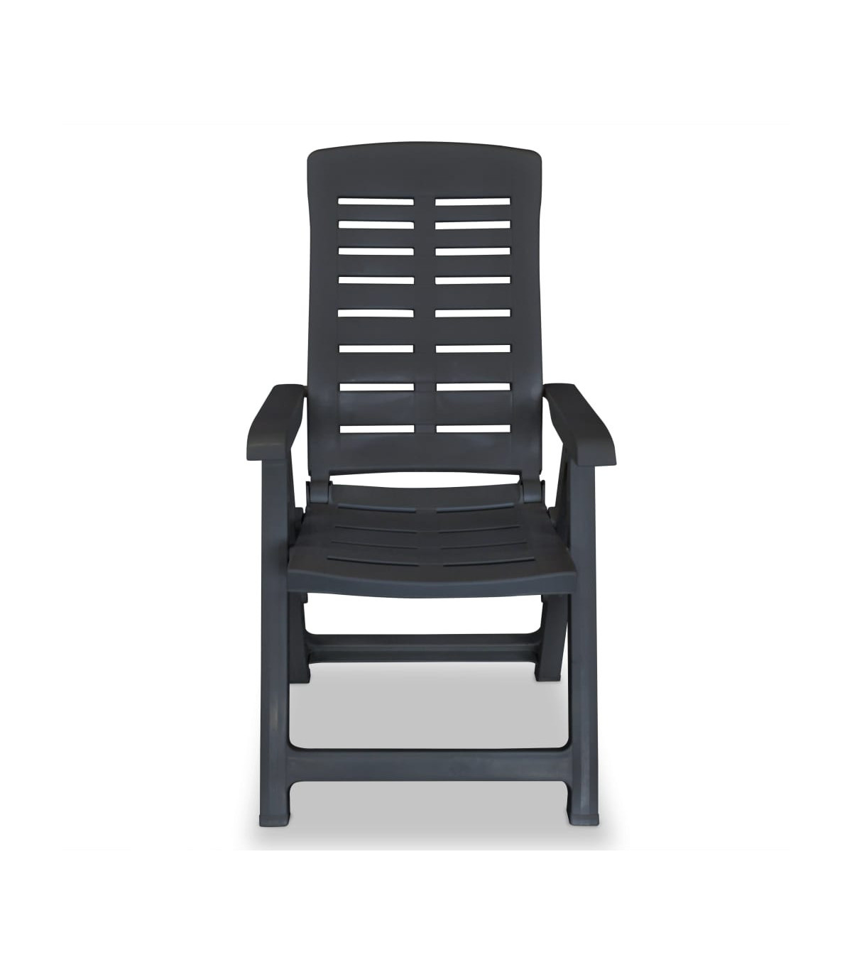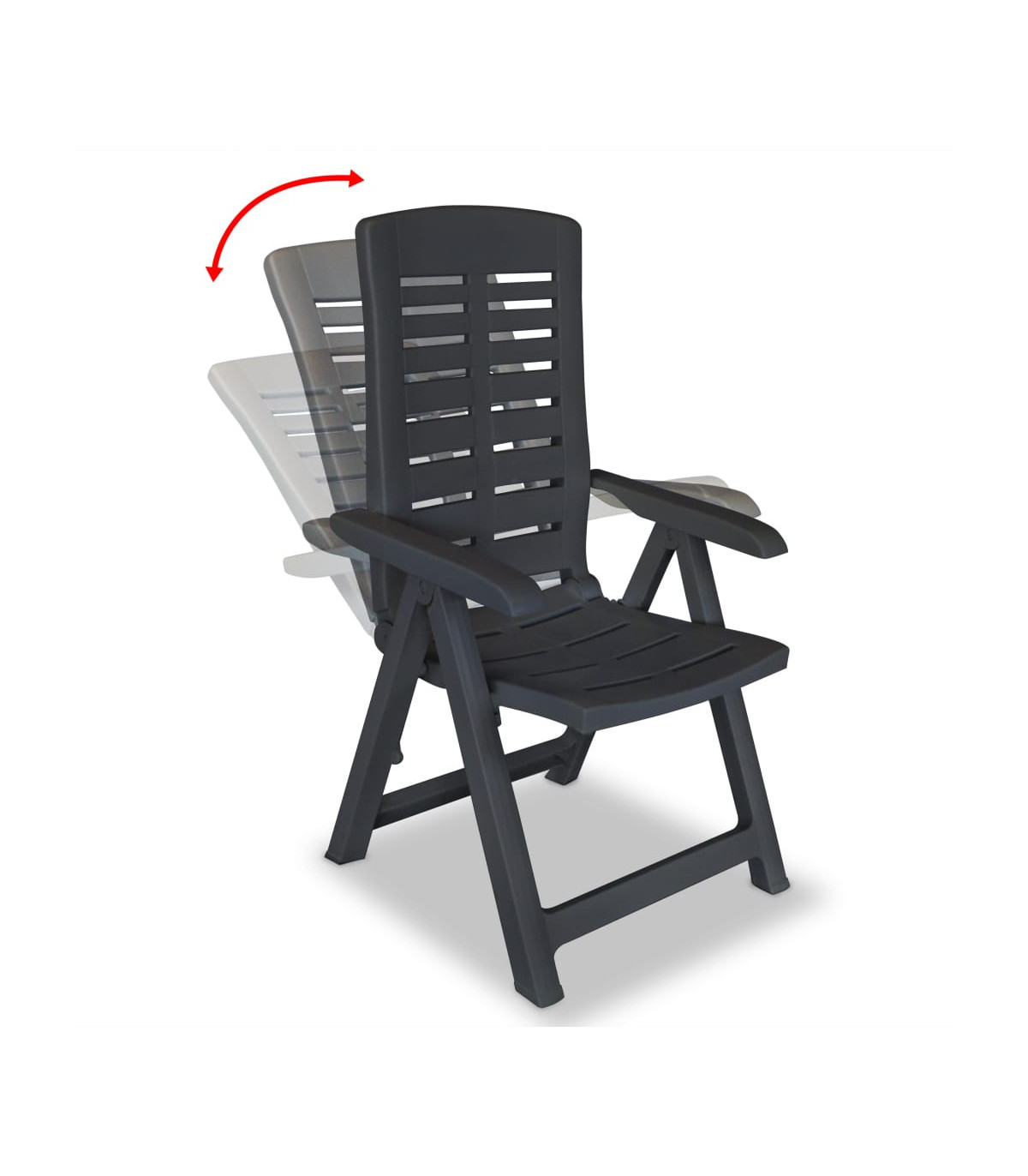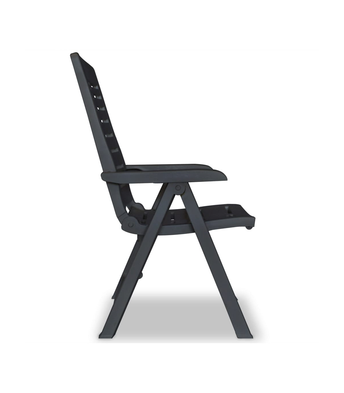 These weather-resistant garden chairs will make a great addition to your garden or patio. They are ideal for chatting with family and friends or just enjoying the weather. The reclining chairs are made of durable plastic, which makes them weather resistant and easy to clean. The chairs' backrests have 4 reclining settings, so you can always find the most comfortable position. They are also lightweight, which makes them easy to move around. The chairs can be folded to save space when not in use. Delivery includes 2 chairs.