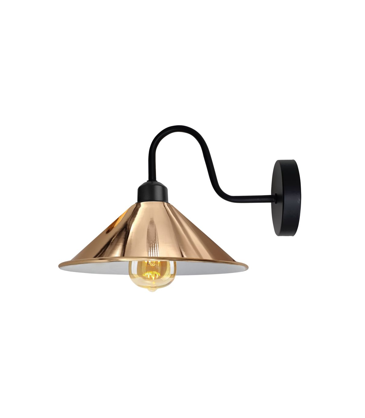 Features: The cone-shaped wall light is inspired by simple yet functional lamps. In addition to the bright and warm lighting, we also pursue a kind of elegant aesthetic feeling and sophisticated retro craft. If the lamp is used with a compatible dimmer switch, it can be dimmed to provide the desired level of illumination. These fixtures have a standard E27 base, which means they can accommodate most types of bulbs with an E27 base. Perfect for indoor lighting, barn, restaurant, kitchen, entryway, hallway, stairway, etc. Specifications: Lamp type: wall lamp Style: Vintage Material: Metal Shade : 22cm W x 10cm H Ceiling rose: 10cm W x 2.5cm H Arm length: 17.5cm voltage: 110-240V Bulb Base: E27 Warranty: 3 years Certification: CE, RoHS Dimmable: Yes (With dimmable bulb and with dimmer switch) Bulb Requirements: Requires E27 max 60W Bulb Type: Compatible with all kinds of E27 Bulbs Installation Area: Indoor Power Source: Hardwired Energy consumption: A+ with LED bulb