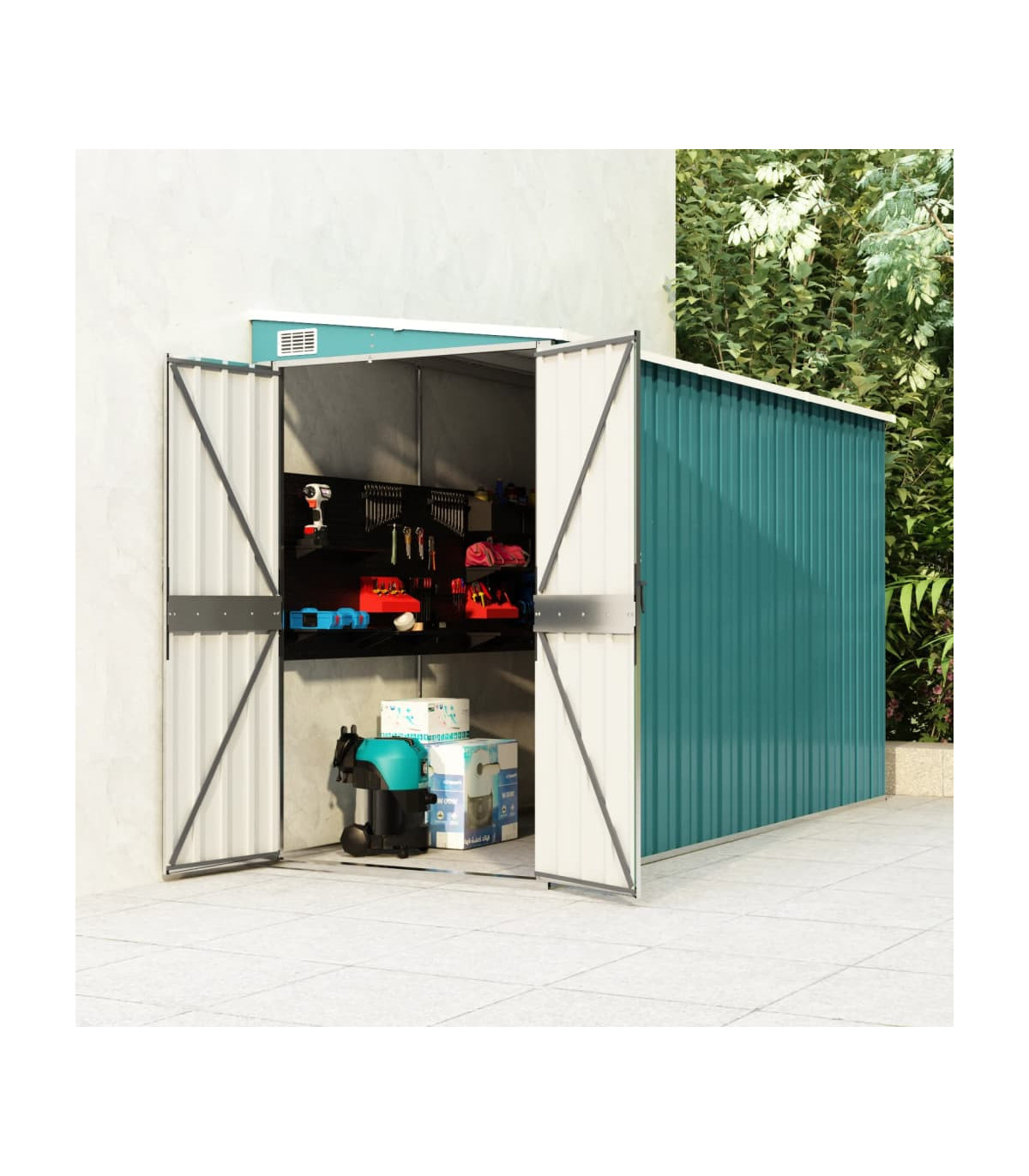 vidaXL Wall-mounted Garden Shed Green 118x288x178 cm Galvanised Steel