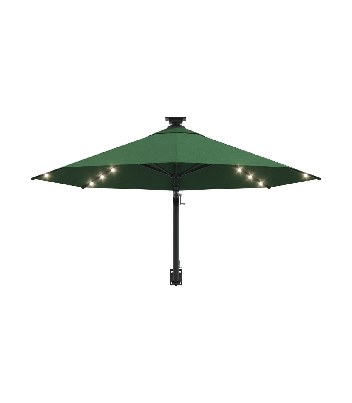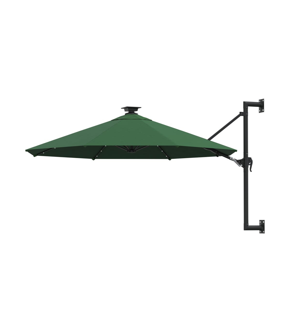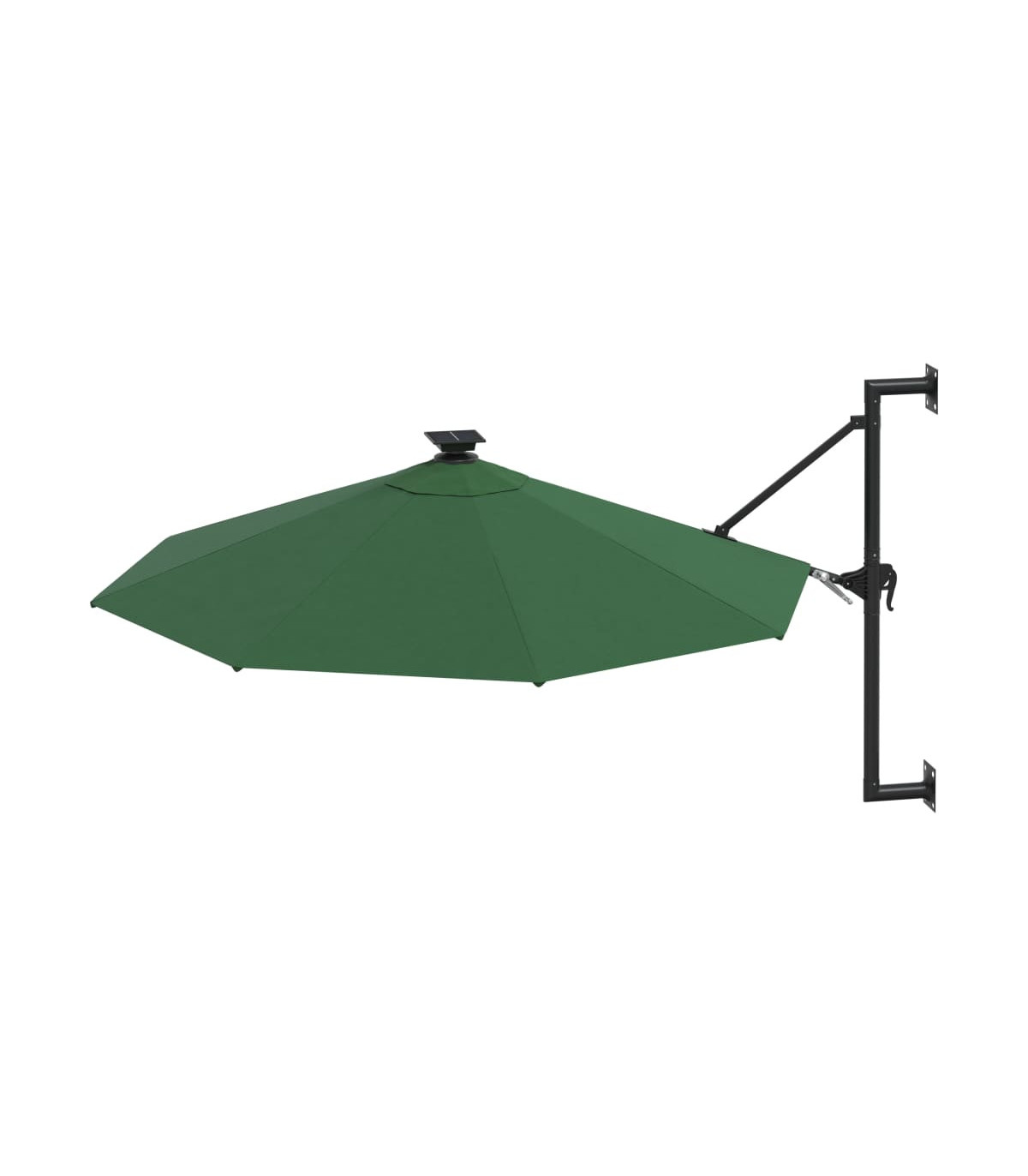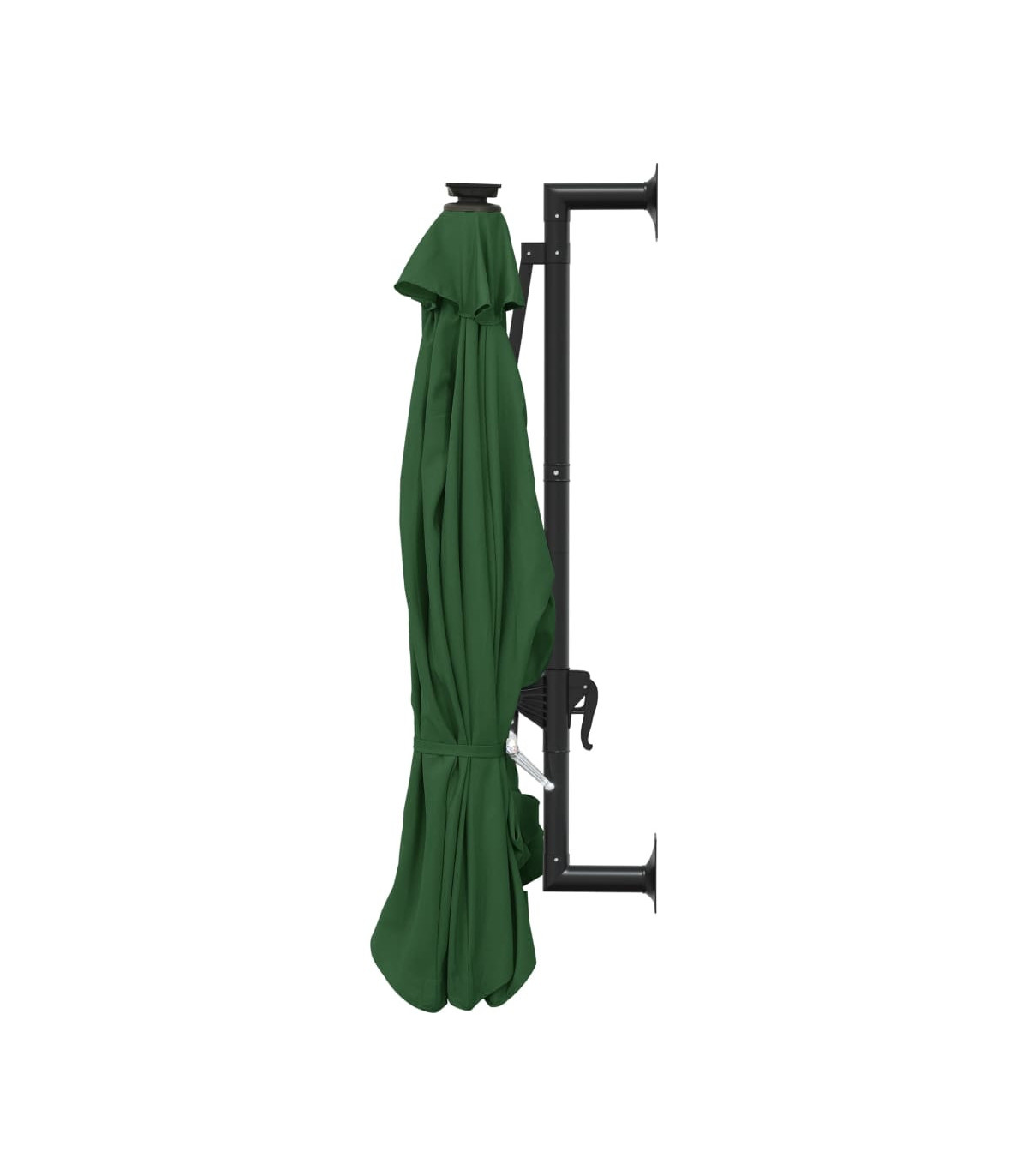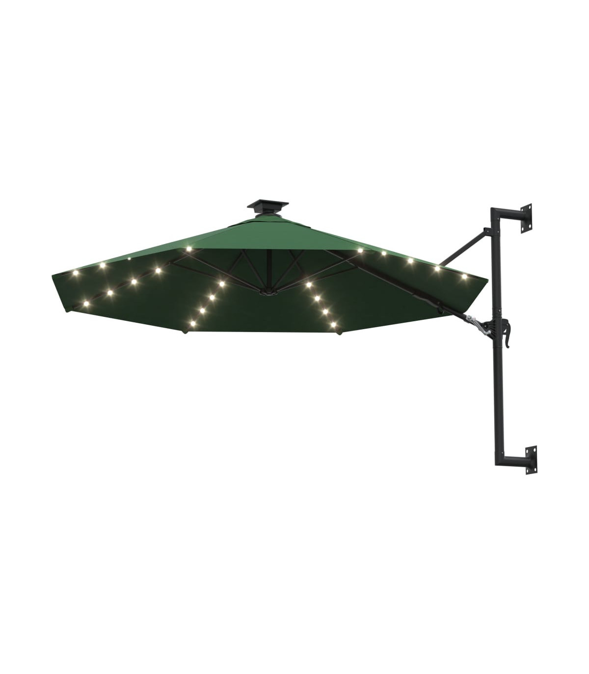 This elegant wall-mounted parasol safeguards your skin health by blocking most of the UV light. Made of UV protective and anti-fade polyester, the parasol cover provides you with optimum protection against the sun and is easy to clean. The exclusive design of this umbrella allows you to tilt it to block the sun as it heads down towards the horizon. The strong metal pole, along with the 8 durable ribs, makes the wall-mounted parasol very stable and durable. The garden umbrella can be easily opened and closed thanks to the crank mechanism. The integrated 28 LED lights create a cosy and romantic ambience at night. Please note that we recommend treating the umbrella fabric with a waterproofing spray if it is subjected to heavy rainfall. The height of this wall-mounted parasol depends on the height it is mounted on the wall.