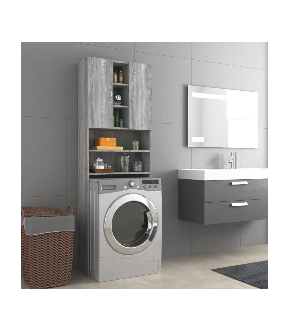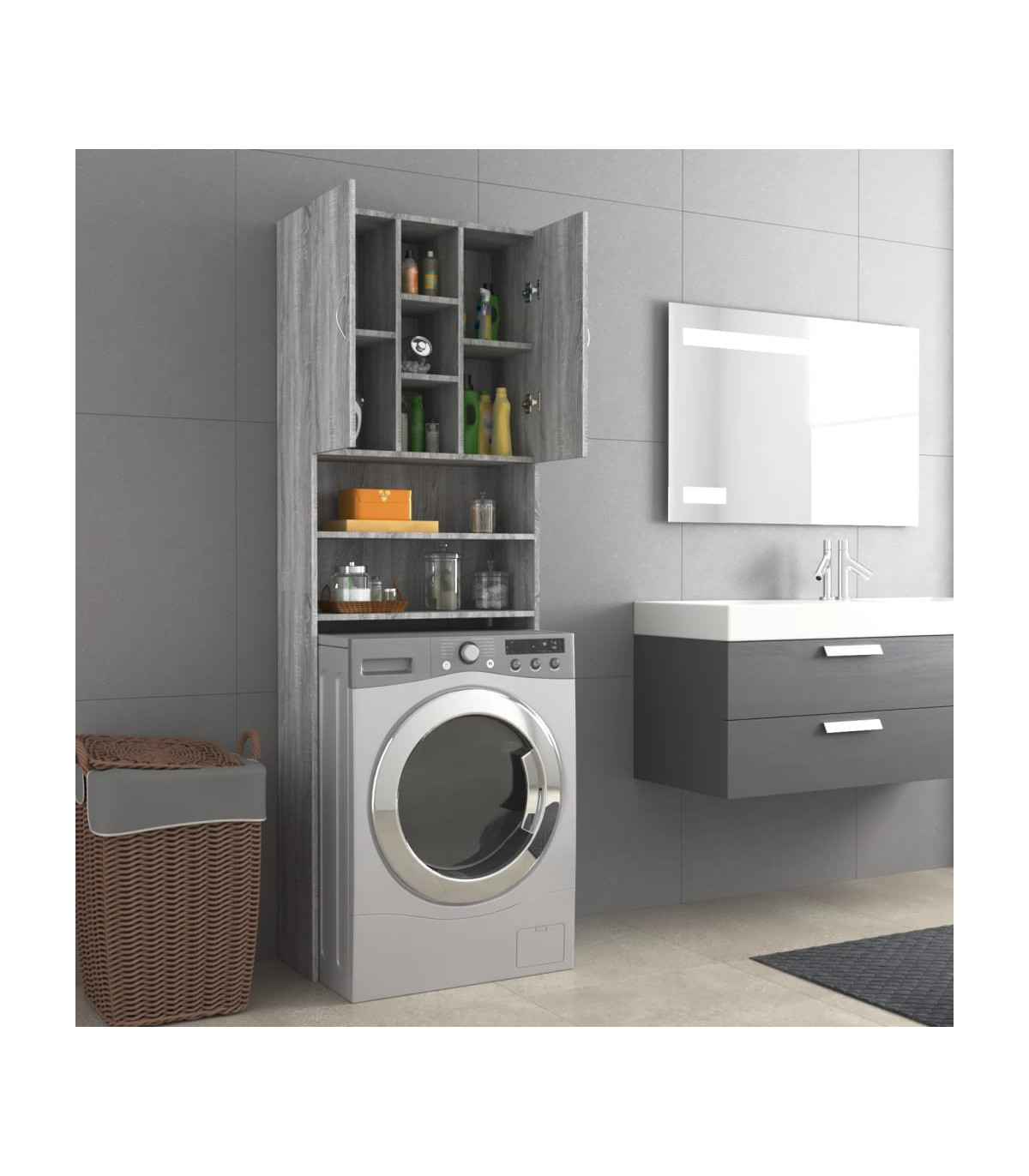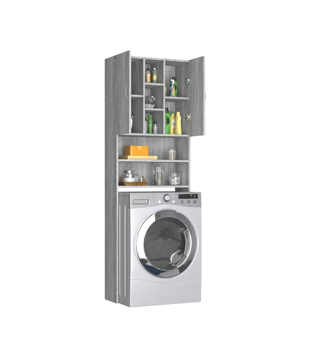 With this washing machine cabinet, you can create and optimally use additional storage space in the bathroom or laundry room. Premium material: The engineered wood is of exceptional quality with smooth surface and also features strength, stability and resistance to moisture.Ample storage space: The 2 doors and 9 compartments offer ample storage room for keeping your laundry utensils, cleaning supplies, toiletries and other items well organised and within reach.Space-saving function: This washing machine shelf can welly utilize the wasted storage area above the washing machine or toilet.Easy cleaning: This washing machine cupboard is easy to clean with a damp cloth. Note:Screw(s) and plug(s) for inside the wall are not included. Seek and use screw(s) and plug(s) suitable for your walls. If you are uncertain, seek professional advice. Read and follow each step of the instruction carefully. Warning:In order to prevent overturning, this product must be used with the wall attachment device provided.