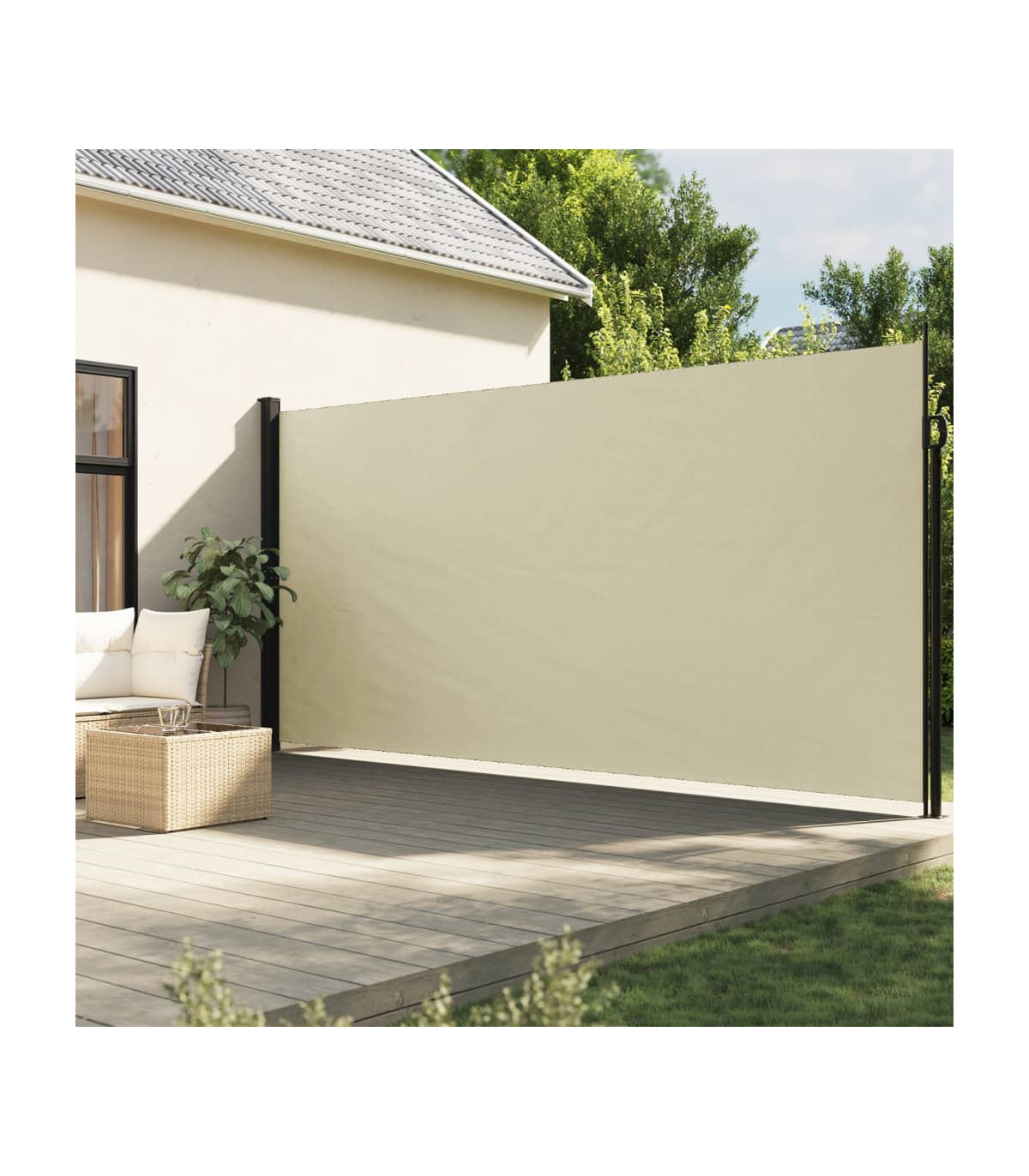 Create an instant and private oasis on your balcony, terrace, or patio using this retractable side awning! Water and UV resistant: This garden privacy screen is made from 100% polyester with a polyurethane (PU) coating, providing good breathability and excellent protection against wind, sun, water, and UV light.Convenient design: Thanks to its retractable design, the garden screen automatically rolls back when you remove the handle from the post.Easy installation: The two posts can be easily fixed to the wall and ground for added stability and safety using the included mounting accessories.Wide applications: This versatile side awning can be used in a variety of settings, both outdoors like backyard, terrace, garden, porch, balcony and indoors such as office, clinic, studio, dressing room, to create extra wall space as required.