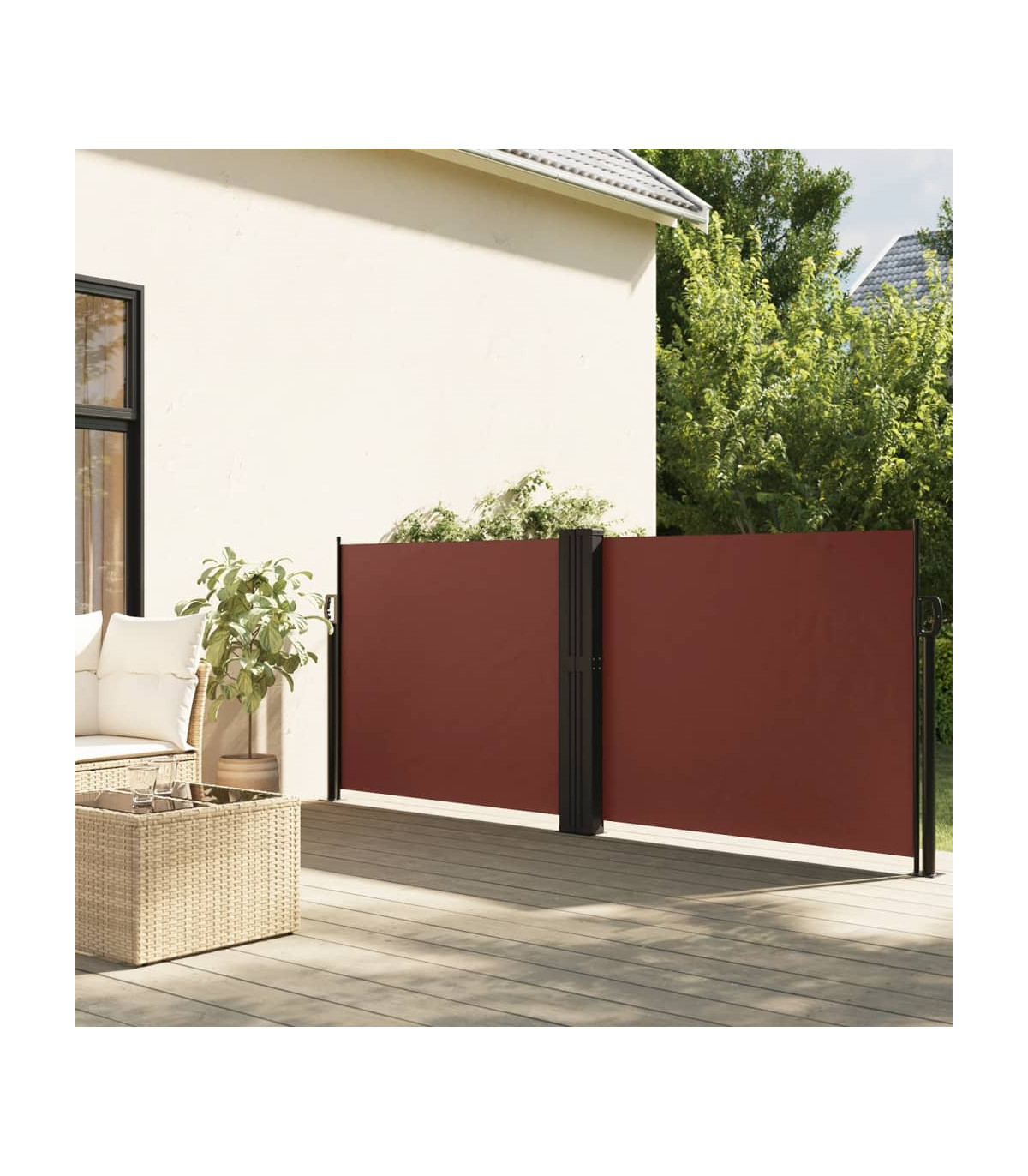 Create an instant and private oasis on your balcony, terrace, or patio using this retractable side awning! Water and UV resistant: This garden privacy screen is made from 100% polyester with a polyurethane (PU) coating, providing good breathability and excellent protection against wind, sun, water, and UV light.Convenient design: Thanks to its retractable design, the garden screen automatically rolls back when you remove the handle from the post.Easy installation: The posts can be easily fixed to the ground for added stability and safety using the included mounting accessories.Wide applications: This versatile side awning can be used in a variety of settings, both outdoors like backyard, terrace, garden, porch, balcony and indoors such as office, clinic, studio, dressing room, to create extra wall space as required.