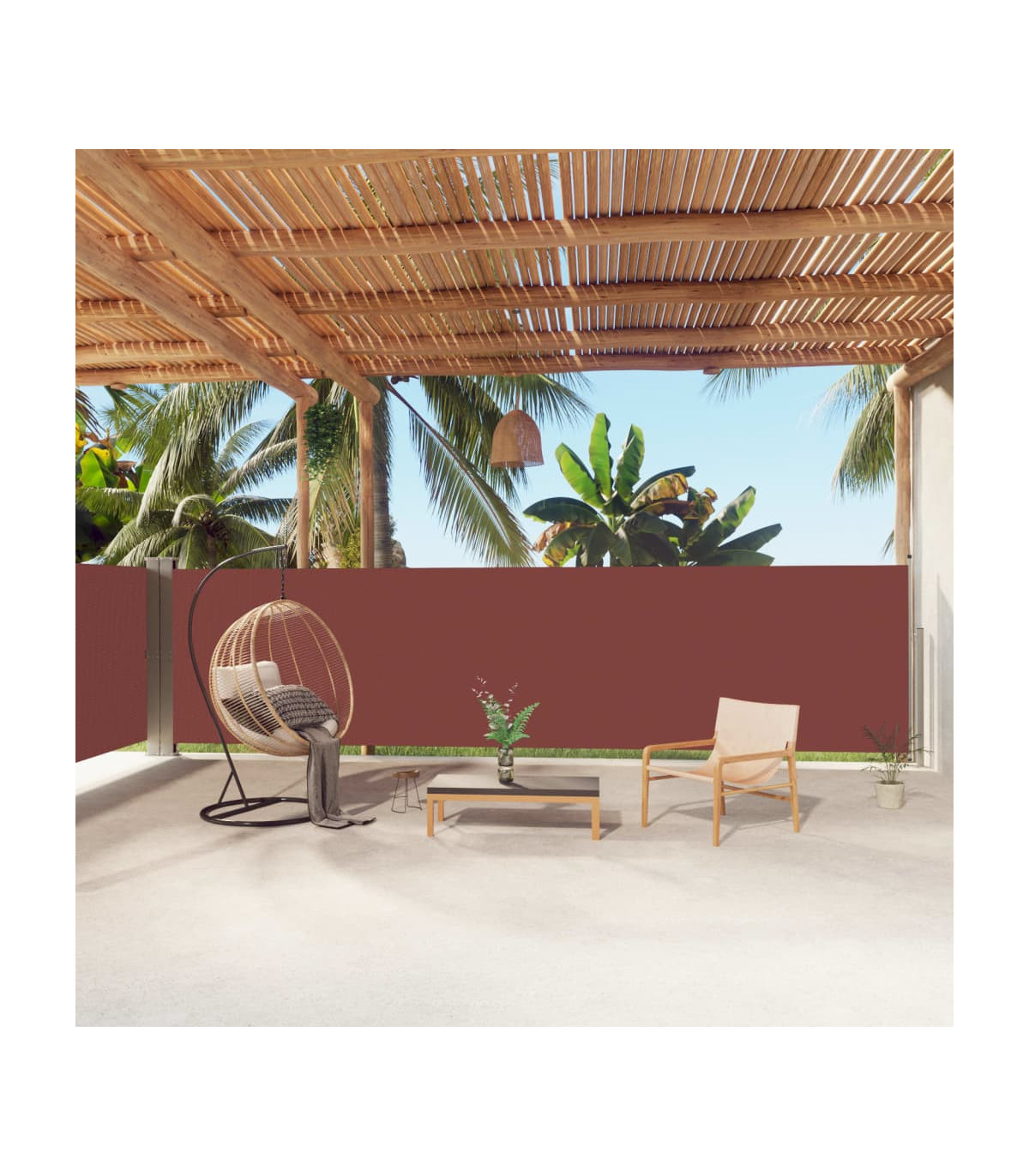 Our garden side awning, featuring a large screen, presents an effective way to deal with a constant wind and low-lying sun, while providing privacy. The simple yet stylish design makes it an ideal complement for your garden, patio, balcony, etc. The privacy screen has an automatic roll-back function and the width is adjustable to up to 600 cm. The outdoor screen is made of UV-proof, tear-resistant and water-resistant polyester fabric with a PU coating. Delivery also includes mounting accessories and 2 posts.
