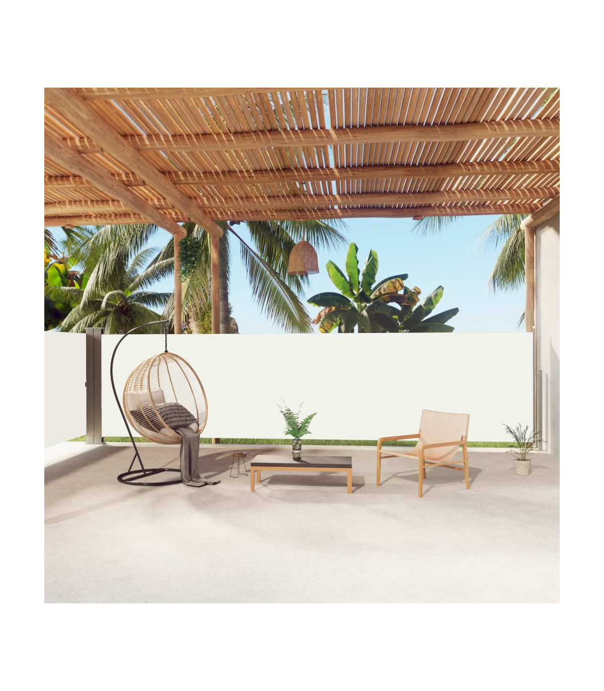 Our garden side awning, featuring a large screen, presents an effective way to deal with a constant wind and low-lying sun, while providing privacy. The simple yet stylish design makes it an ideal complement for your garden, patio, balcony, etc. The privacy screen has an automatic roll-back function and the width is adjustable to up to 600 cm. The outdoor screen is made of UV-proof, tear-resistant and water-resistant polyester fabric with a PU coating. Delivery also includes mounting accessories and 2 posts.