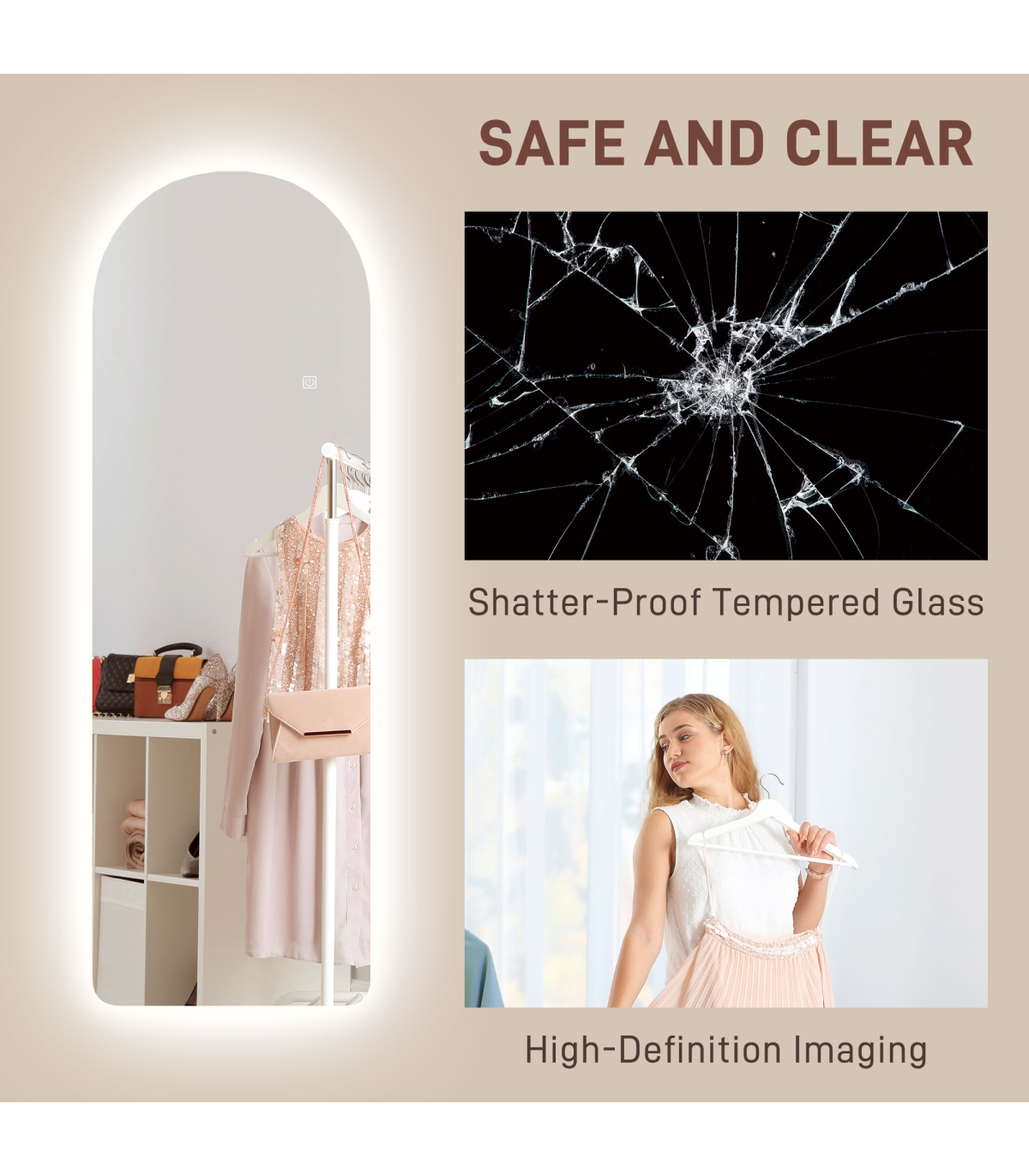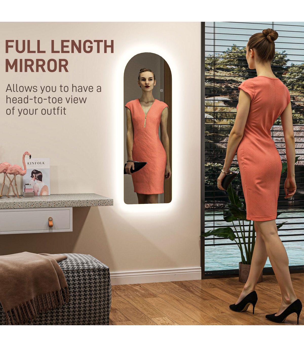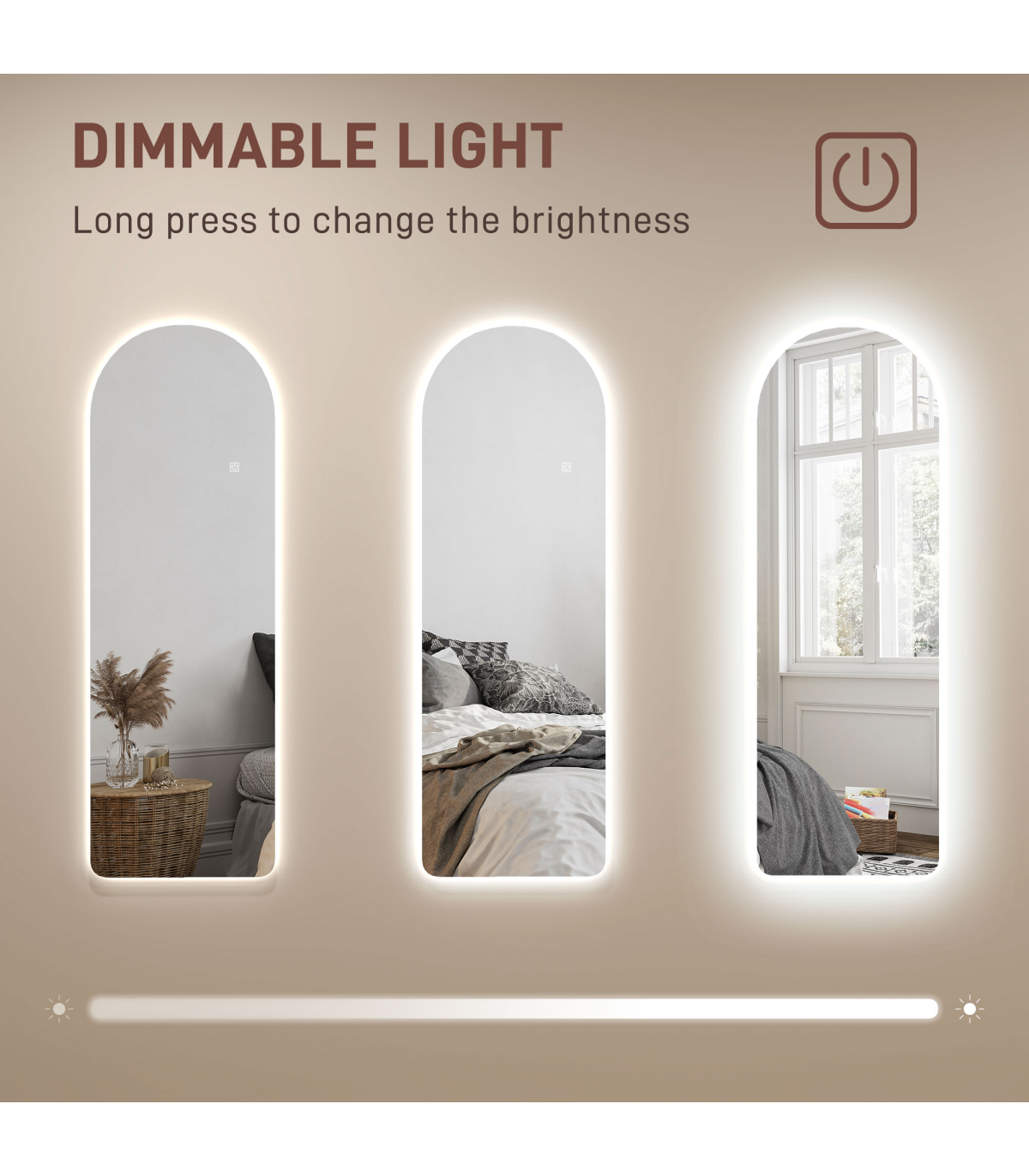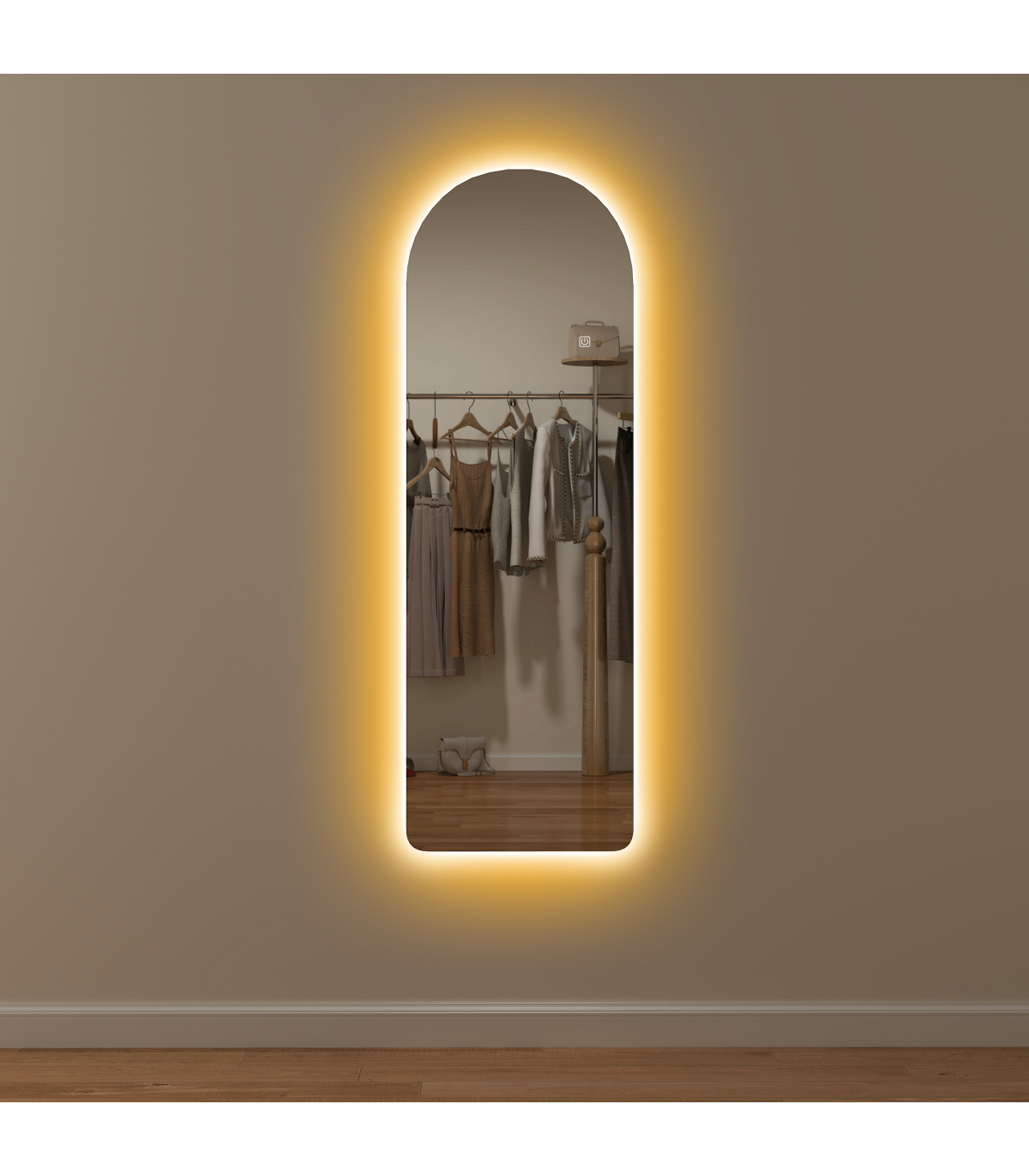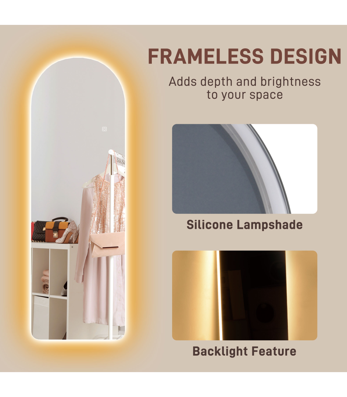 ? Frameless arched mirror with backlit adds modern style
