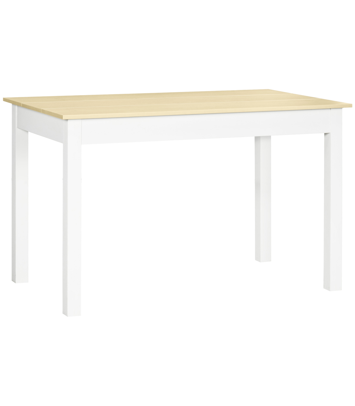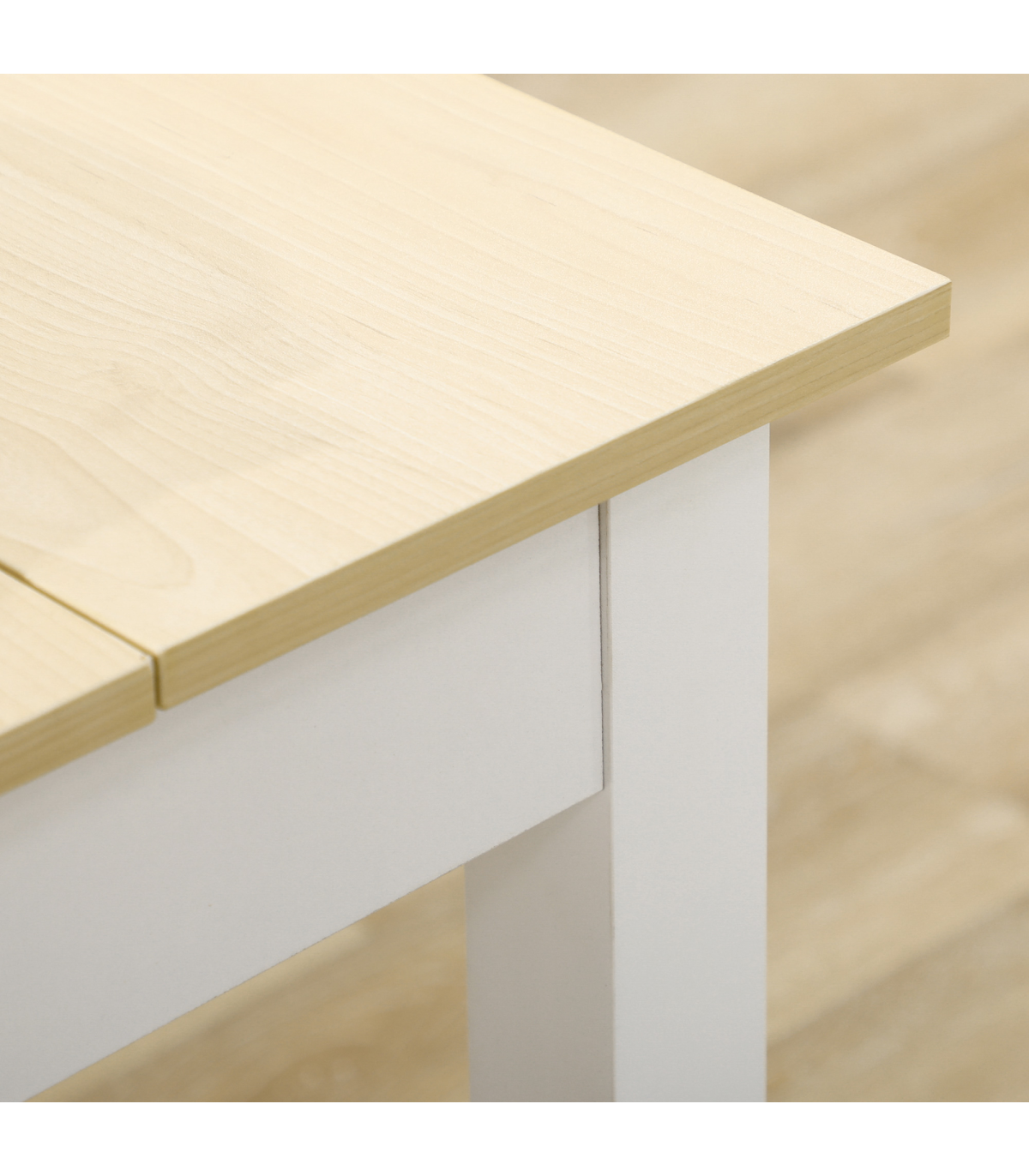 ? Particle board top with thickened legs, solid for holding up to 50kg