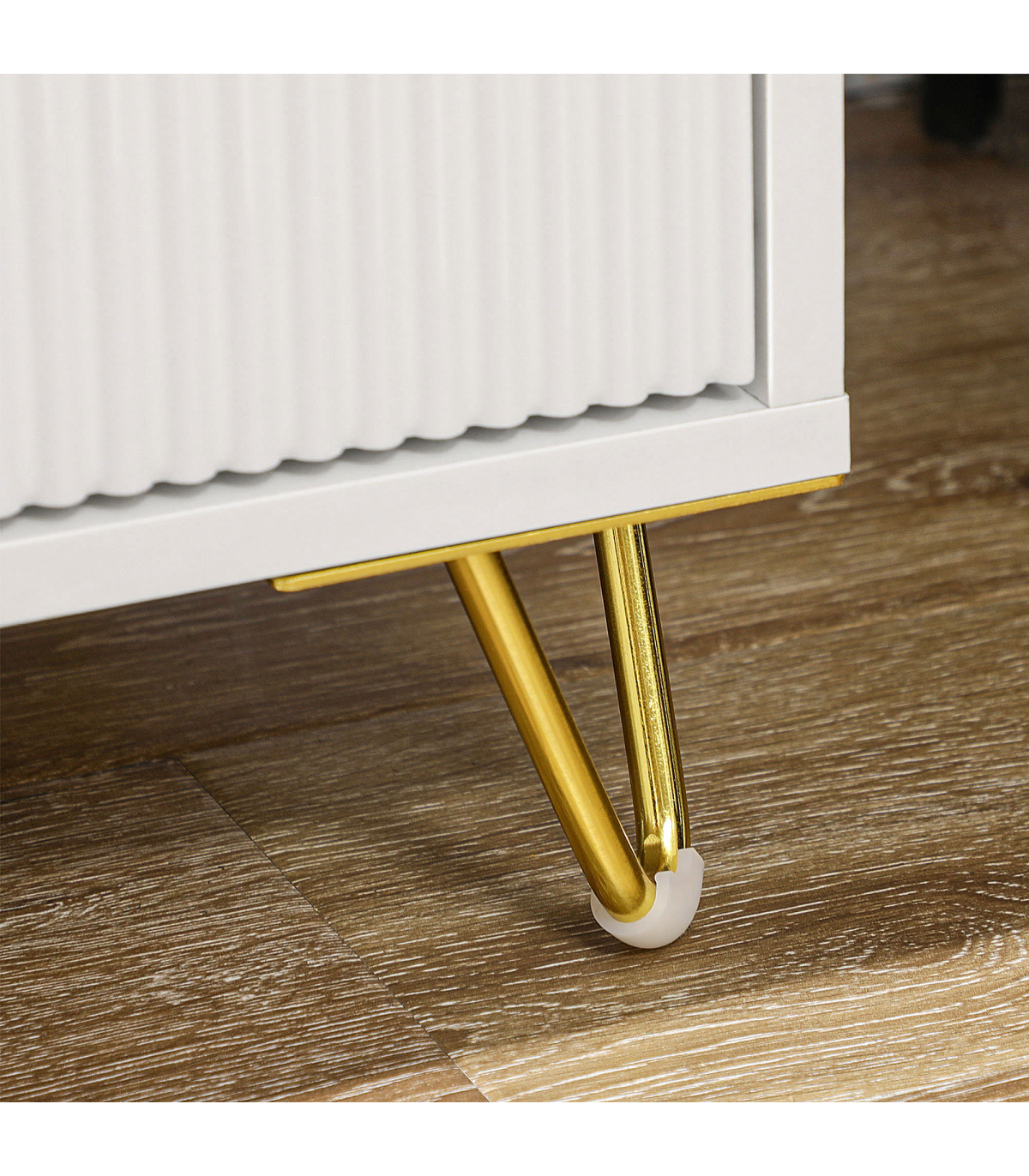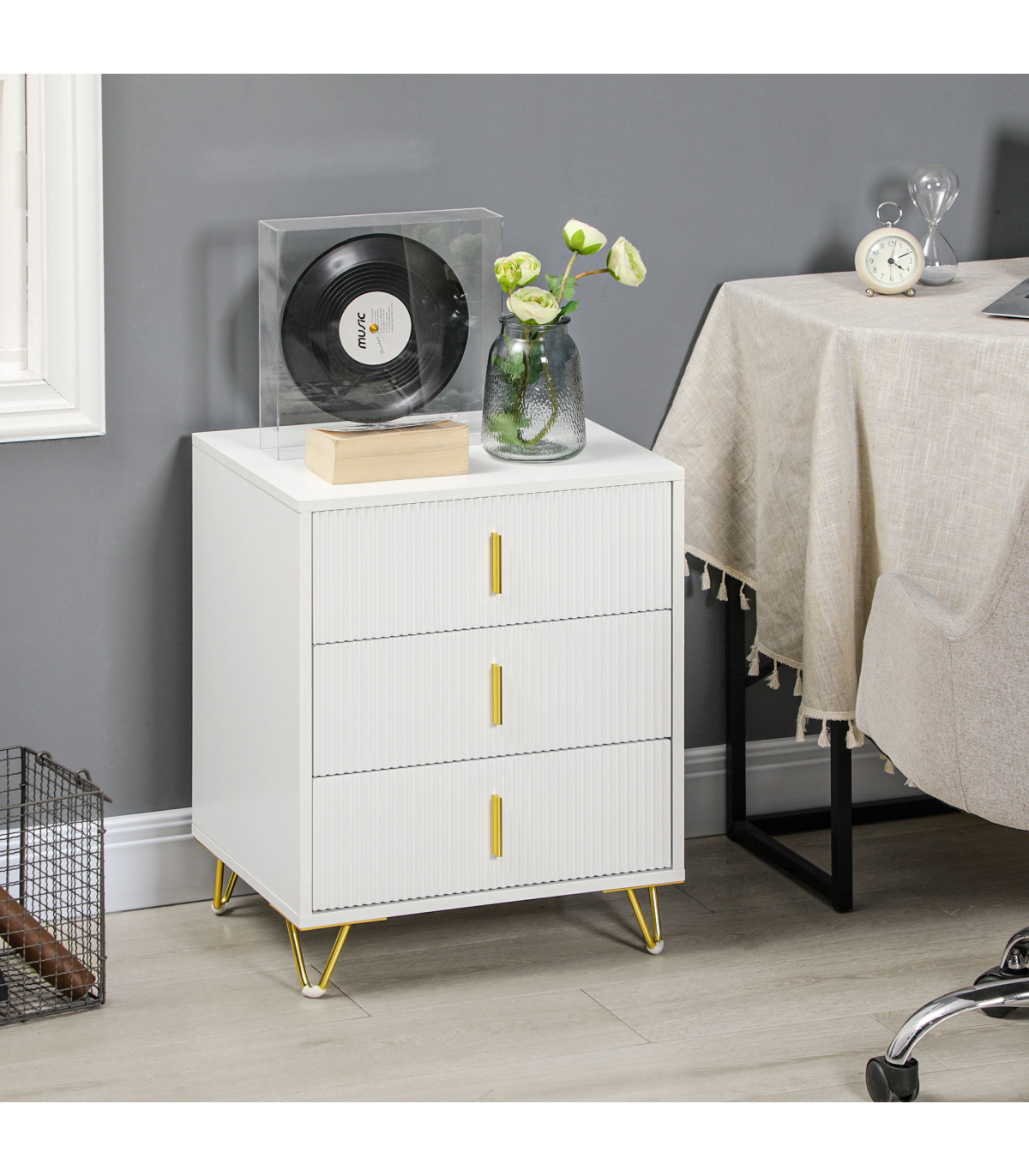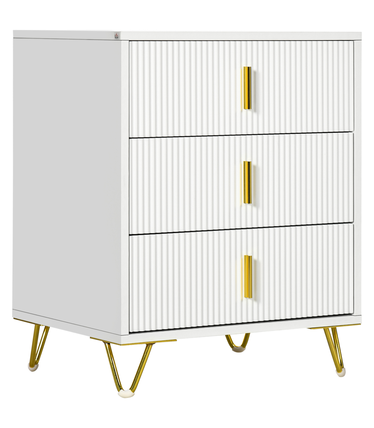 ? Elegant drawer unit: white colour, with ridged front for texture and gold coloured accents