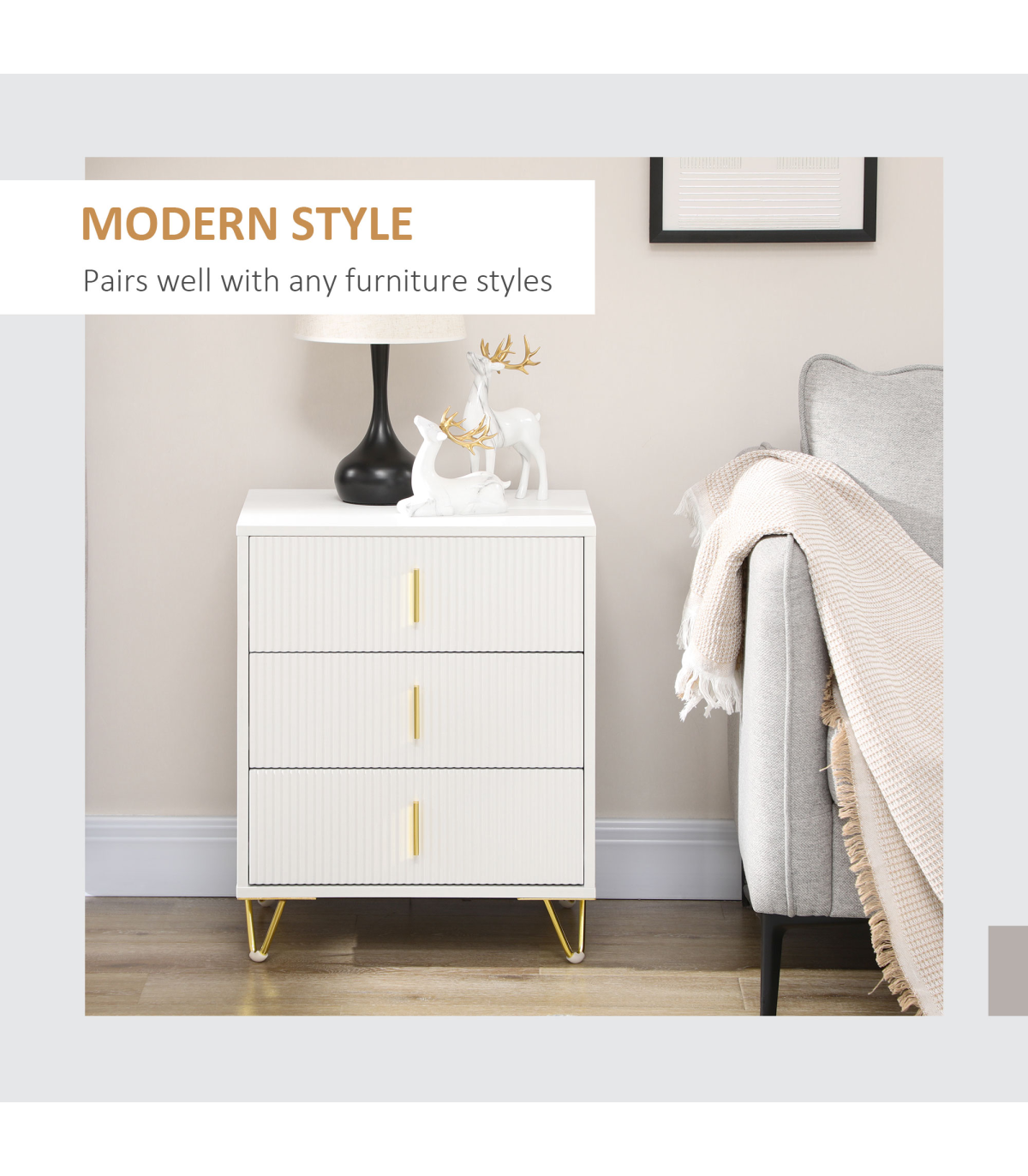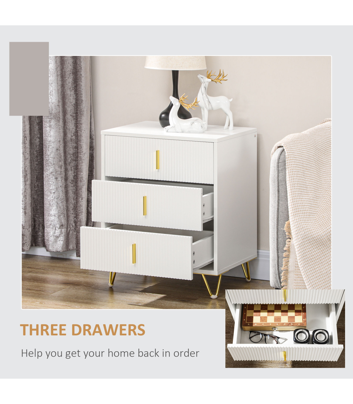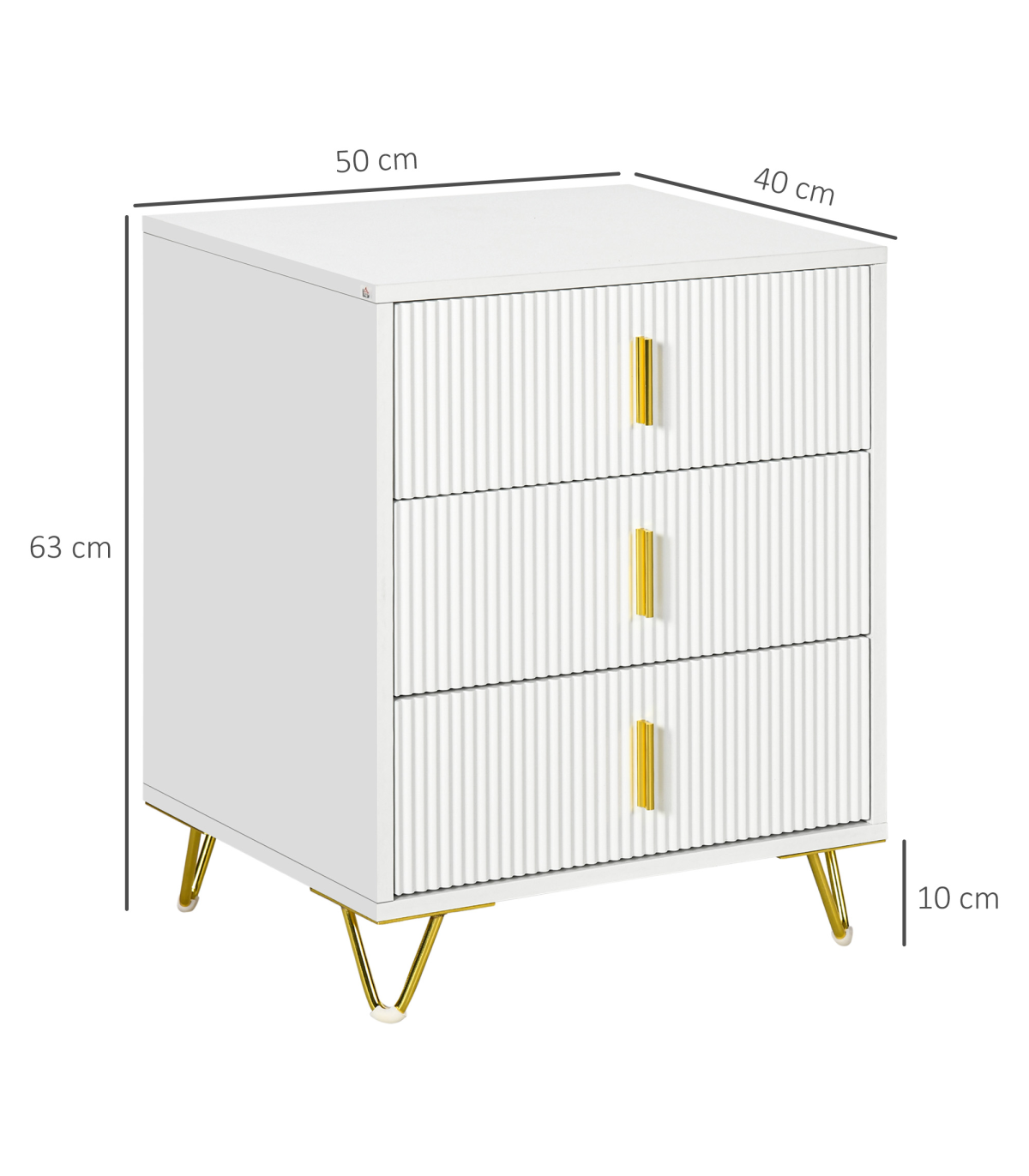 ? Elegant drawer unit: white colour, with ridged front for texture and gold coloured accents