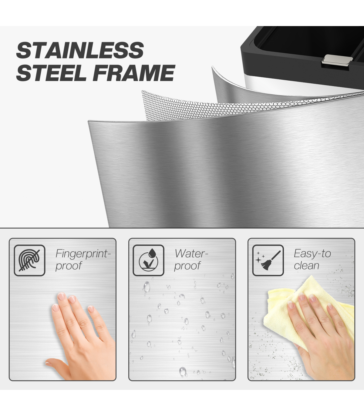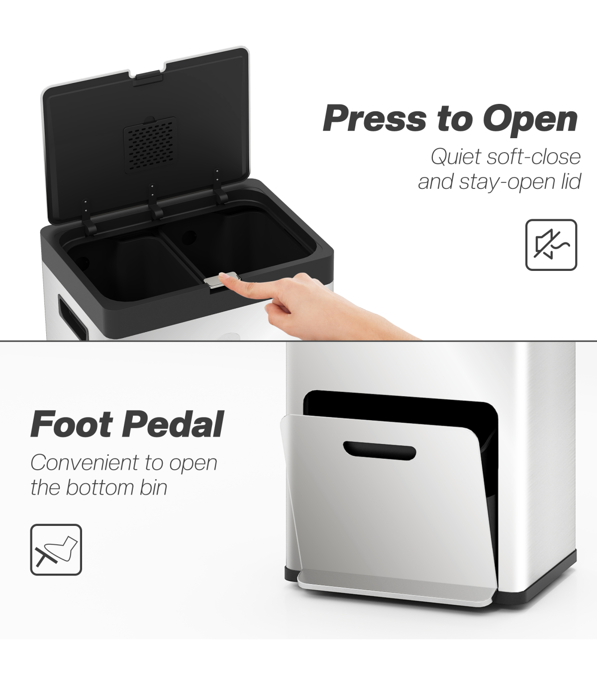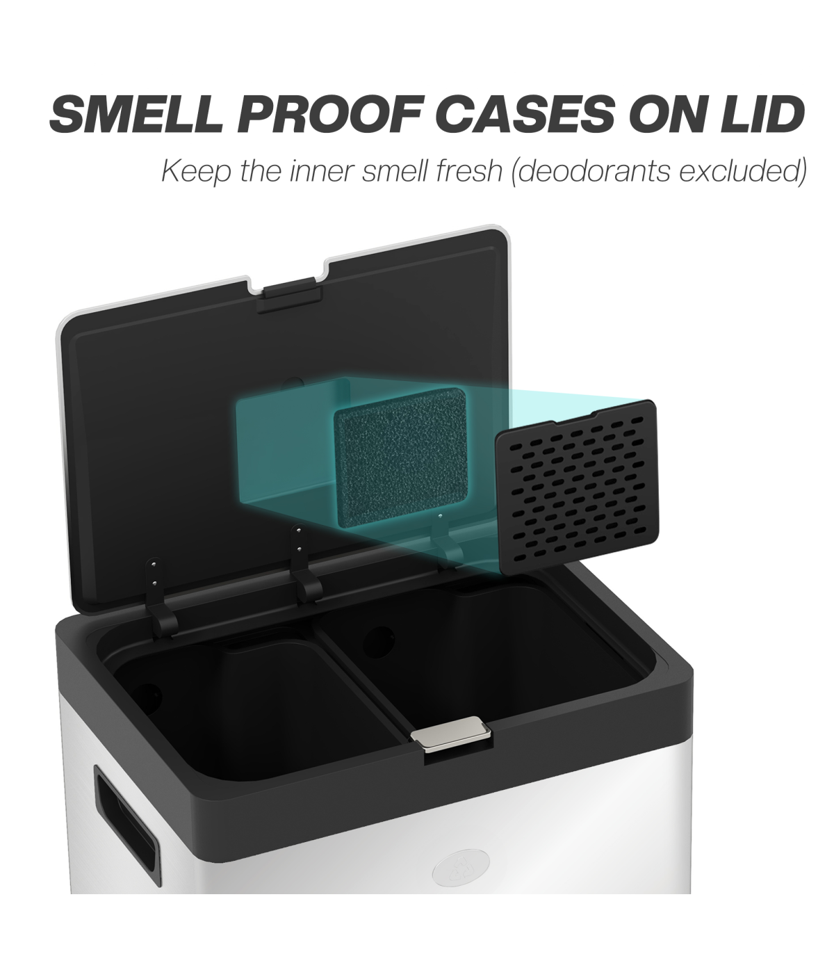 ? Removable inner buckets, with a hole to fix bin bag for easy cleaning