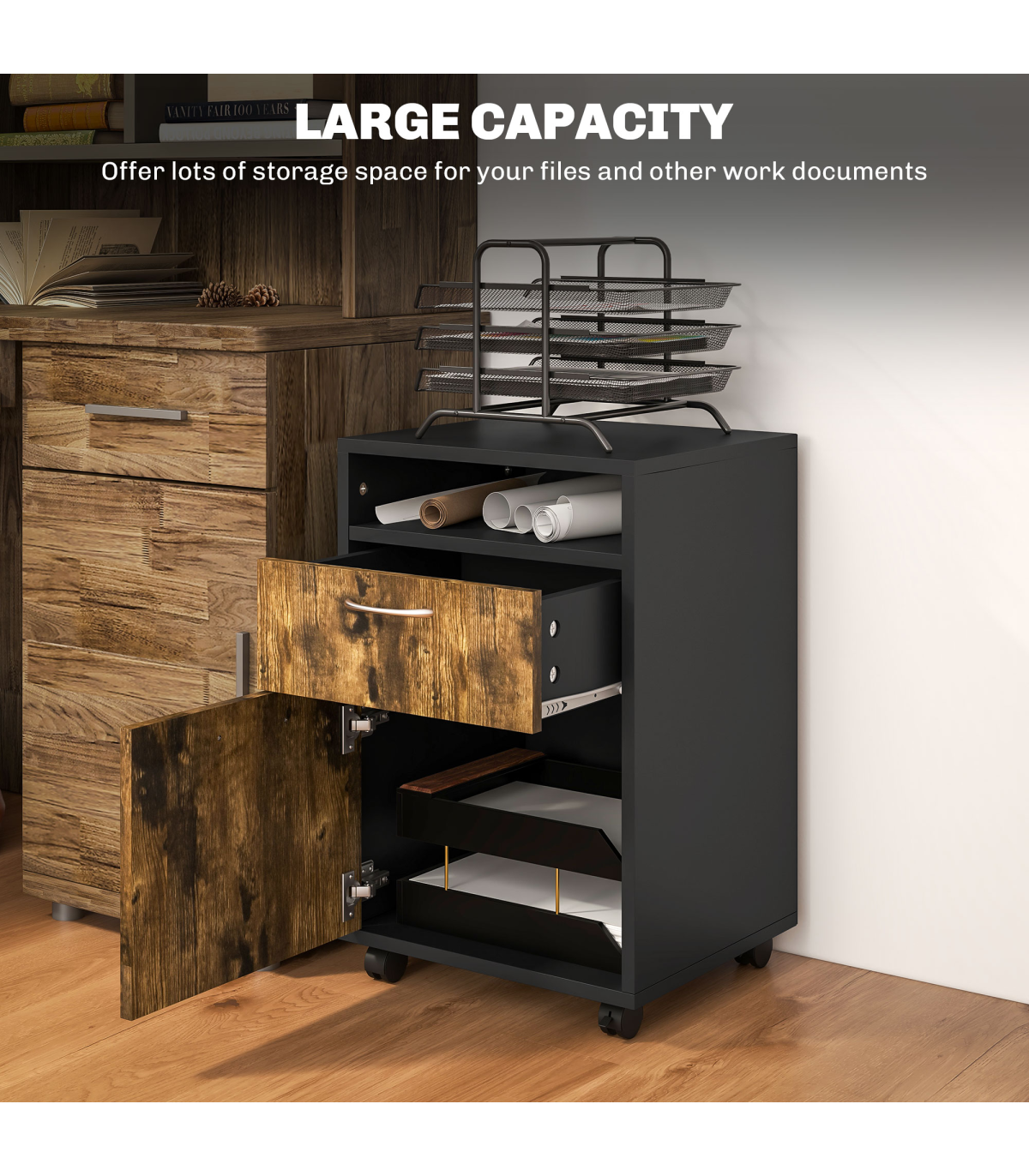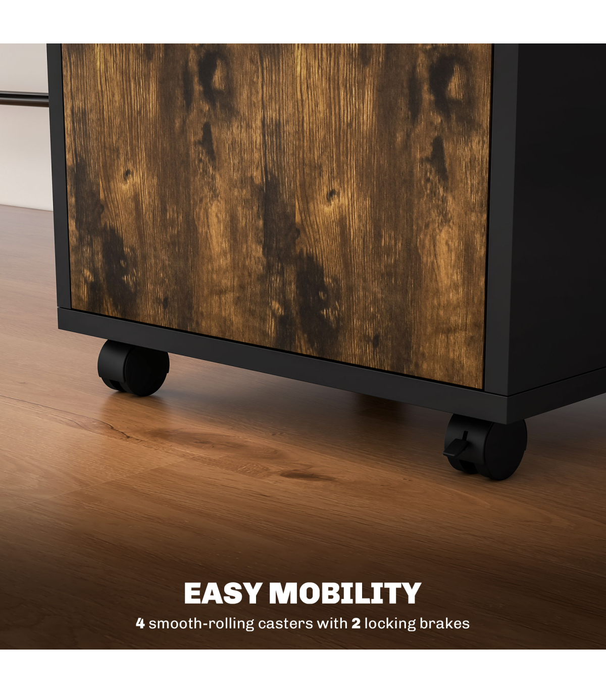 ? Four omnidirectional wheels to move cabinet around easily