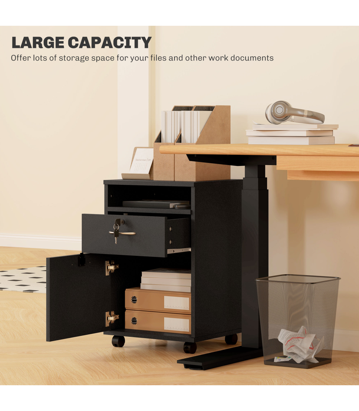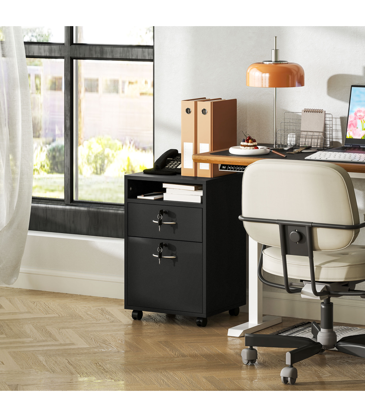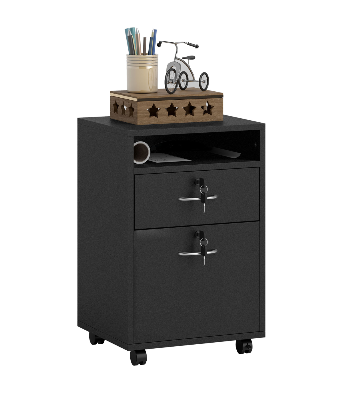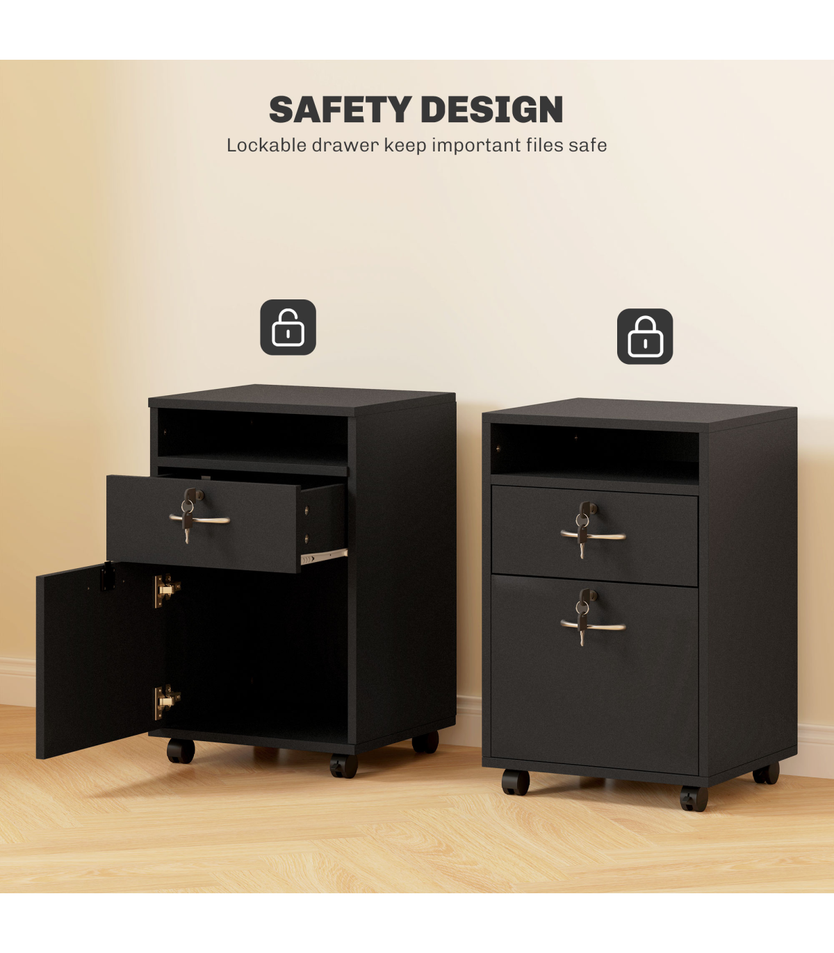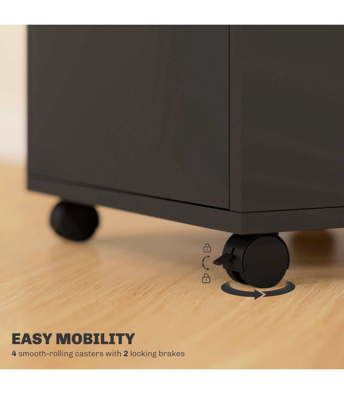 ? Four omnidirectional wheels to move cabinet around easily