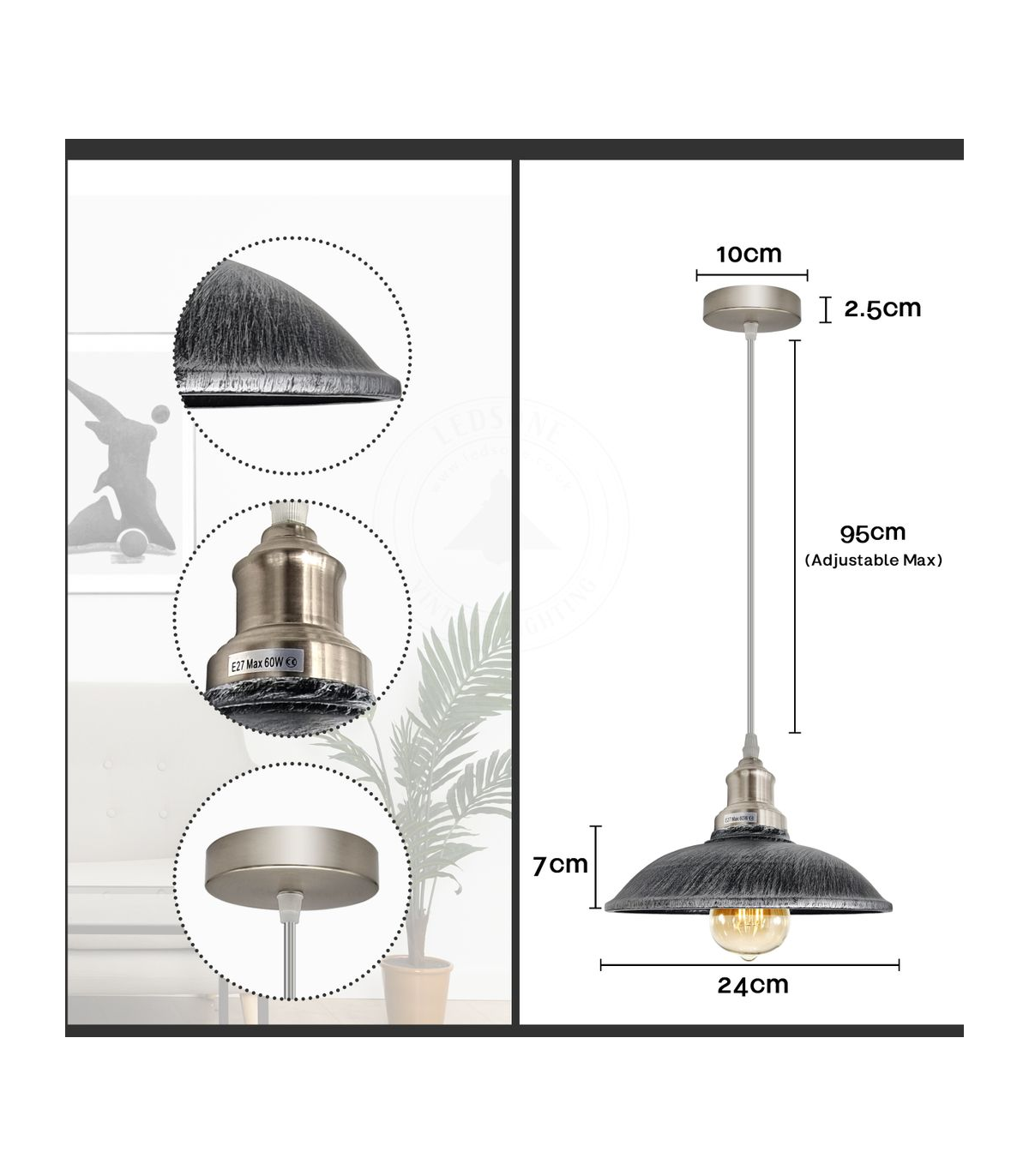 Vintage Industrial Brushed silver E27 Ceiling Hanging Light Shade Loft Style Metal Ceiling Pendant Lamp