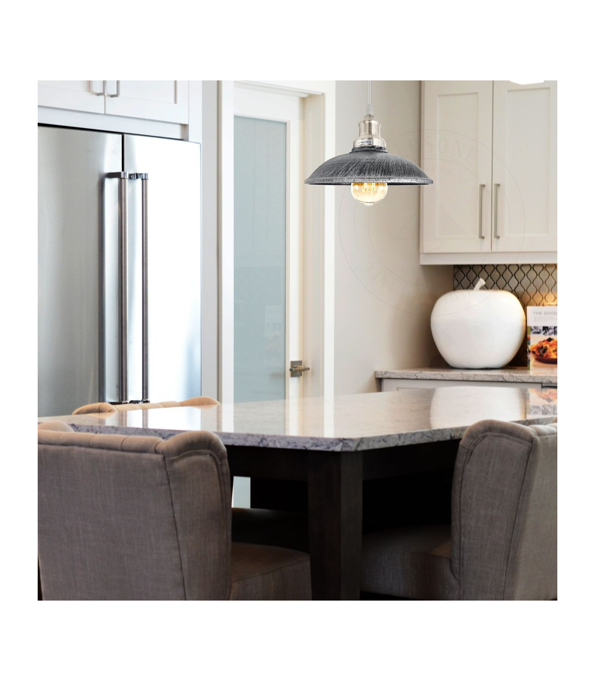 Features: This simple, sleek pendant has a finished appearance for a vintage appearance. A white painted on the inside of the hood enhances the illumination. It will make your home more interesting and attractive. E27 lamp base, you can choose any bulbs with the E27 interface as you want. Perfect to create a warm, romantic atmosphere for your home. Item Specifications: Item Type: Pendant lamp kit Style: Vintage/Retro Voltage:110V-240V Lamp holder quantity:1 Material: Metal and PVC Bulb Requirements: Requires E27 max 60W Bulb Type: Compatible with all kinds of E27 bulbs Installation Area: Indoor Power Source: Hardwired Dimmable: Yes (Required a dimmable bulb and dimmer switch) Wire length: 95cm Adjustable cable. Energy consumption: A+ with LED bulb. Sloped ceiling adaptable. Package included: 1 x Ceiling rose with accessories. 1 x Pendant holder with cable and chain. 1 x Light shade.
