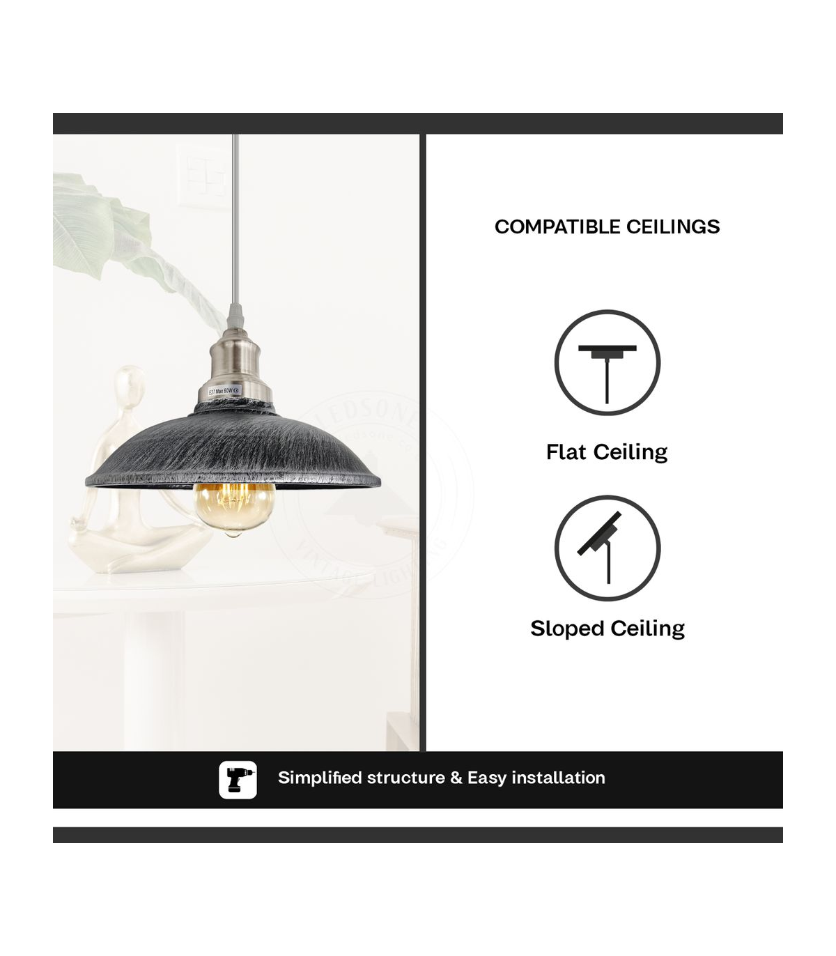 Vintage Industrial Brushed silver E27 Ceiling Hanging Light Shade Loft Style Metal Ceiling Pendant Lamp