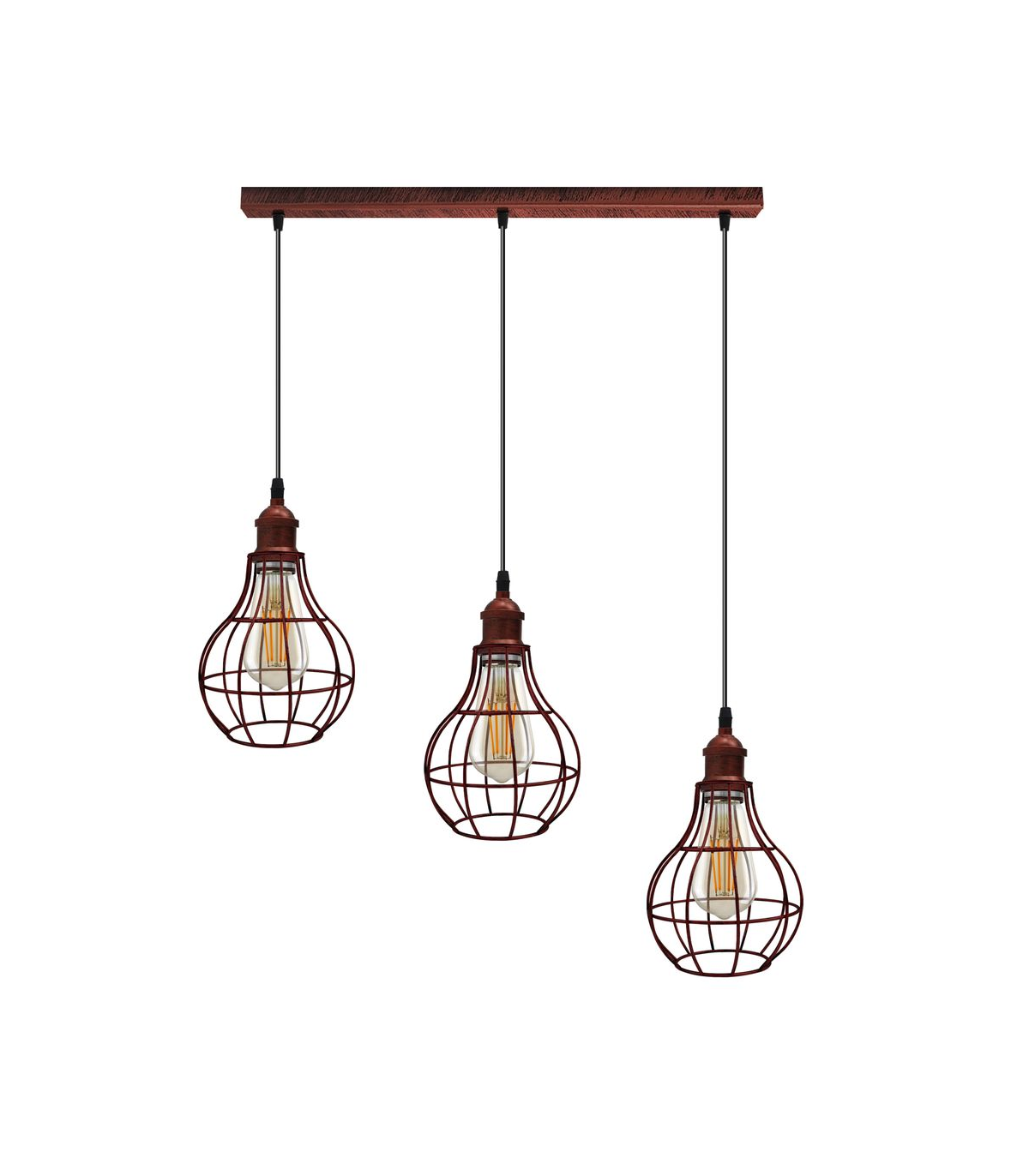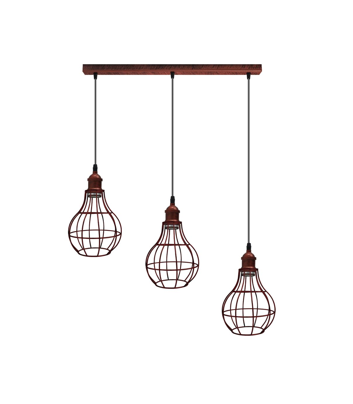 Vintage Rustic Red 3 Head Reactangle Base Pendant Light Cord Light E27 Base Metal Brushed Fitting Vase Cage Lamp Shade