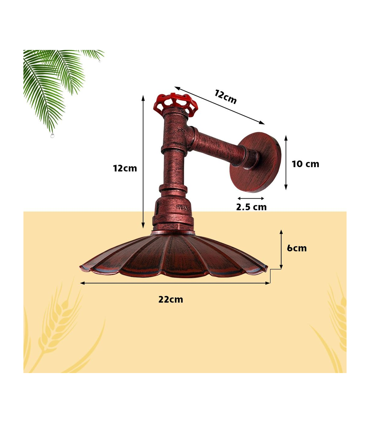 FeaturesMade of high quality metal, anti rust, durable and 100% brand new.The design of the unique vintage industrial retro style with rust color generates an antique flavor and it is not only for lighting but also will be a beautiful decoration for space.Its aesthetically appealing and adds style to your place even with light off.Easy to install - designed with E27 standard bulb base.Perfect for your living room, dining room, cafe, bar and more,SpecificationsPipe light Wall lampShade diameter: 22 cmShade Height: 6 cmShade shape: Umbrella shapeMaterial: Metal, PVCE27 lamp base, you can choose your favorite bulb.Not only lighting but also decoration for your house.This small retro lamp will make your house look more great.Perfect for lighting patios and hallways.Retro creating, romantic atmosphere for your family, lover and friends.Voltage: AC 240VLamp Holder: E27Light Source: E27 Bulb (The bulb not included)Material: MetalInstallation Type: Wall mounted