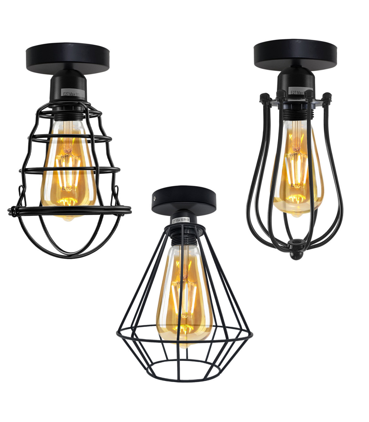 "Features: This wire cage ceiling light features a vintage industrial design that brings a nostalgic charm to any space. The geometric-shaped wire cage adds an artistic touch, combining retro aesthetics with modern functionality for a unique lighting fixture. Equipped with a metal round ceiling rose, this ceiling light ensures stability and durability. The round shape adds a sleek and polished look, complementing the overall design. It serves as a secure base for attaching the light fixture to the ceiling, providing a reliable installation. Material: Metal Shape: geometric Style: Vintage/Retro Power source: AC110V-240V Bulb Requirements: max. 60W Installation Area: Indoor Installation Type: Ceiling Mount Package Includes: 1 x Metal Ceiling Rose with Accessories 1 X E27 Holder 1 x lamp cage