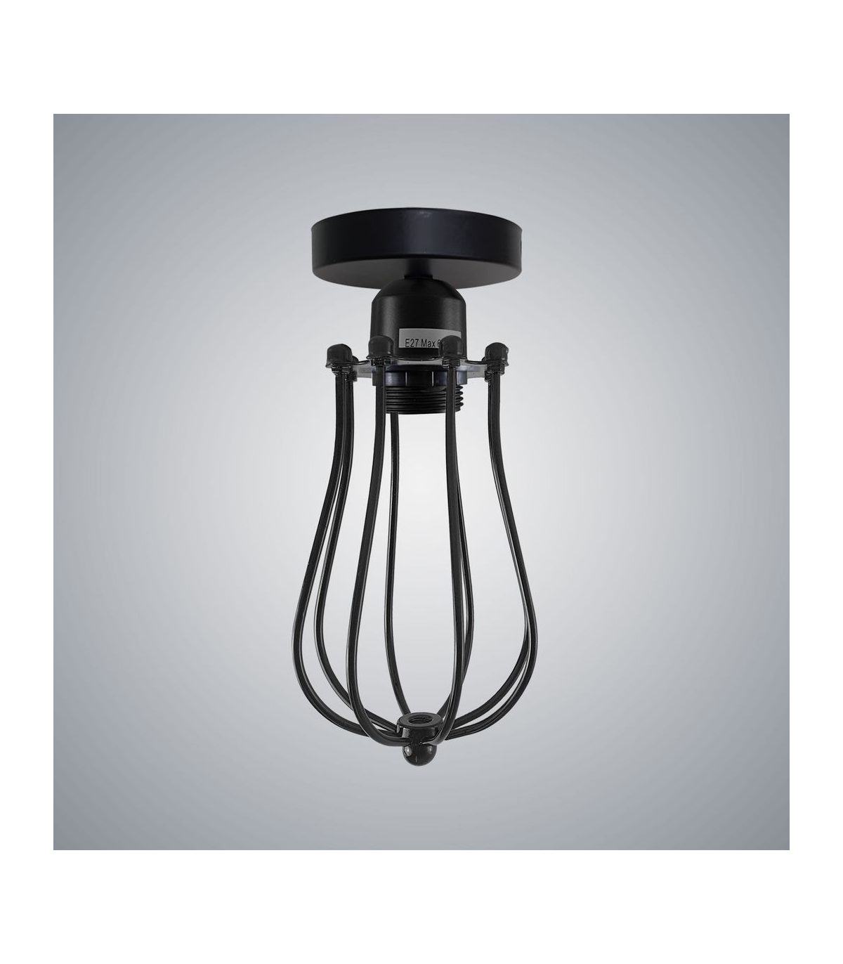 "Features: This wire cage ceiling light features a vintage industrial design that brings a nostalgic charm to any space. The geometric-shaped wire cage adds an artistic touch, combining retro aesthetics with modern functionality for a unique lighting fixture. Equipped with a metal round ceiling rose, this ceiling light ensures stability and durability. The round shape adds a sleek and polished look, complementing the overall design. It serves as a secure base for attaching the light fixture to the ceiling, providing a reliable installation. Material: Metal Shape: geometric Style: Vintage/Retro Power source: AC110V-240V Bulb Requirements: max. 60W Installation Area: Indoor Installation Type: Ceiling Mount Package Includes: 1 x Metal Ceiling Rose with Accessories 1 X E27 Holder 1 x lamp cage