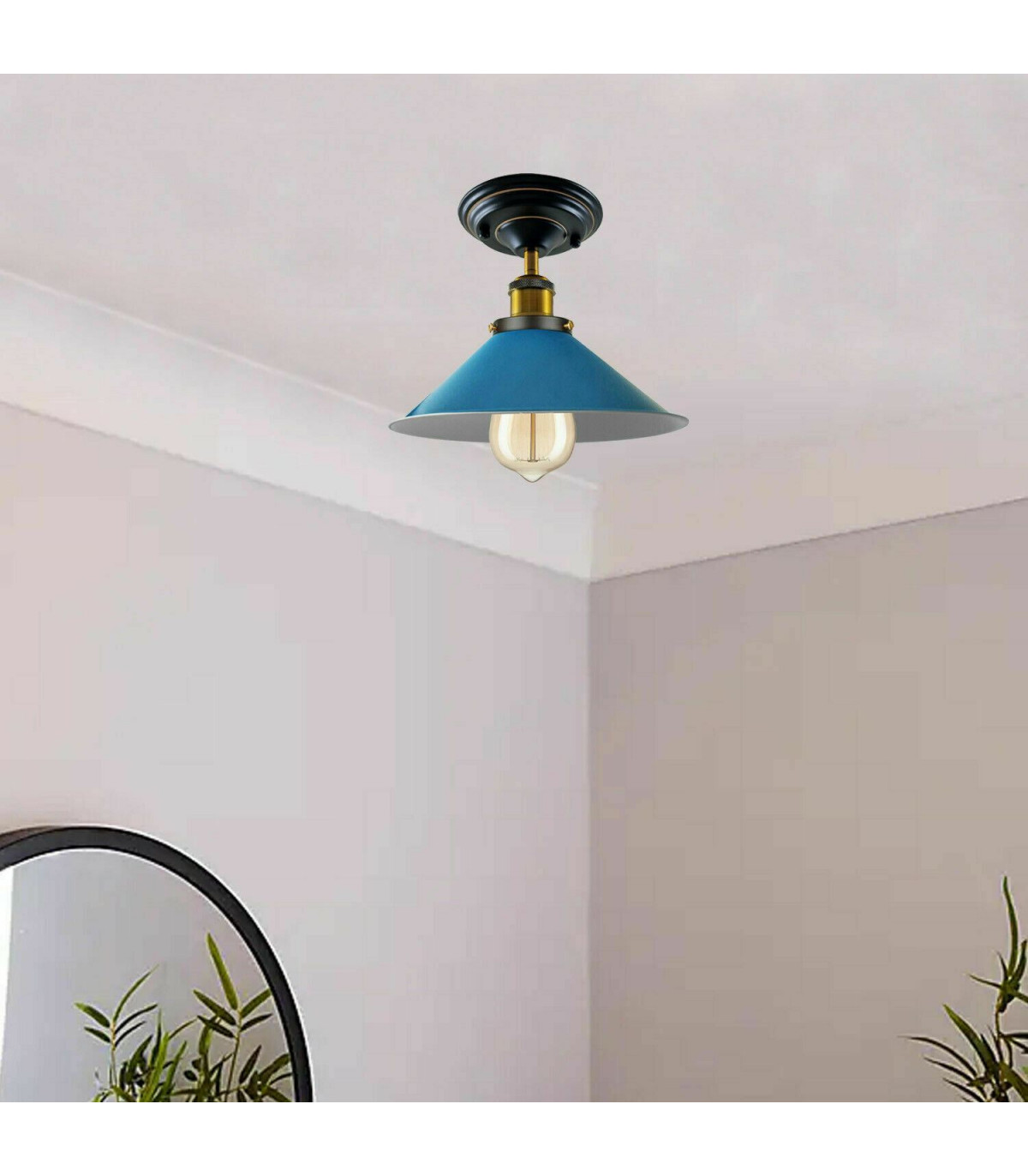 Vintage Industrial Metal Cone Shade Flush Mount Ceiling Light