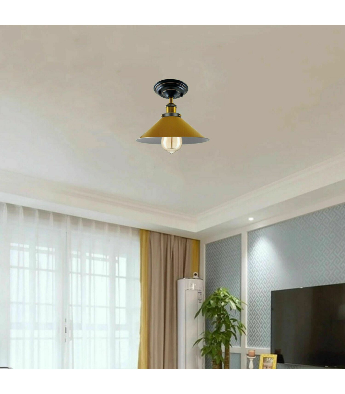 Vintage Industrial Metal Cone Shade Flush Mount Ceiling Light
