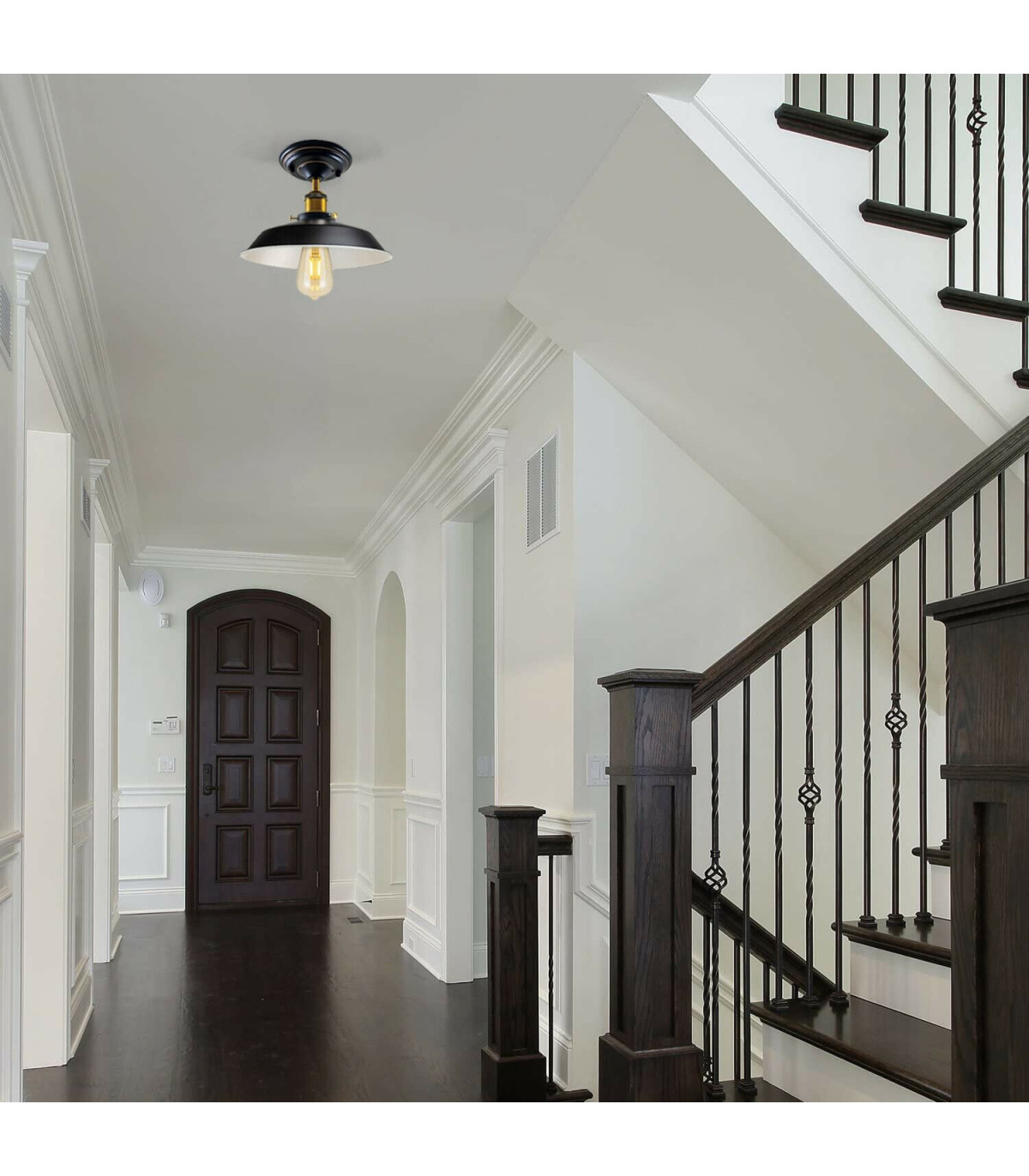 Not only lighting but also decorating your house. It will make your home more interesting and attractive. E27 lamp base, you can choose any bulbs with the E27 interface as you want. Perfect to create a warm, romantic atmosphere for your home, restaurants, and cafes. Base type: E27 Power source: AC110V-240V Lamp holder quantity: 1 Item color: Black Material: Metal Ceiling plate:14cm x 4cm The dimension of the hole in the shade:4cm